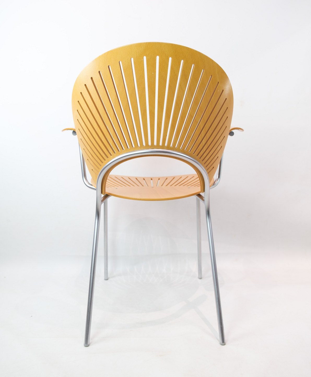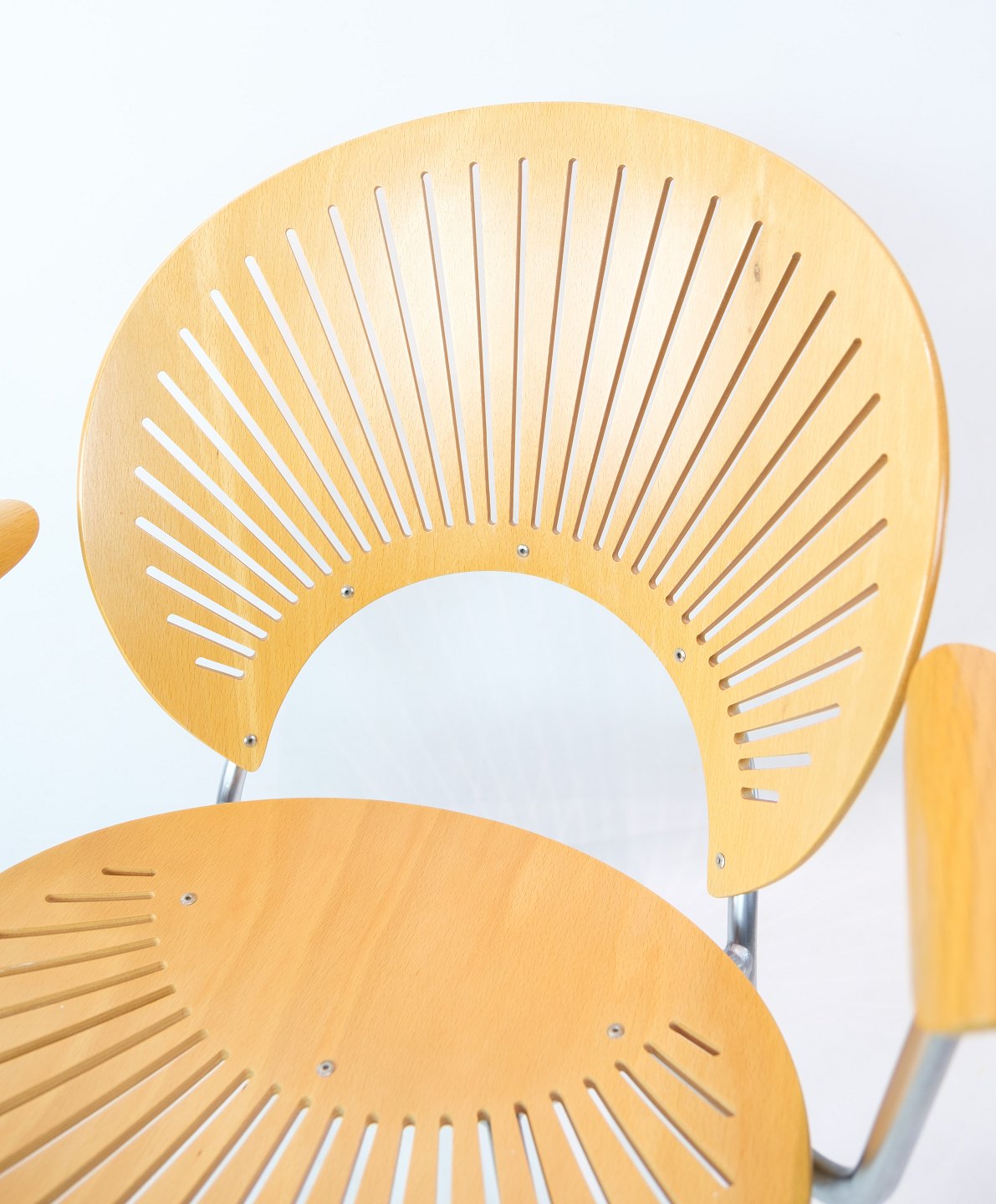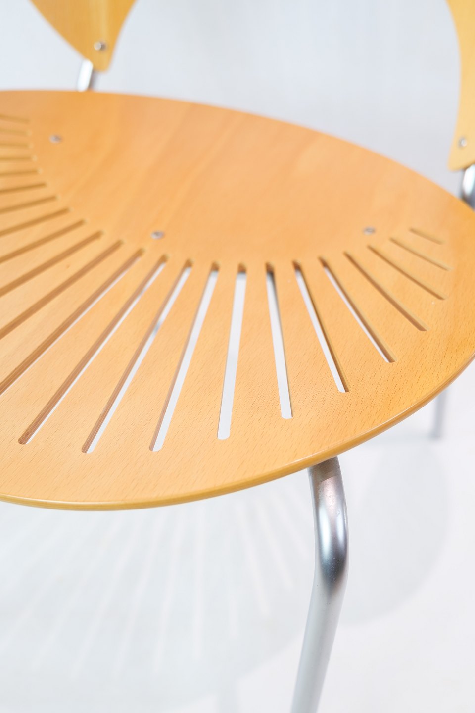 Trinidad Armchair, model 3297, designed by Nanna Ditzel (1923 - 2005) with beech shells with chromed steel frame manufactured by Fredercia Furniture.