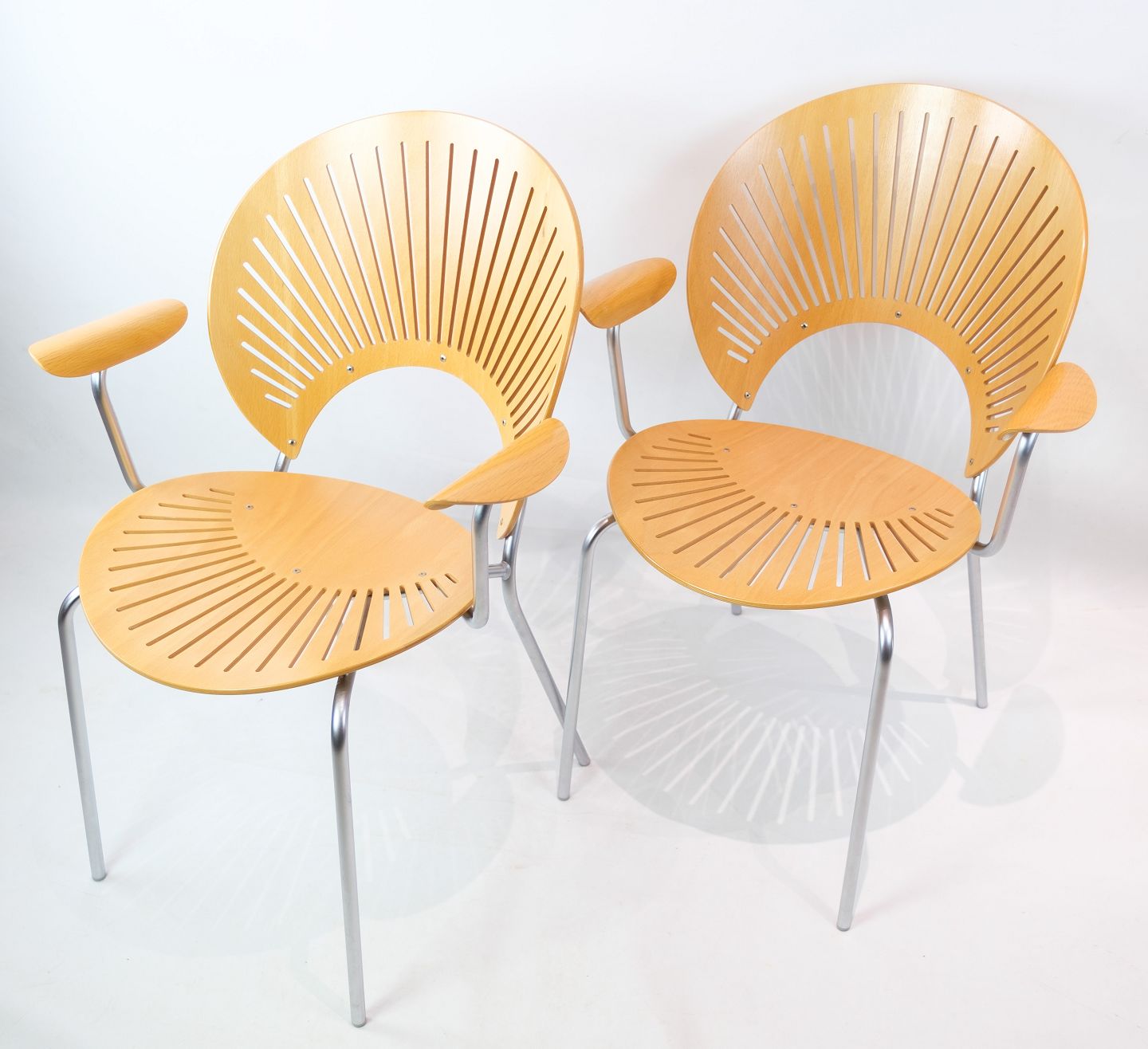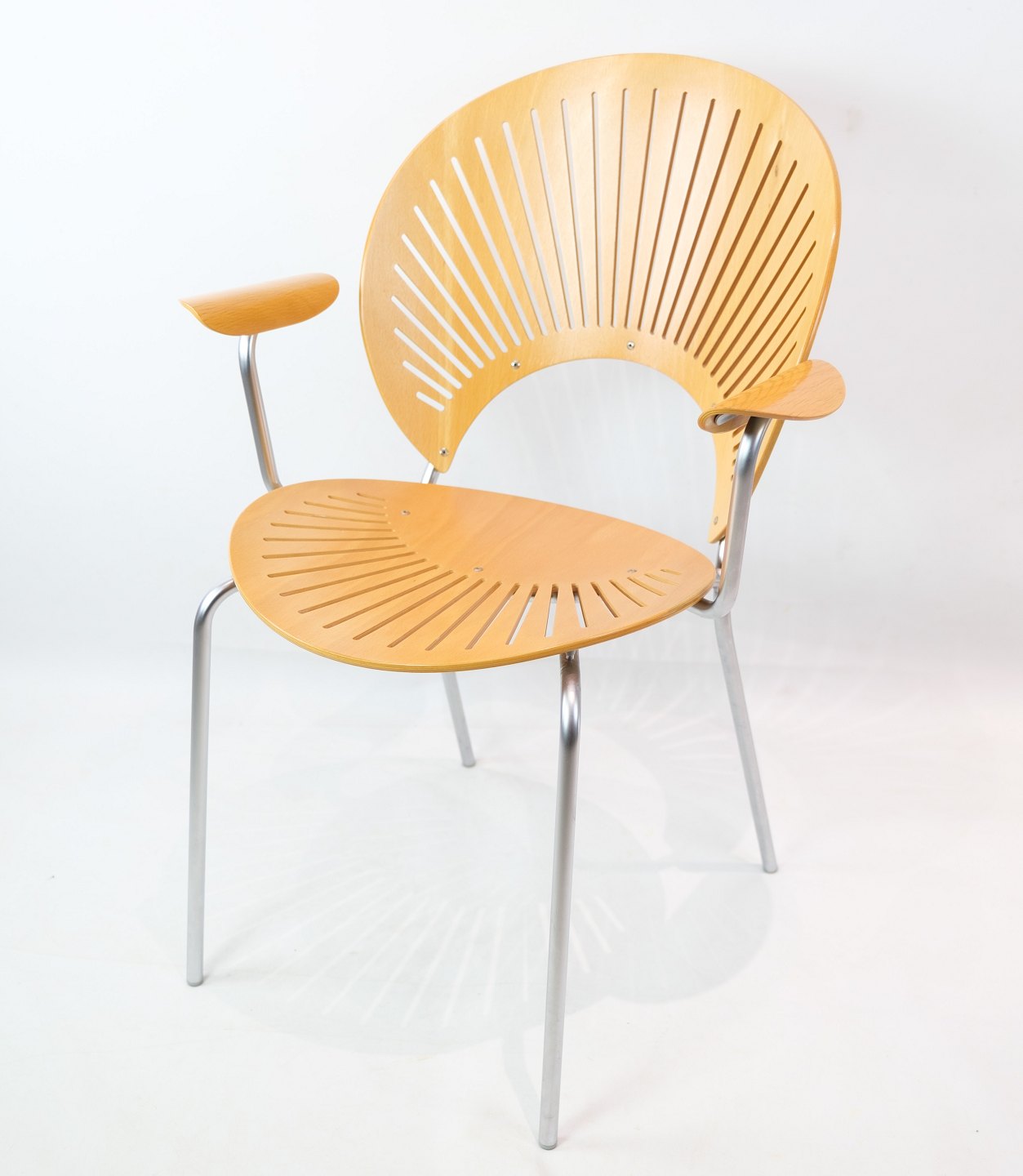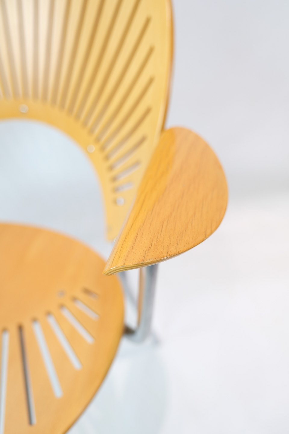 Trinidad Armchair, model 3297, designed by Nanna Ditzel (1923 - 2005) with beech shells with chromed steel frame manufactured by Fredercia Furniture.