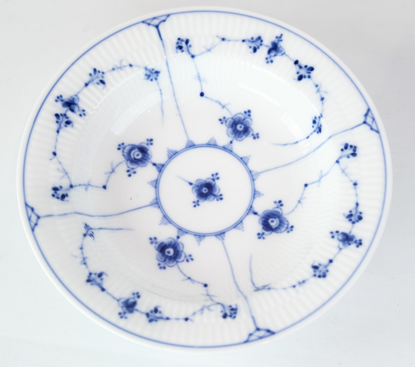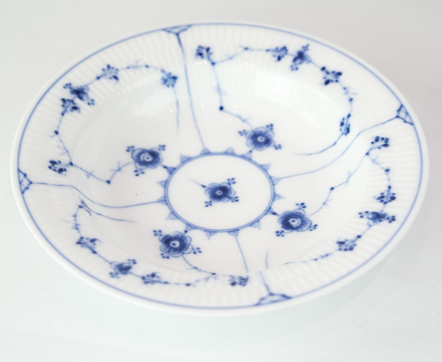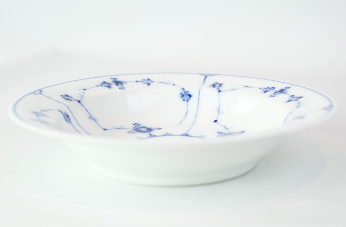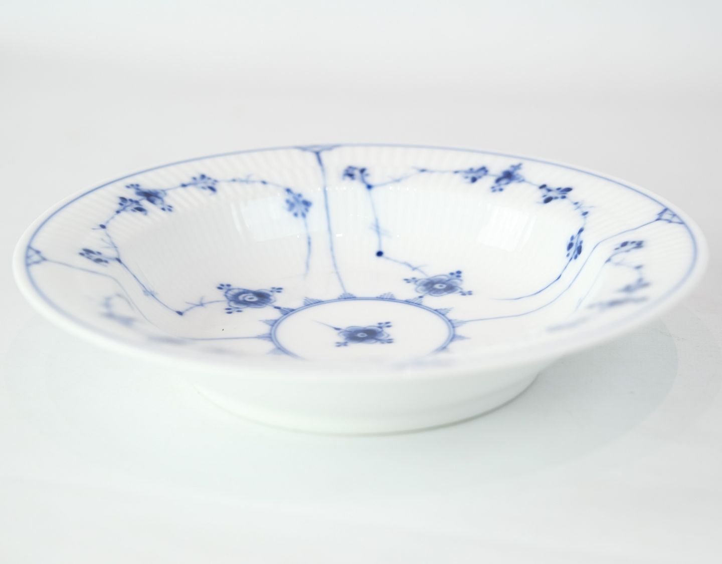 Royal Copenhagen mussel-painted fluted deep plate from the royal porcelain factory.