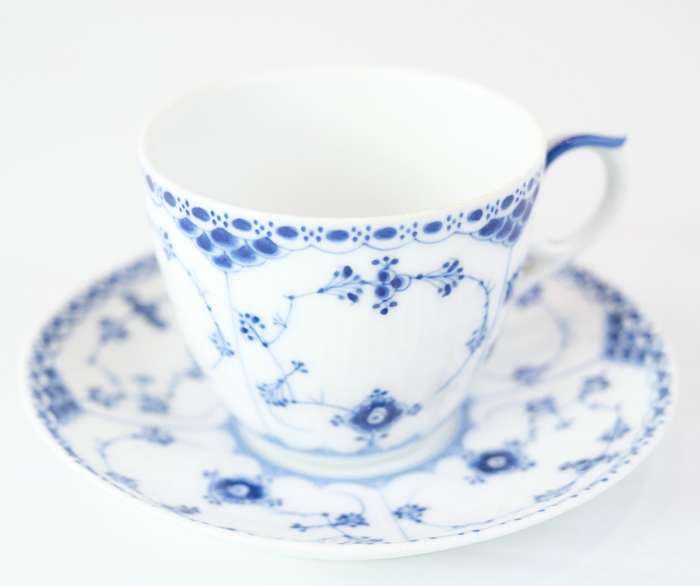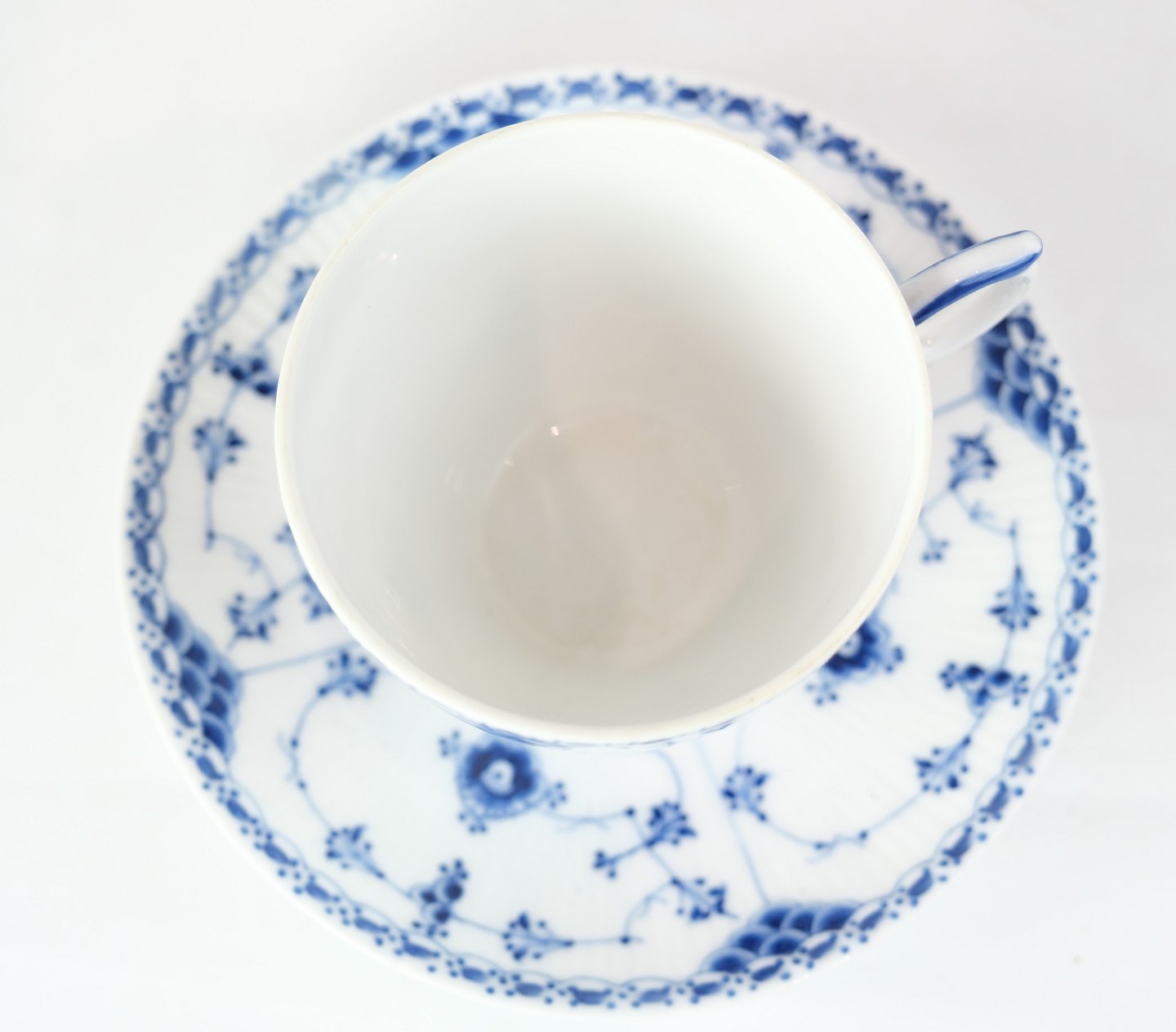 Royal Copenhagen, mussel painted half lace, coffee cup with saucer
