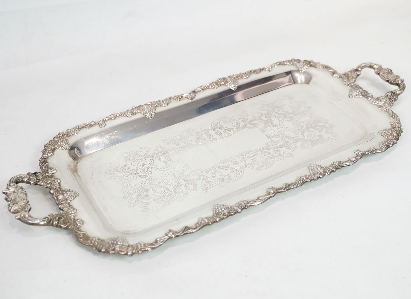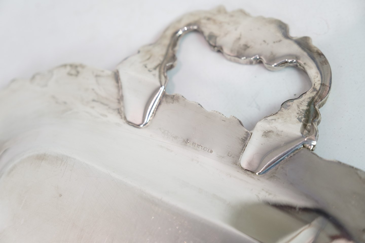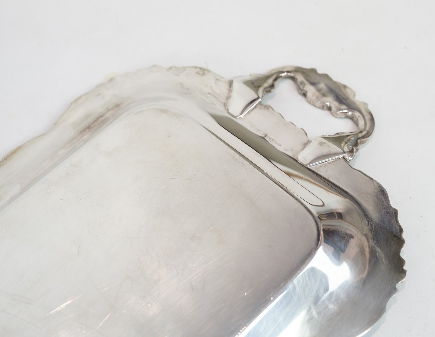 Aflangt fad i forsølvet messing fra omkring år 1930'erne.