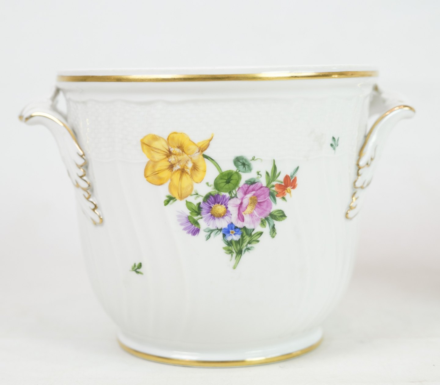 Royal Copenhagen champagne cooler in the Light Saxon Flower pattern from 1930. It can also be used as a flower pot and is in very fine condition. No. 493 / 1703.