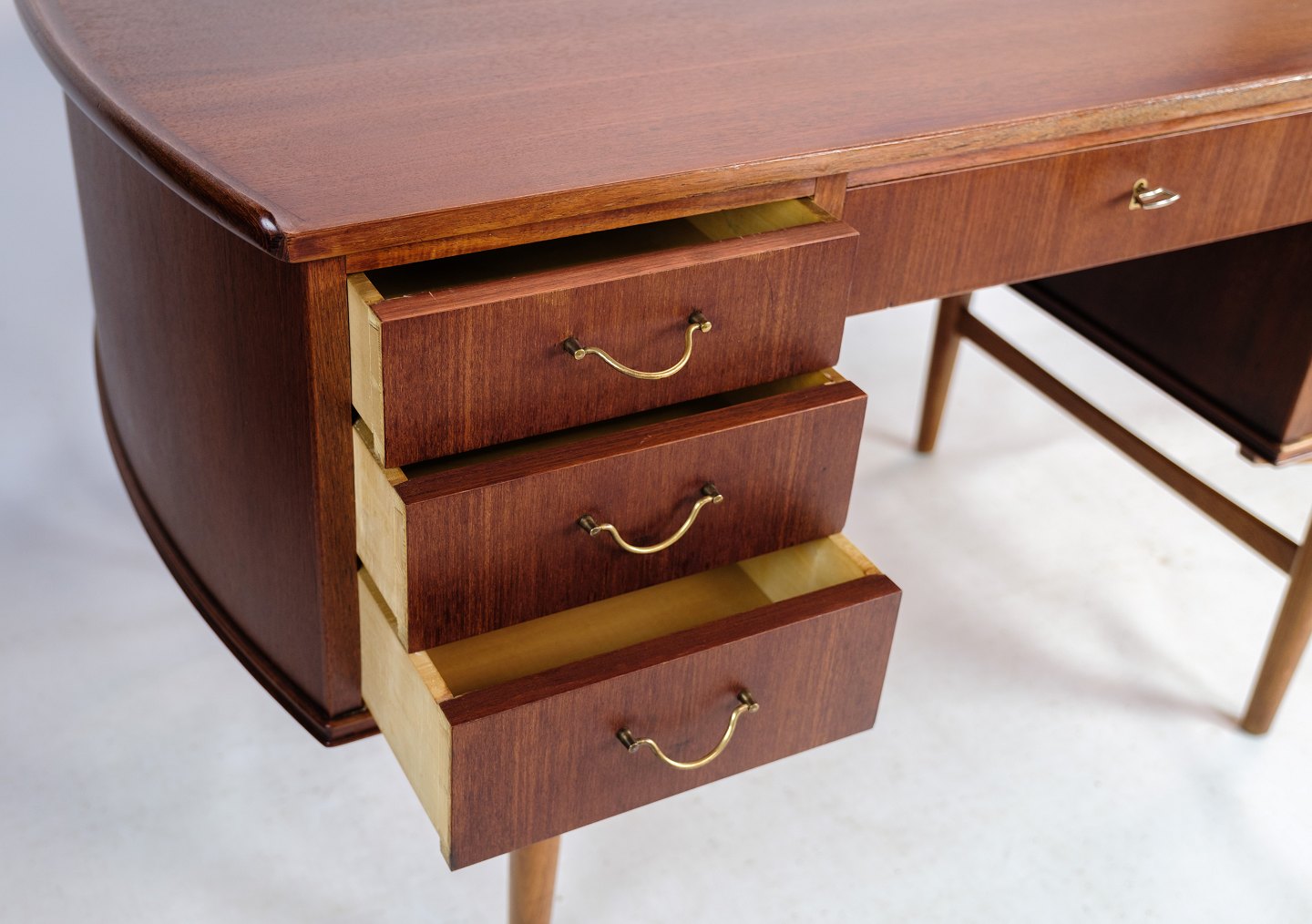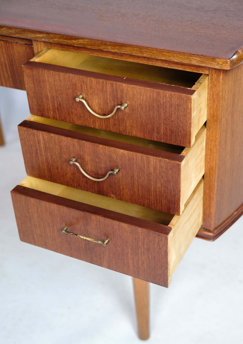 Skrivebord af dansk design fra omkring 1960'erne og er lavet af teaktræ. Skrivebordet har tre skuffer i hver sin side, hvilket giver god opbevaringsplads til kontorartikler og dokumenter.
