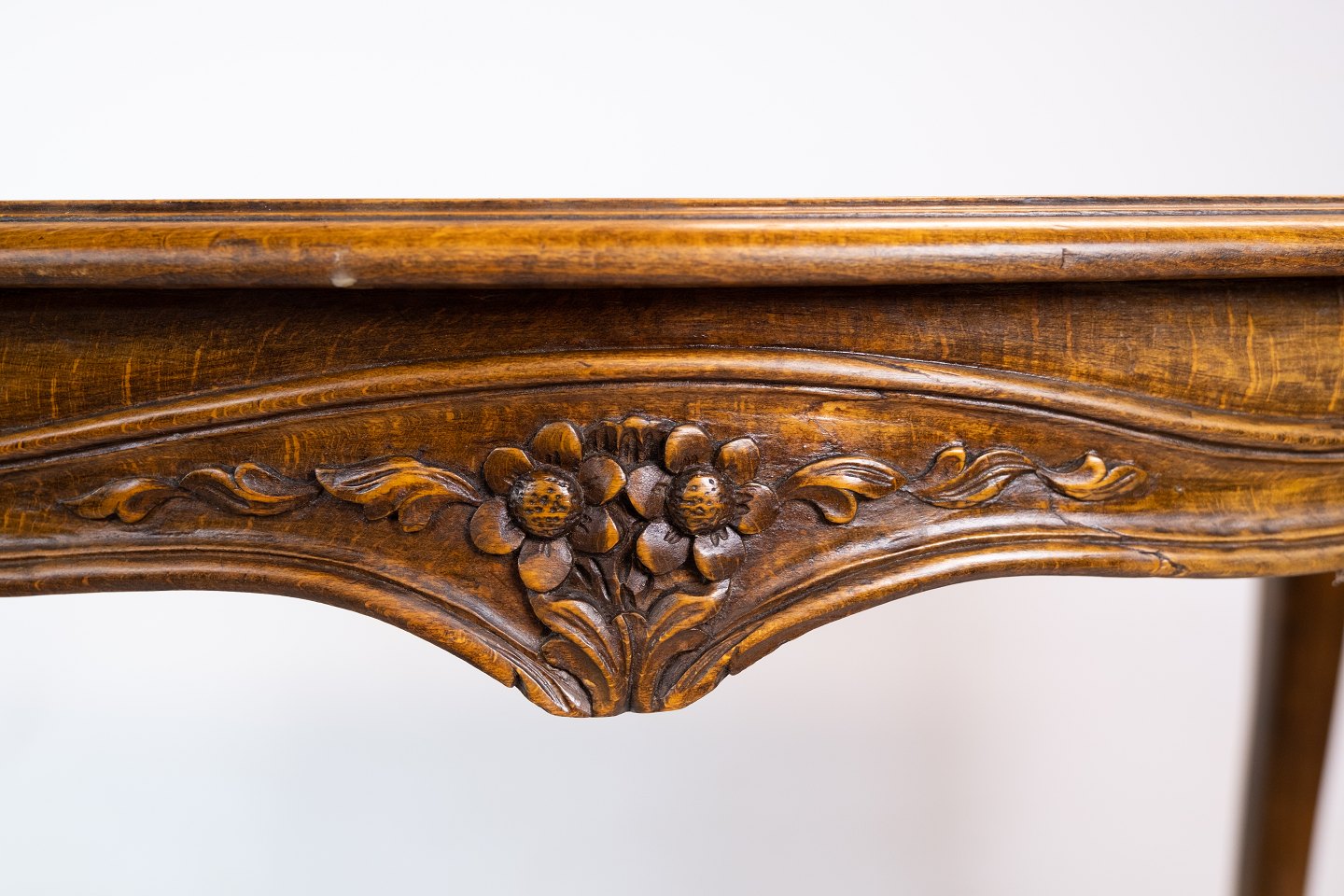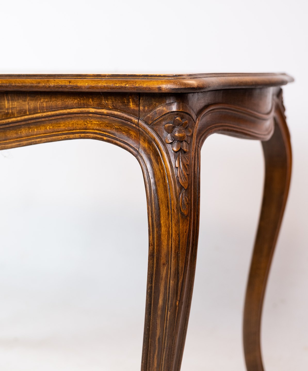 Antikt sofabord i mahogni med udskæringer fra omkring 1930'erne. Vil blive istandsat inden eventuel salg.