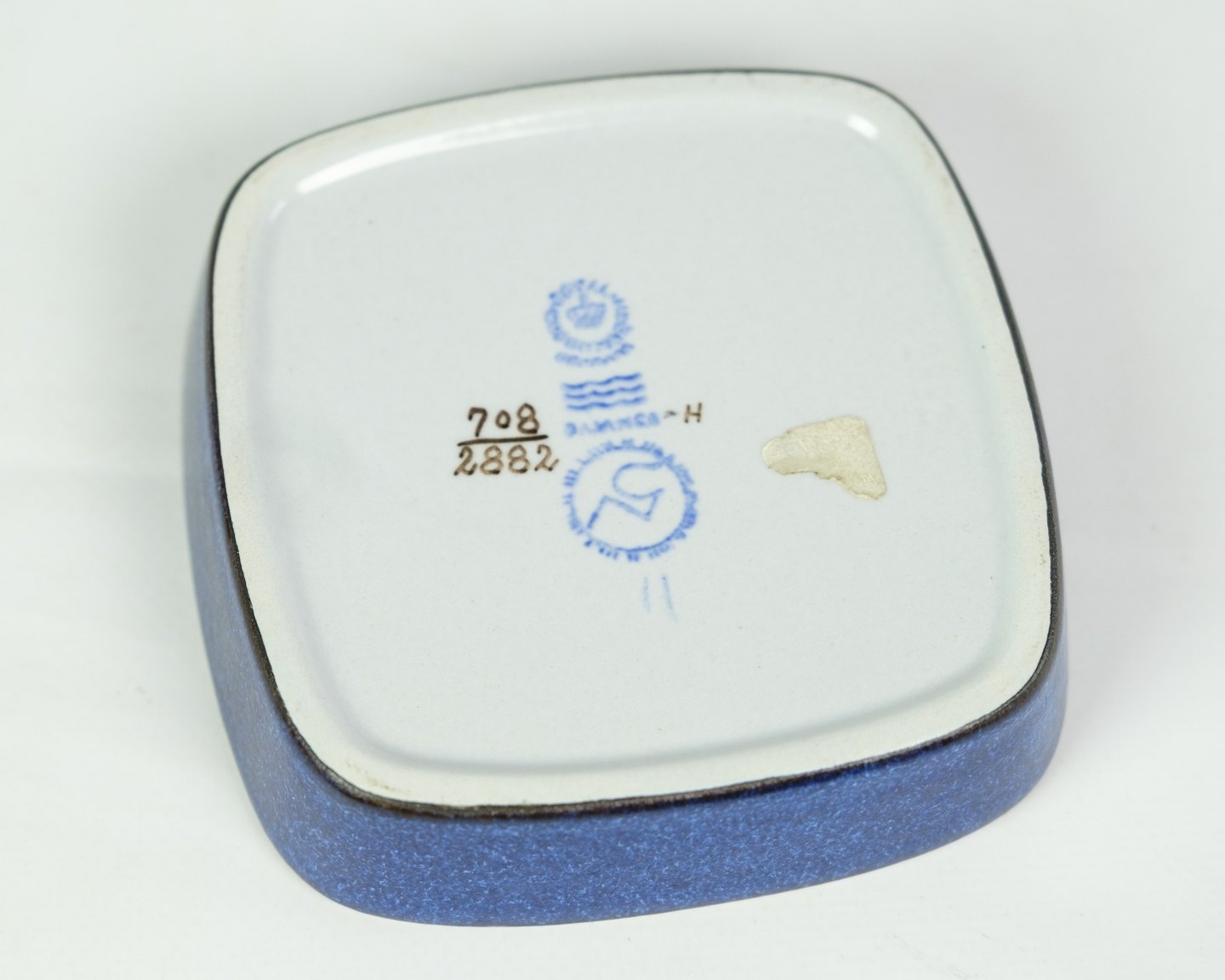 SoldSquare dish Aluminia art faience by Nils Thorsson no. 708 / 2882 with bird motif.