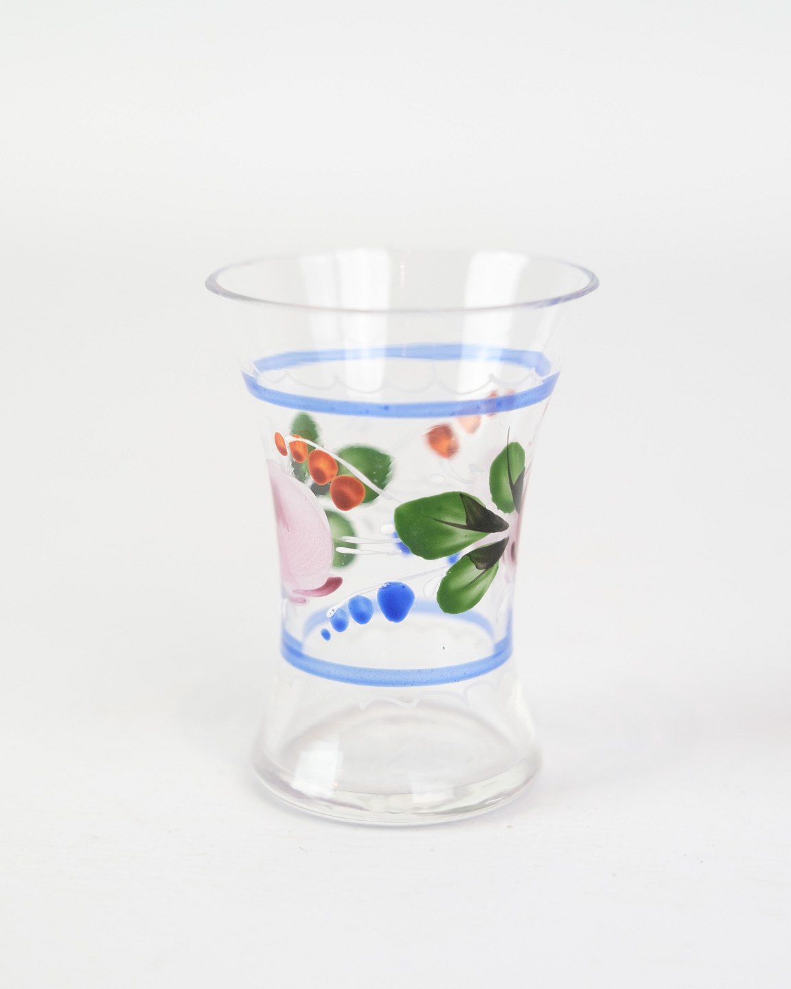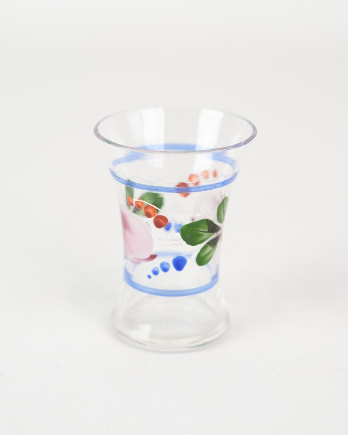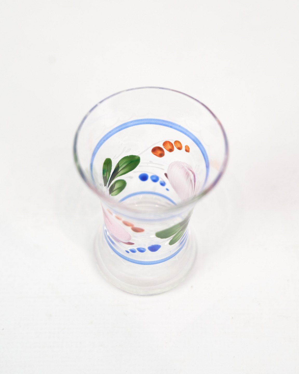 Sæt af 6 snapseglas med håndmalet blomster dekoration fra omkring 1930'erne. Sælges samlet for 600 for alle 6.