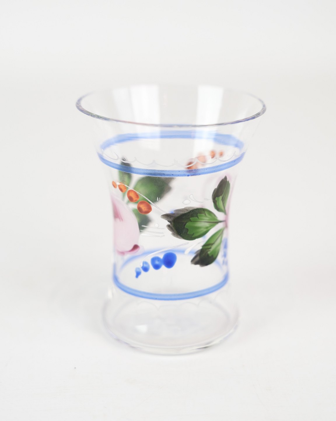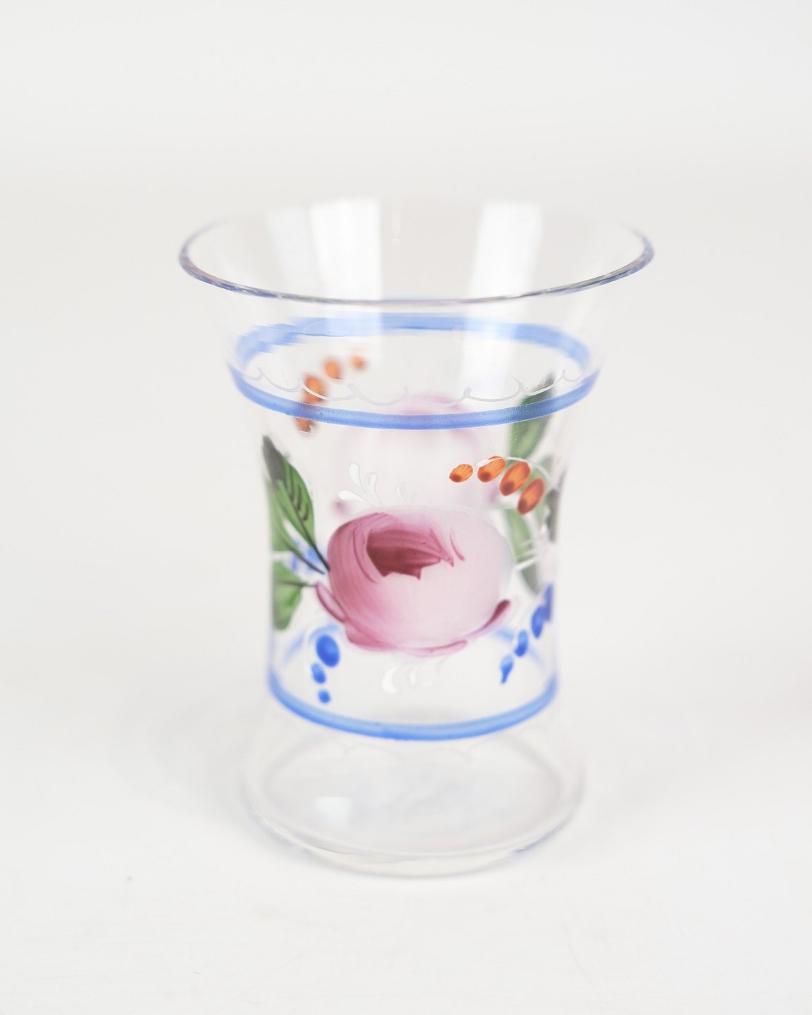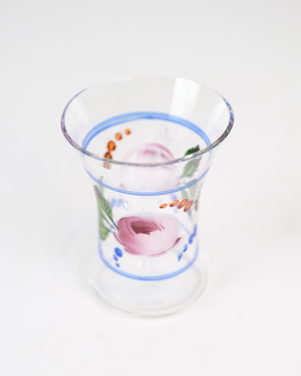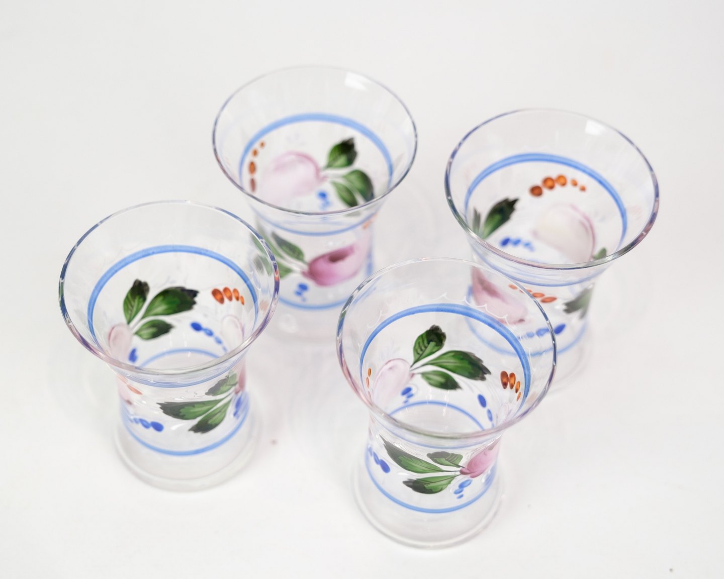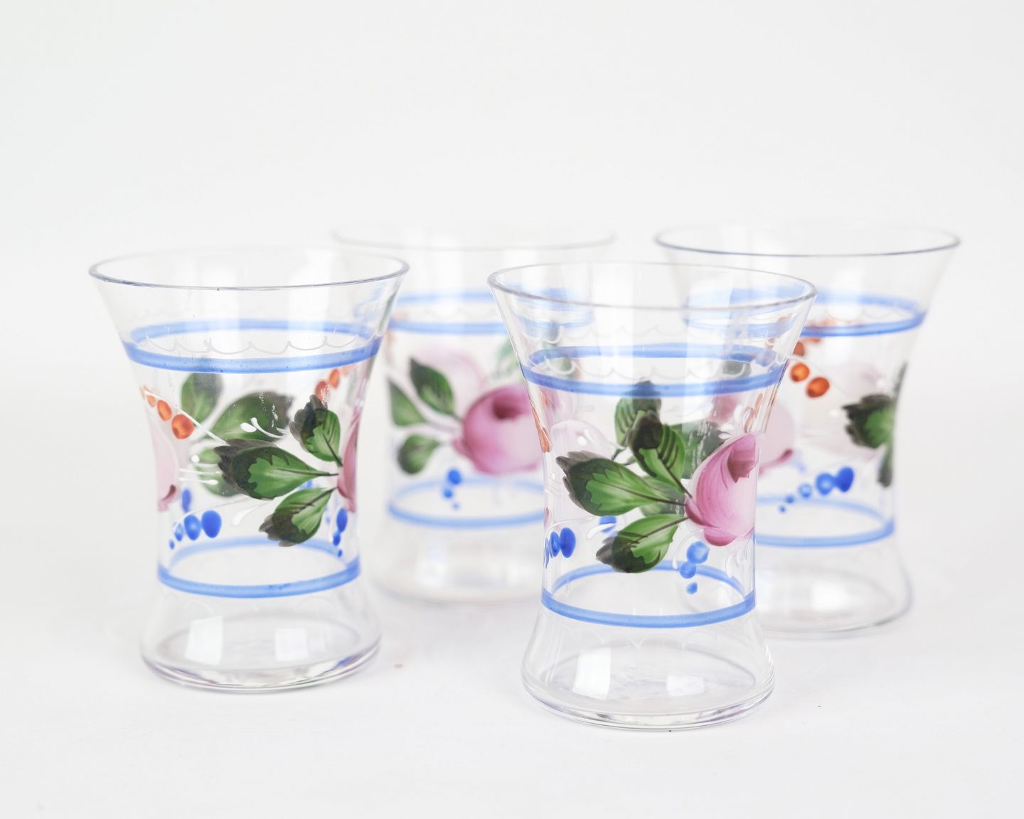 Four port wine glasses with hand-painted floral decoration from around the 1930s