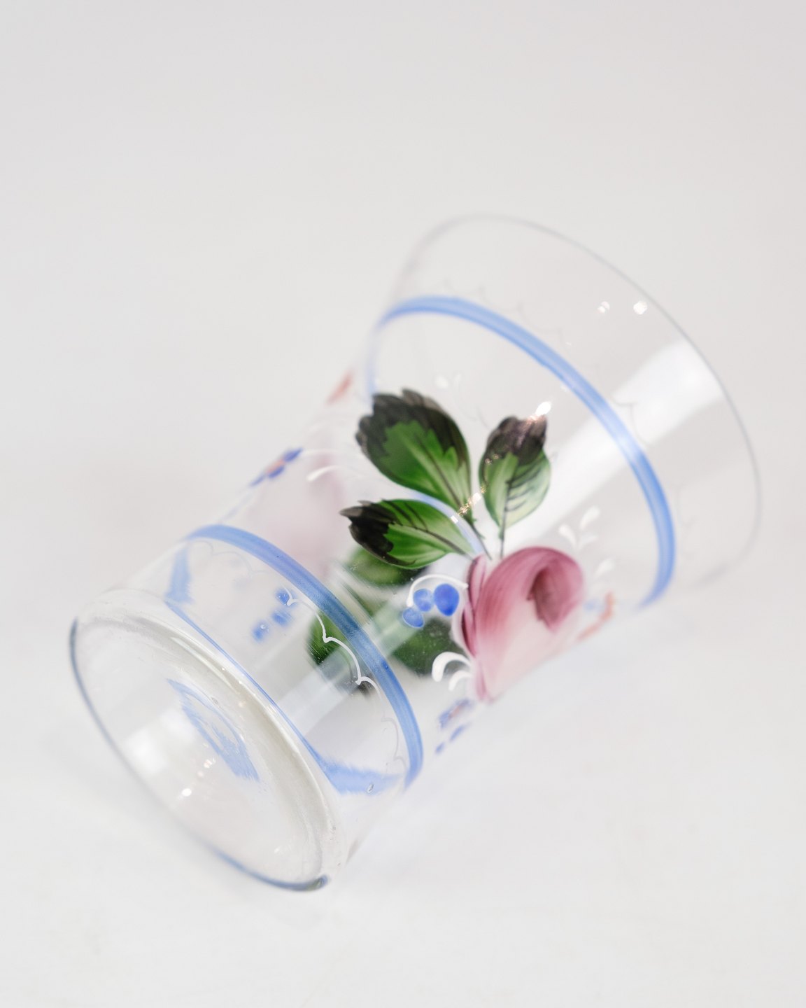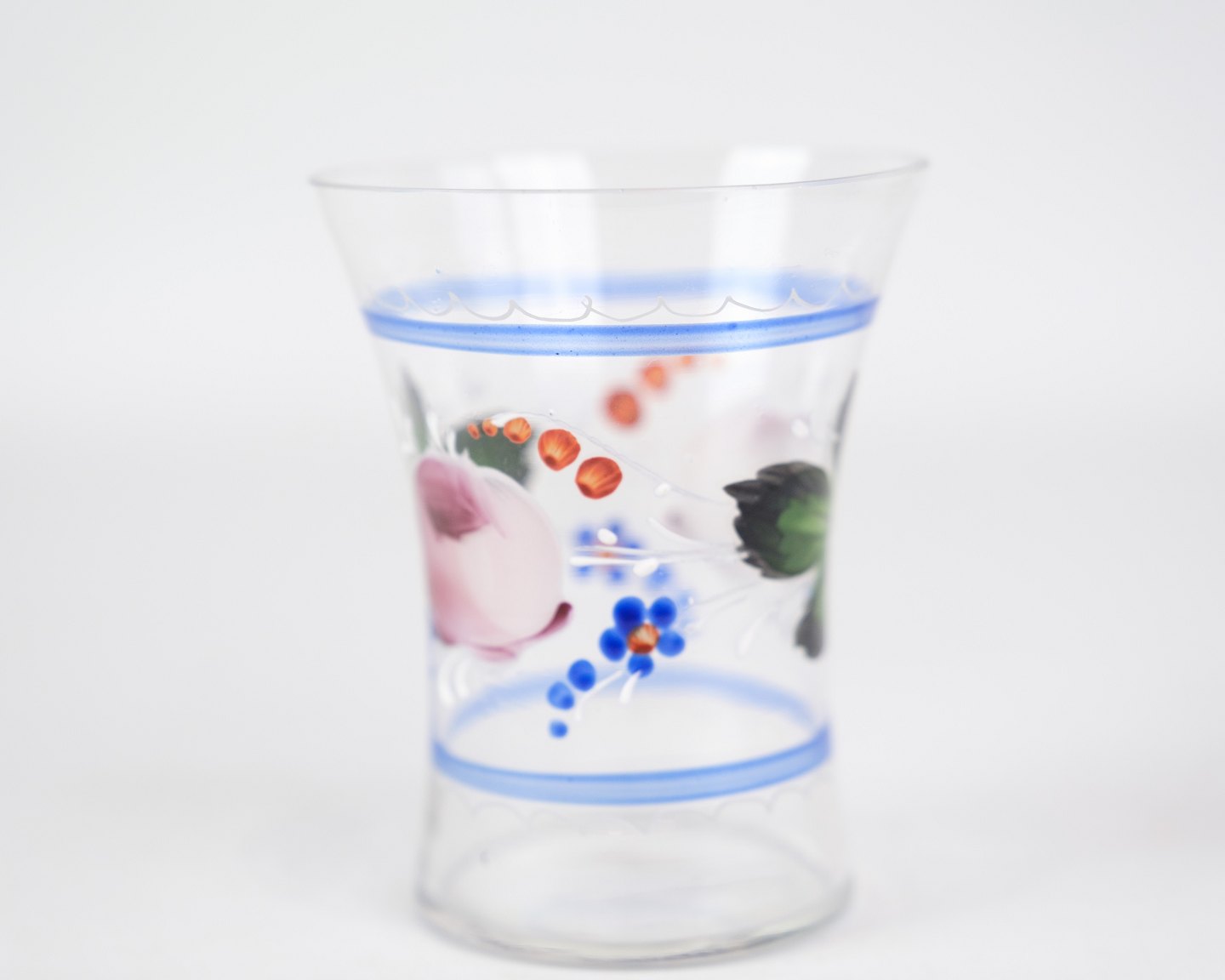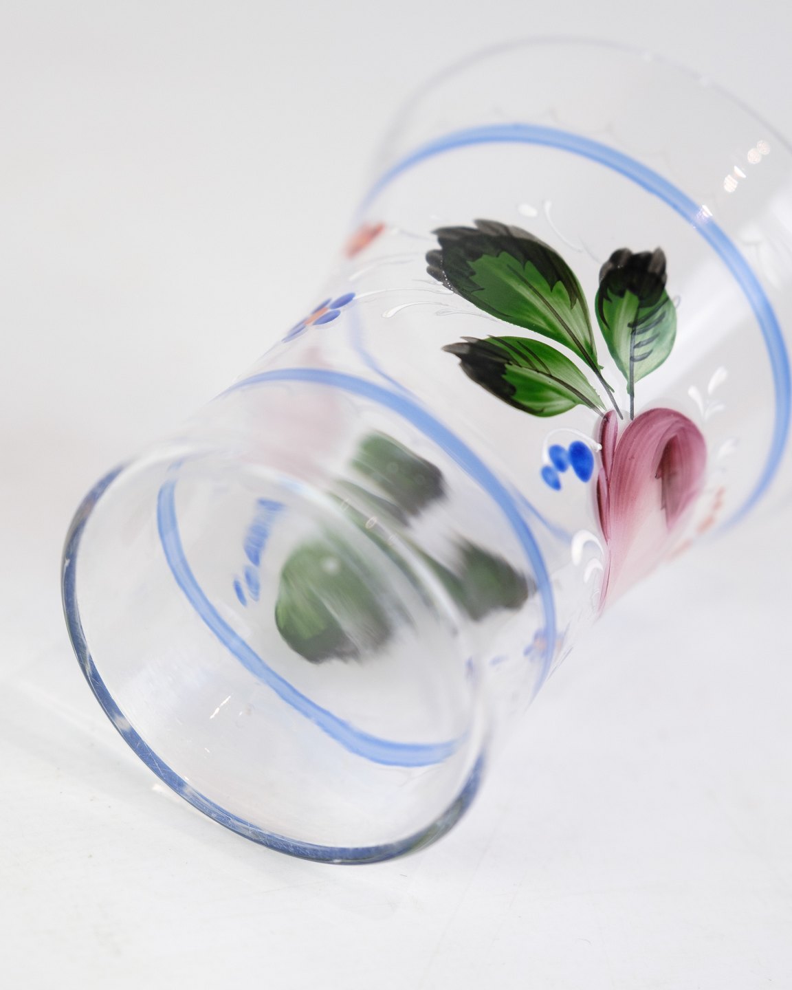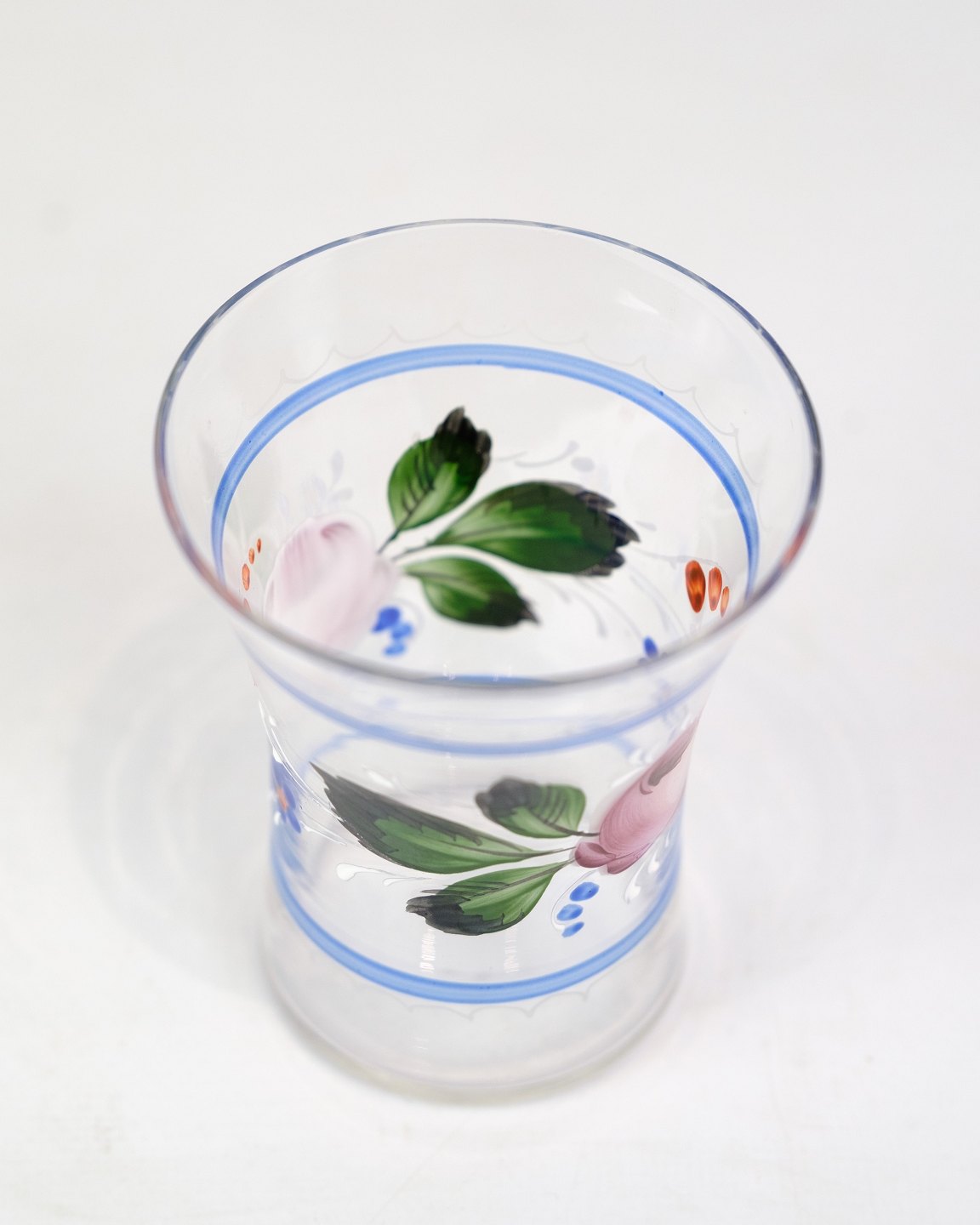 A pair of glass vases with hand-painted floral decoration from around the 1930s.