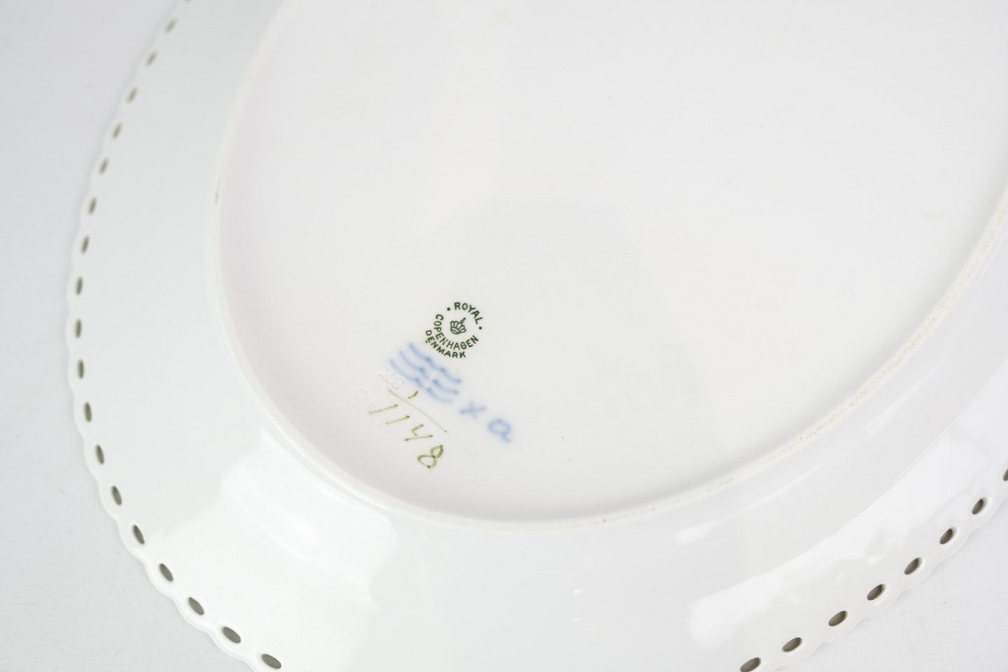 Royal Copenhagen Mussel painted full lace Oval Dish No. 1148.