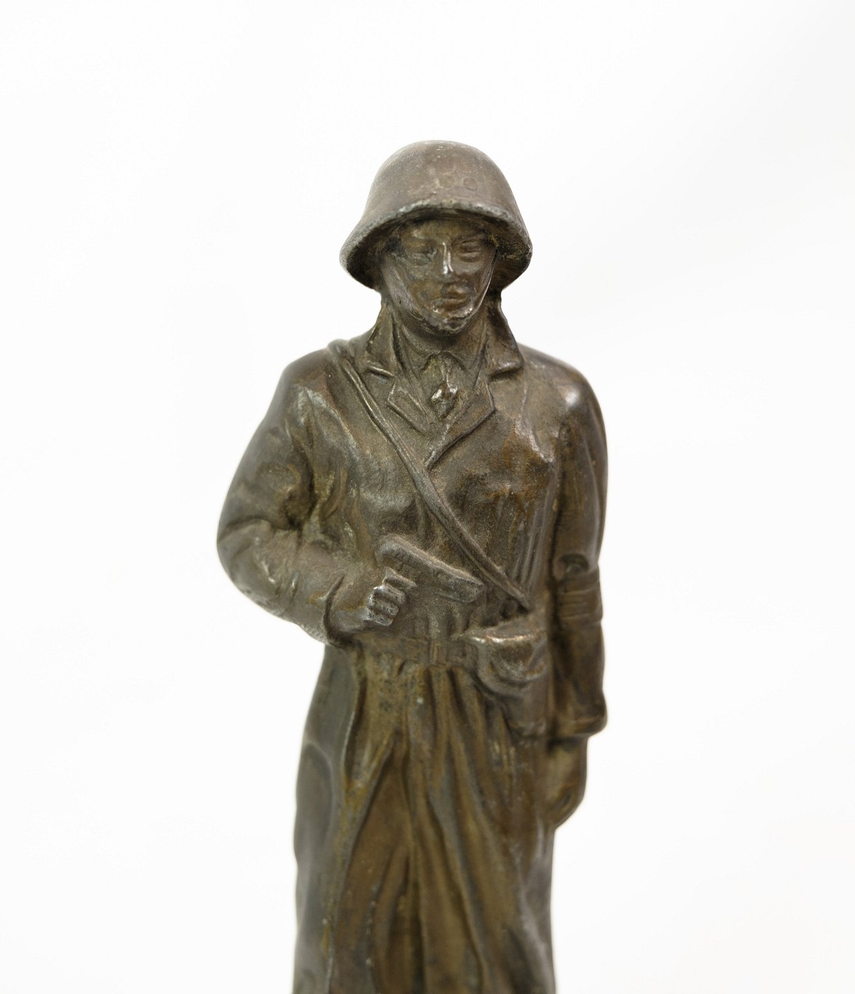 Soldier figure of patinated metal from around the 1940s. The figure also has an unknown signature.