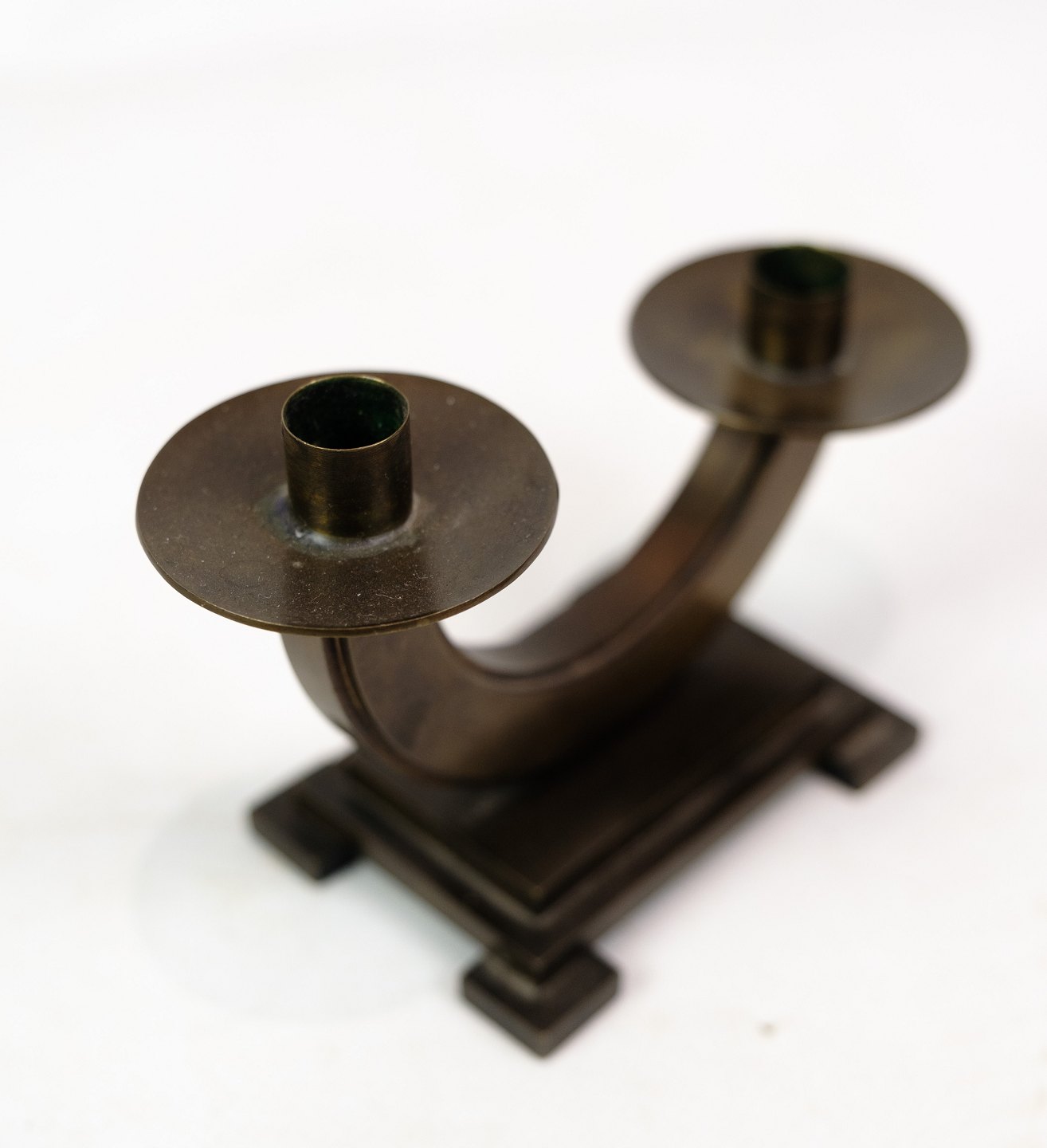 SoldA pair of bronzed brass candlesticks from the 1930s. Stands with a very fine patina.