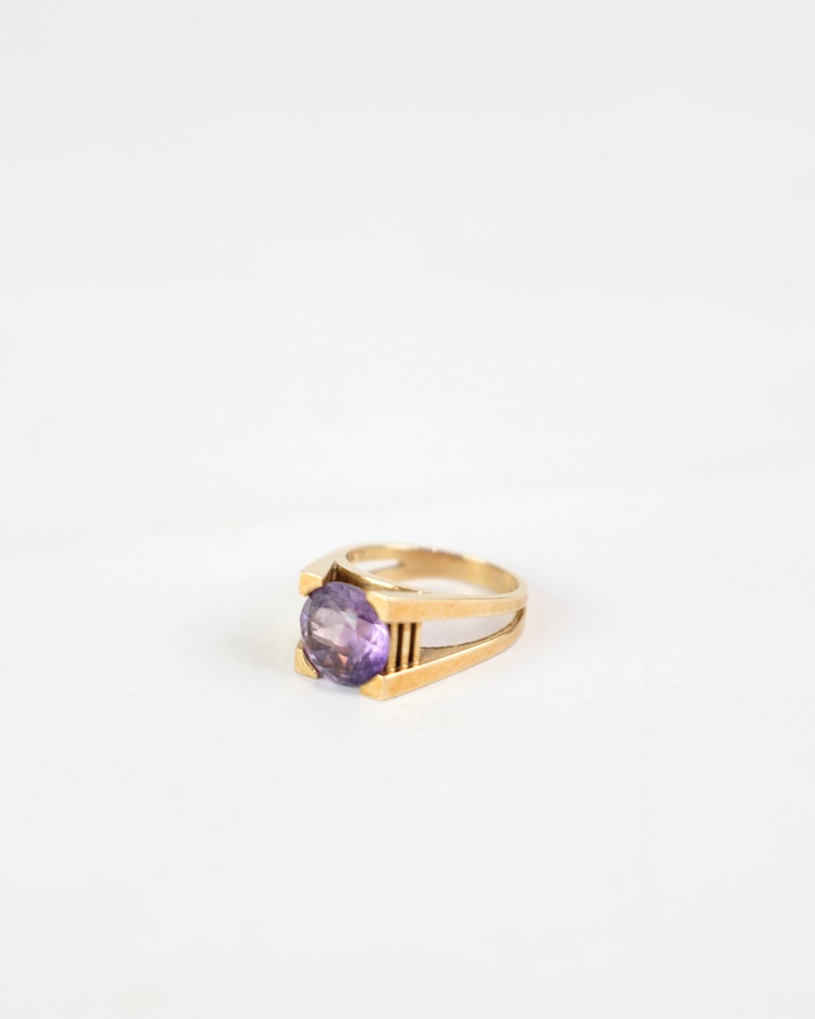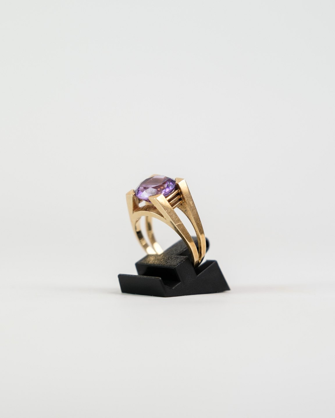 SoldRing of 14 carat gold, stamped 585, designed with a double ring rail set with a large purple amethyst by the goldsmith JØL.R.