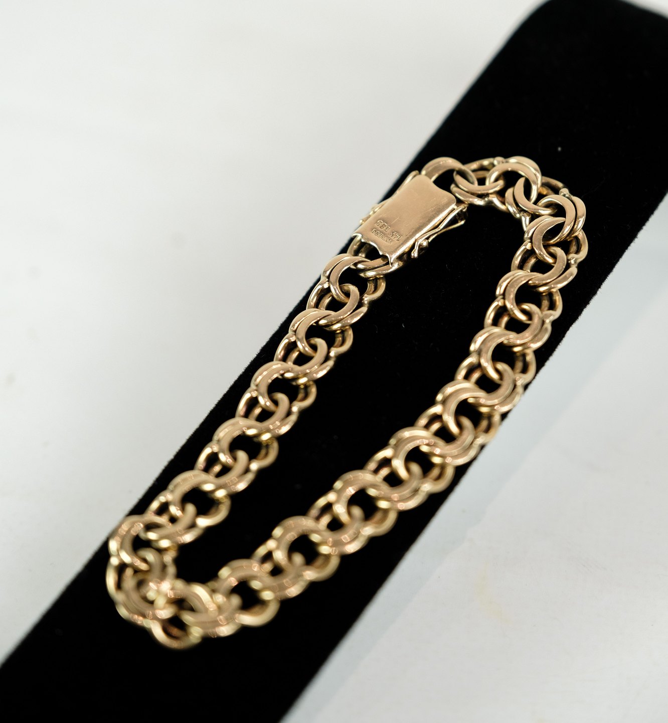 SoldBismark heavy arm jewelry / bracelet in 14 carat gold, stamped 14K 585 with box lock.