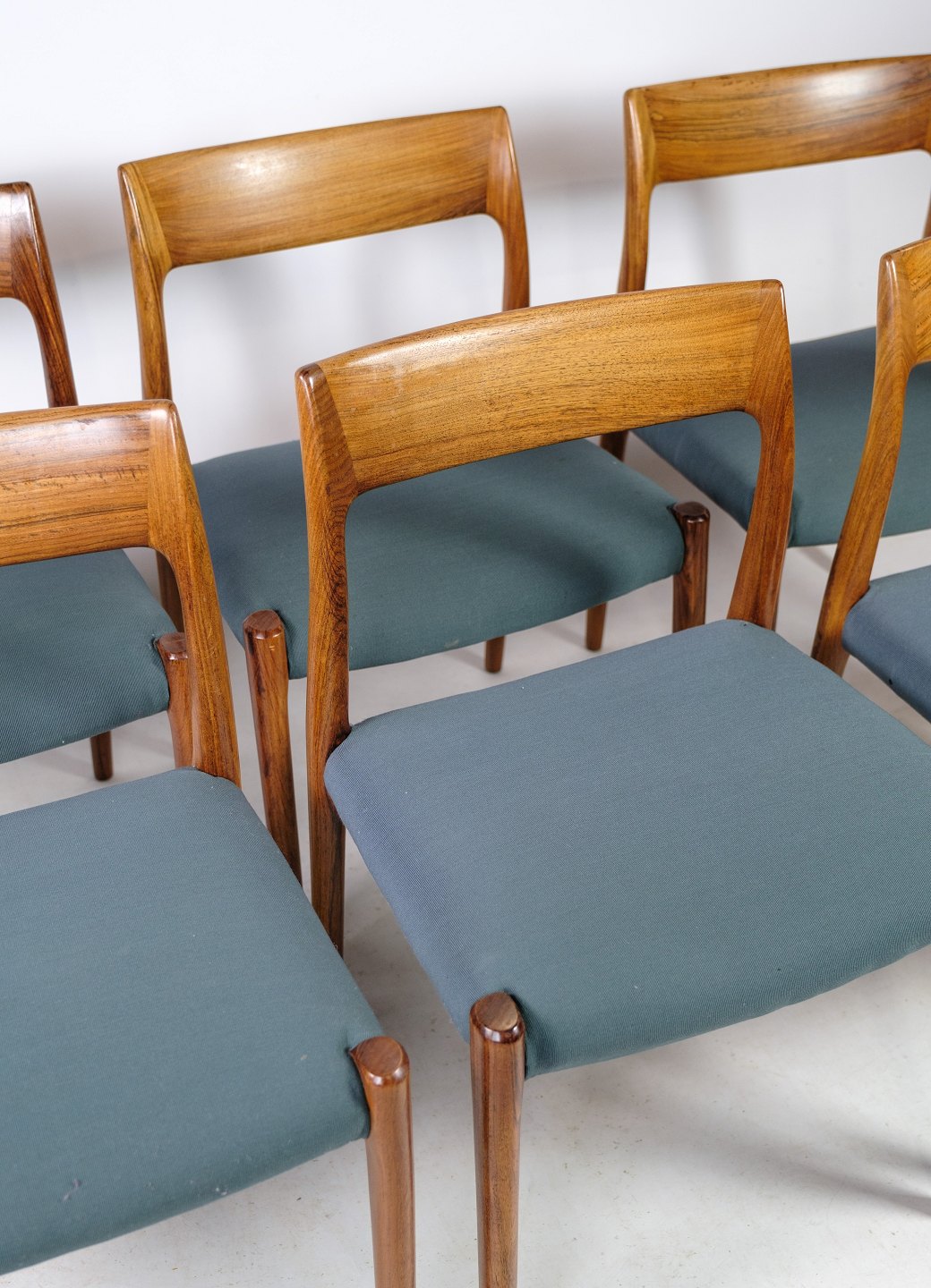SoldSet of six dining room chairs, Model 77, designed by Niels Otto Møller in rosewood manufactured at J.L Møller's Møbelfabrik from around the 1960s. The chair was designed in 1959 and is made of solid rosewood.