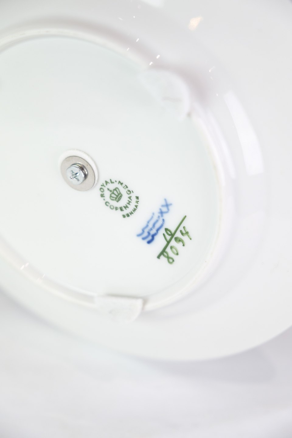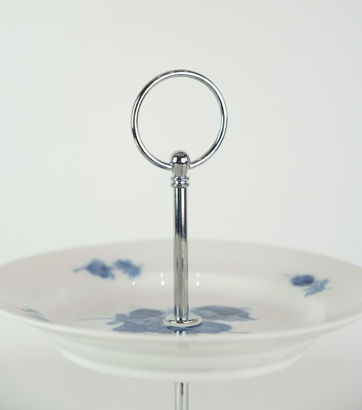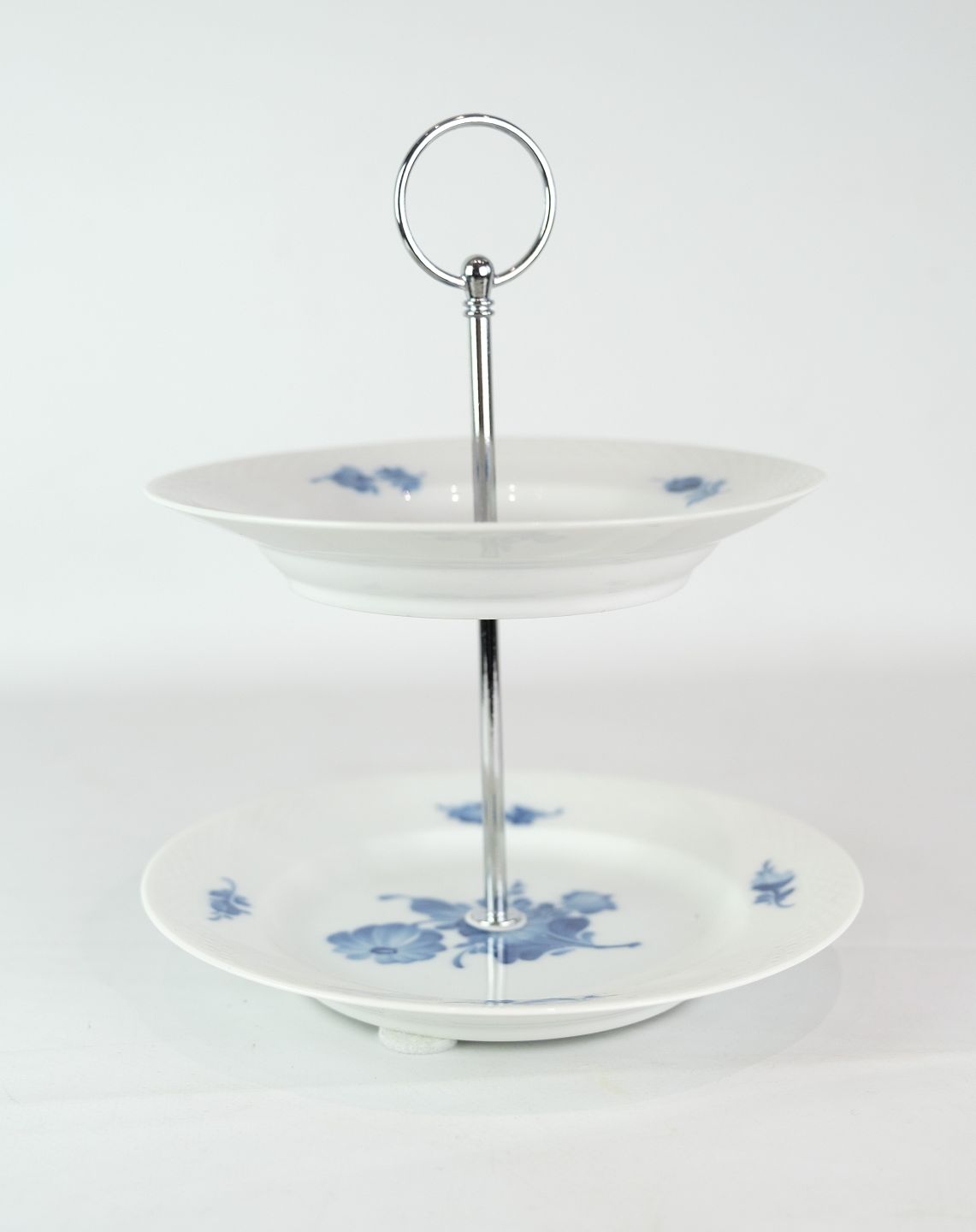 Kongelig todelt kage opsats i blå blomst flettet nr. 10/8094. Står i fin stand uden skader.