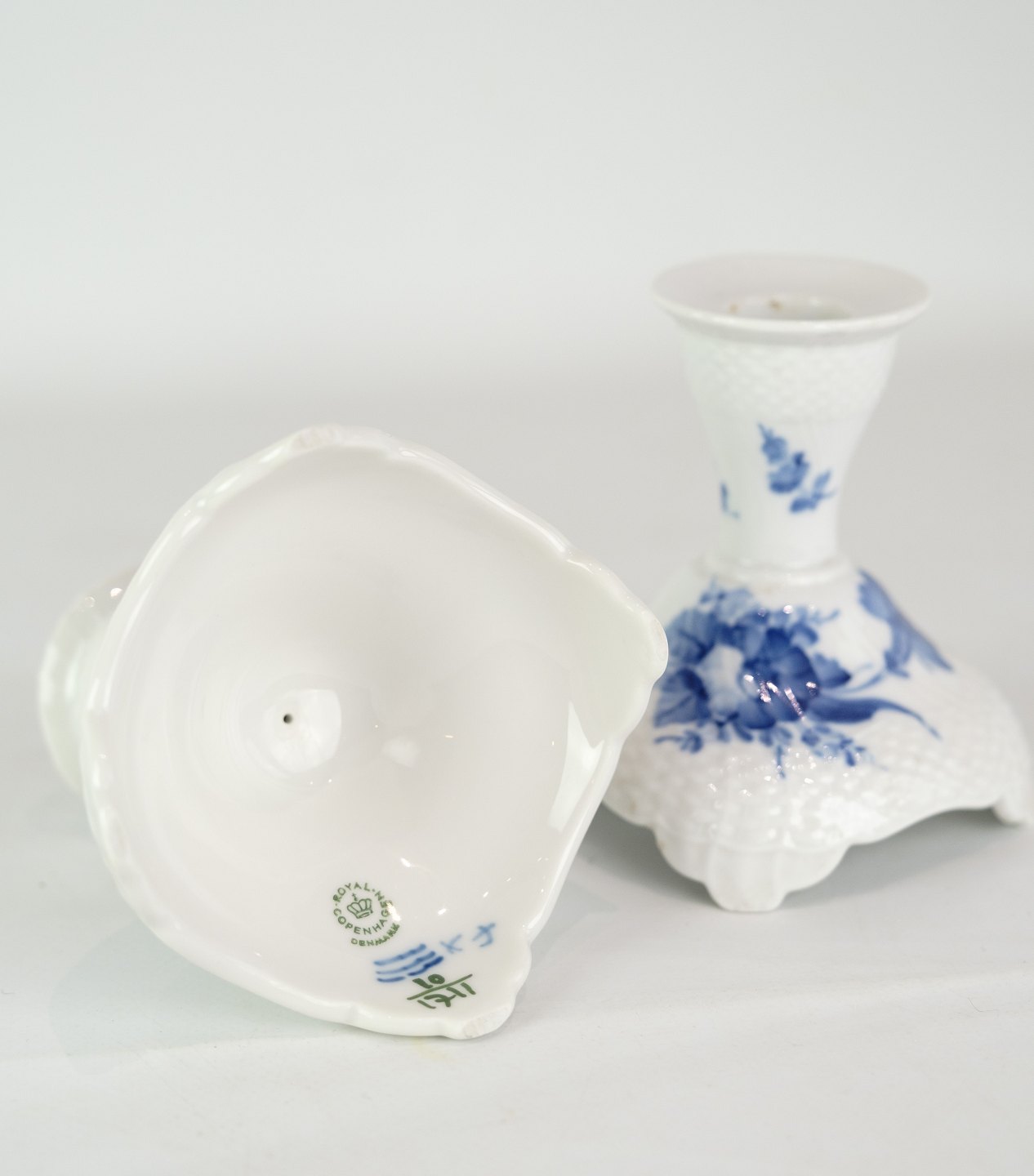 A pair of candlesticks in a patterned blue flower swooped by Royal Copenhagen no. 1711