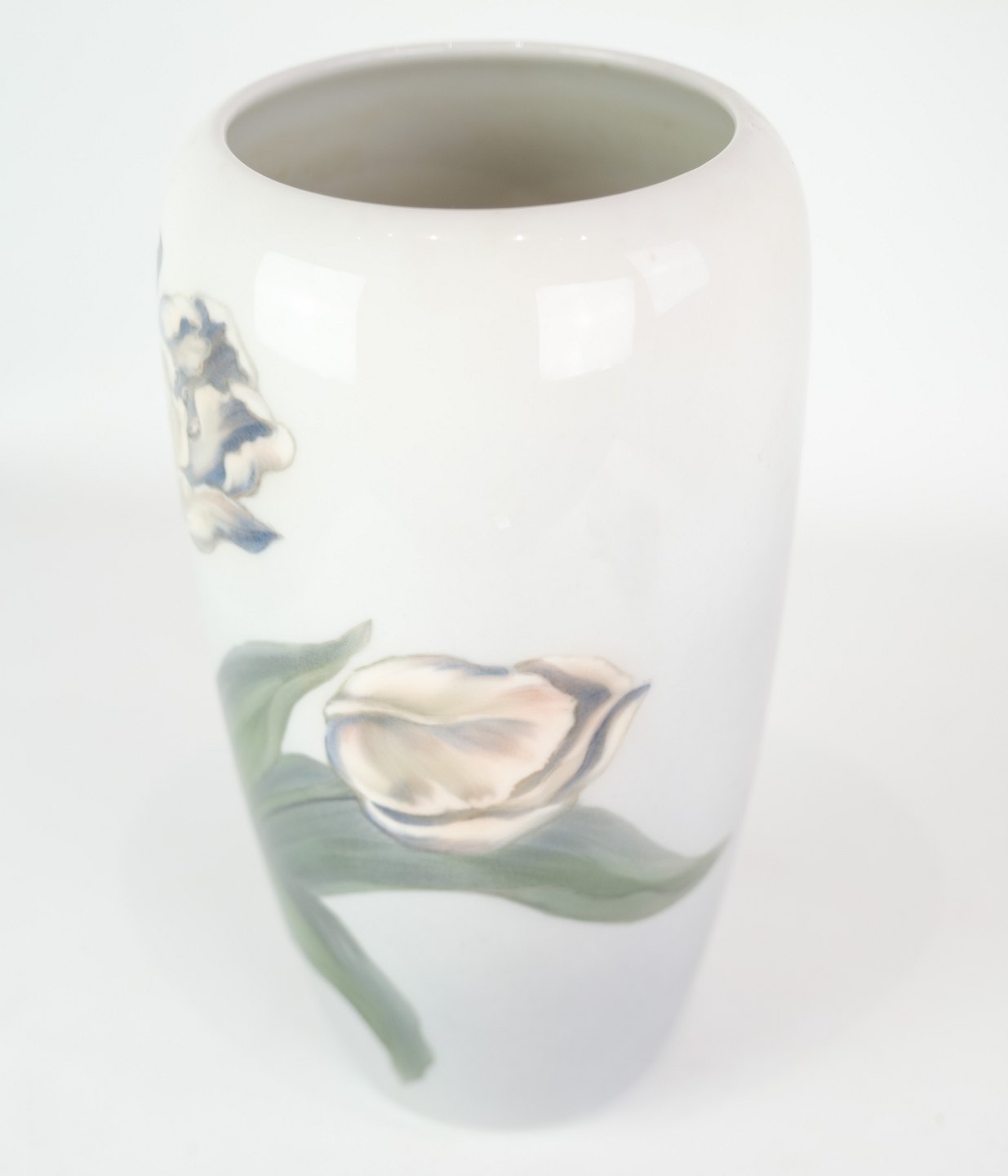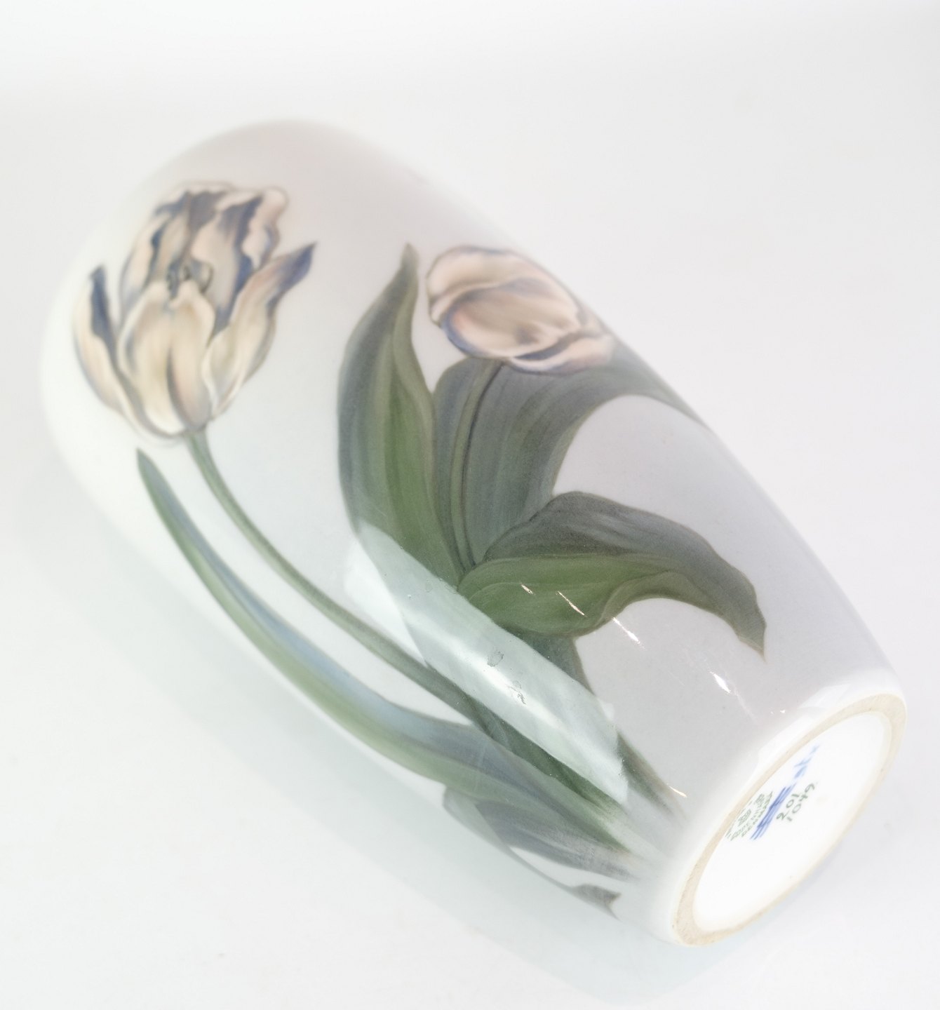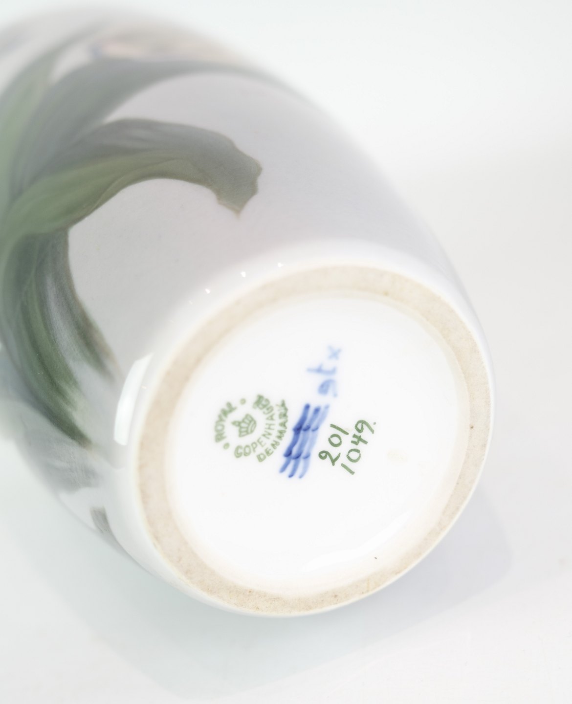 SoldRoyal porcelain vase with motif of flowers in white and green colors no. 201/1049. Perfect condition with no damage.