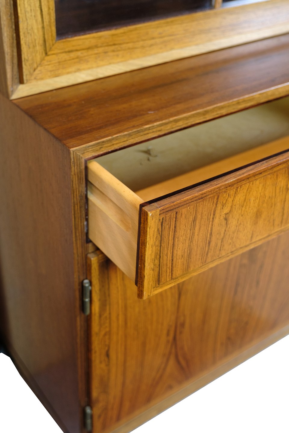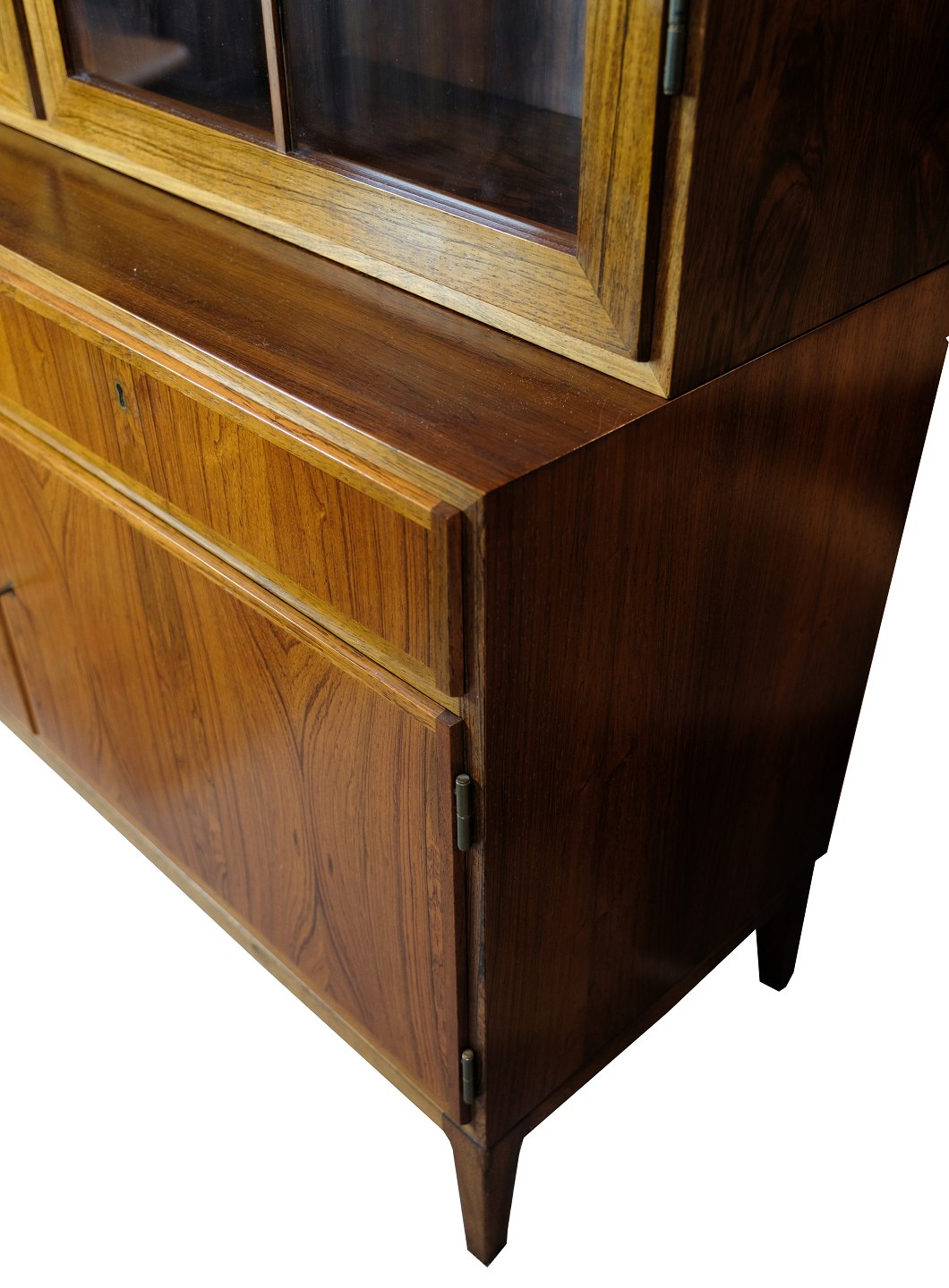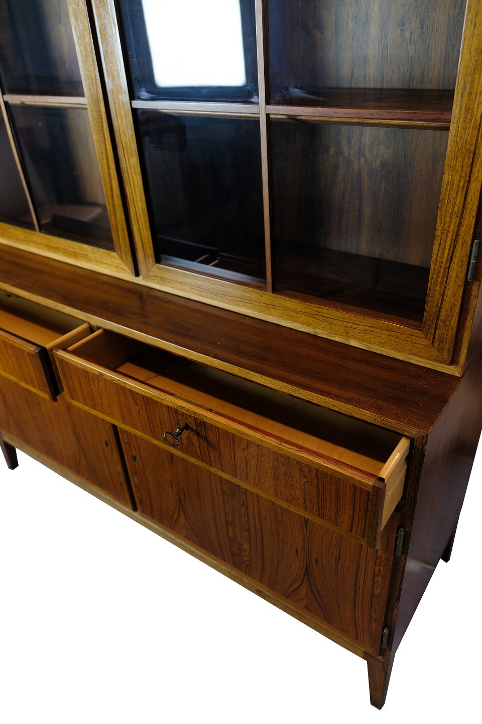 SoldDisplay cabinet with glass doors, as well as lower part with drawers and doors in rosewood, work of a Danish master carpenter from around the 1960s.