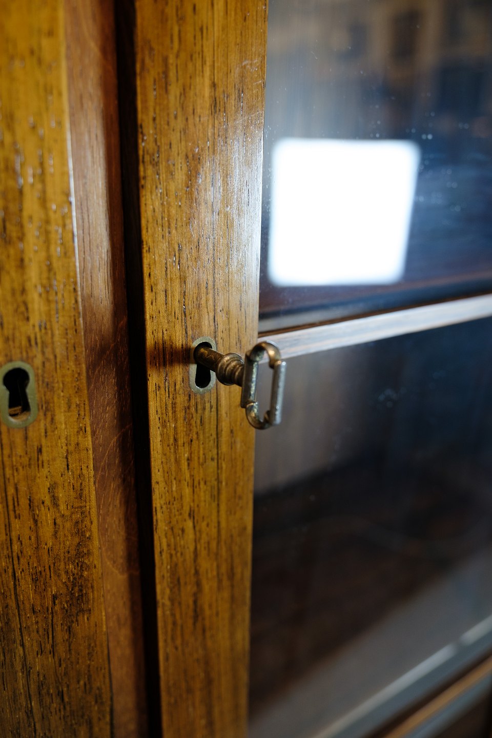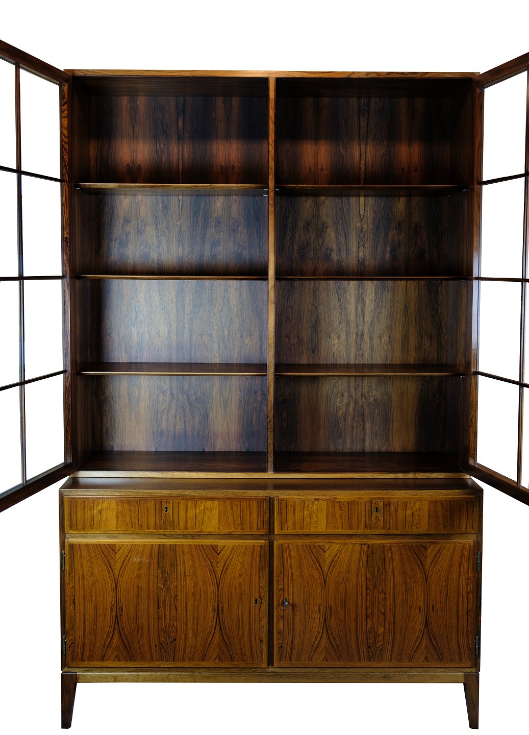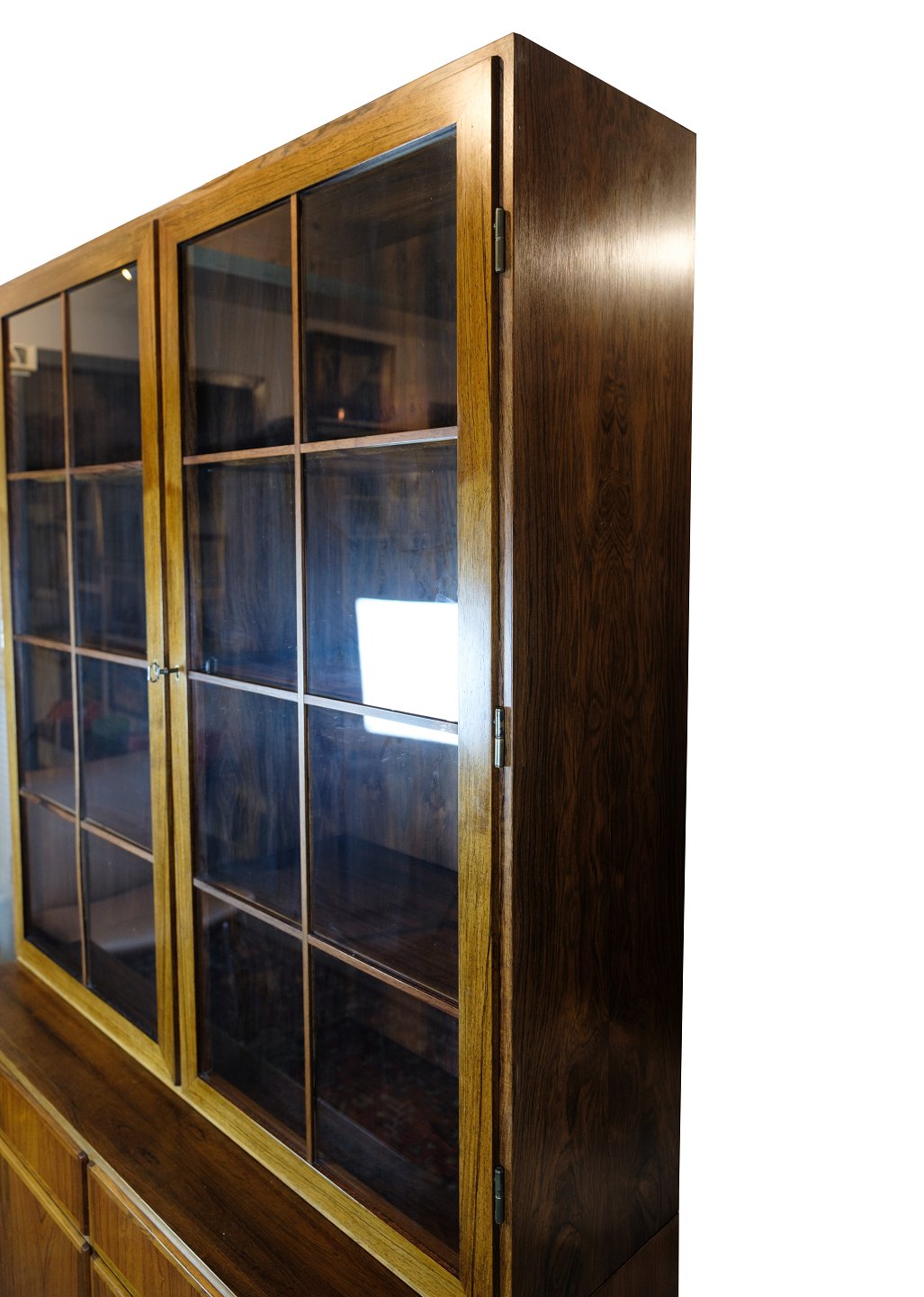 SoldDisplay cabinet with glass doors, as well as lower part with drawers and doors in rosewood, work of a Danish master carpenter from around the 1960s.