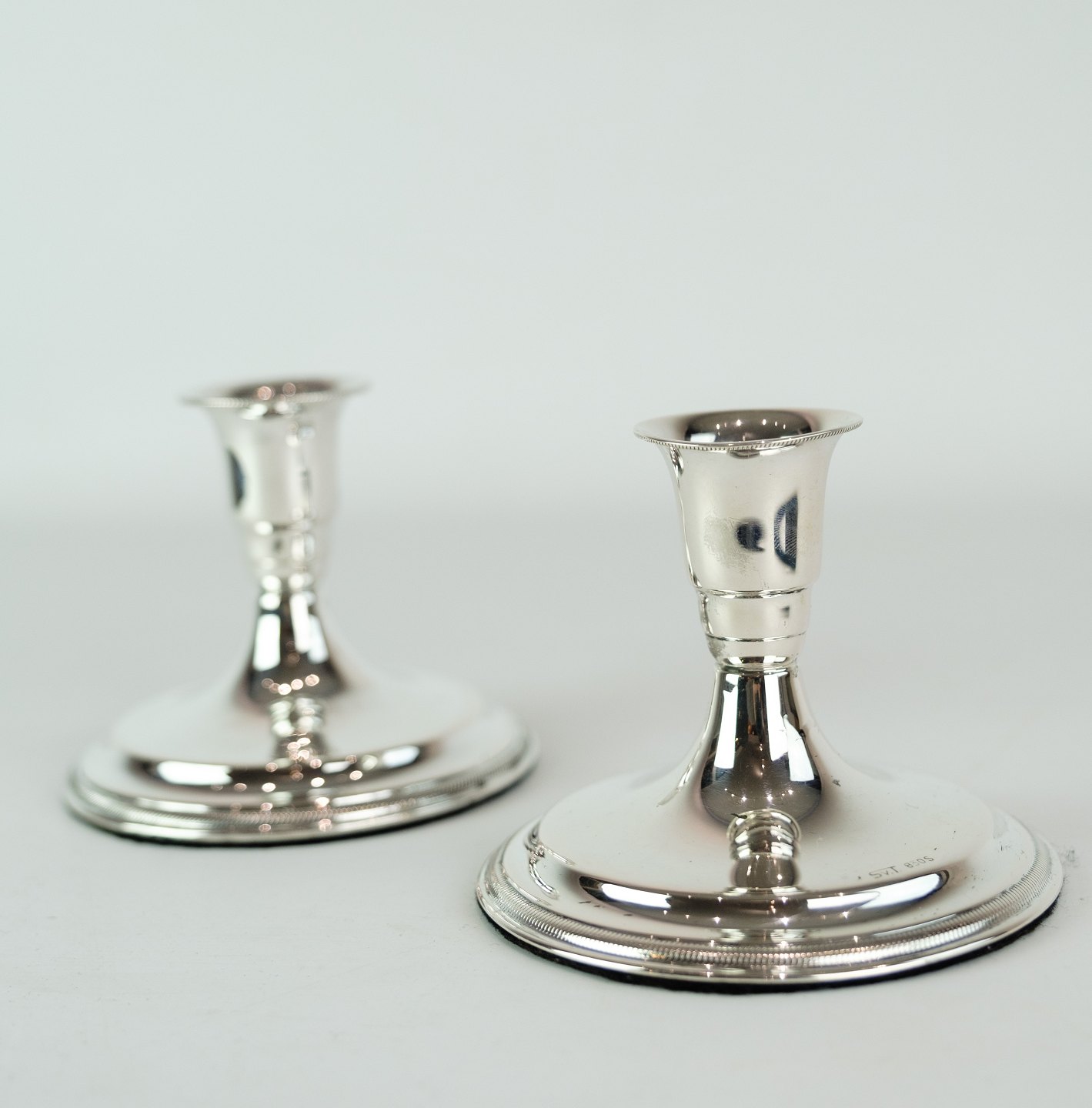 Low silver candlesticks made by silversmith Sven Toksværd in the material silver 830 sterling from around the 1930s.