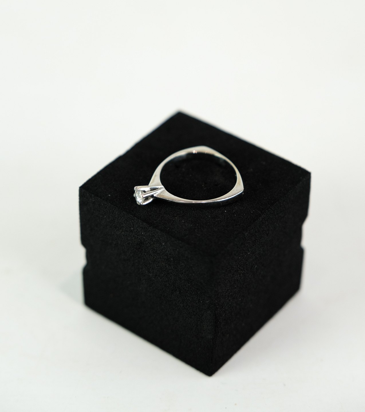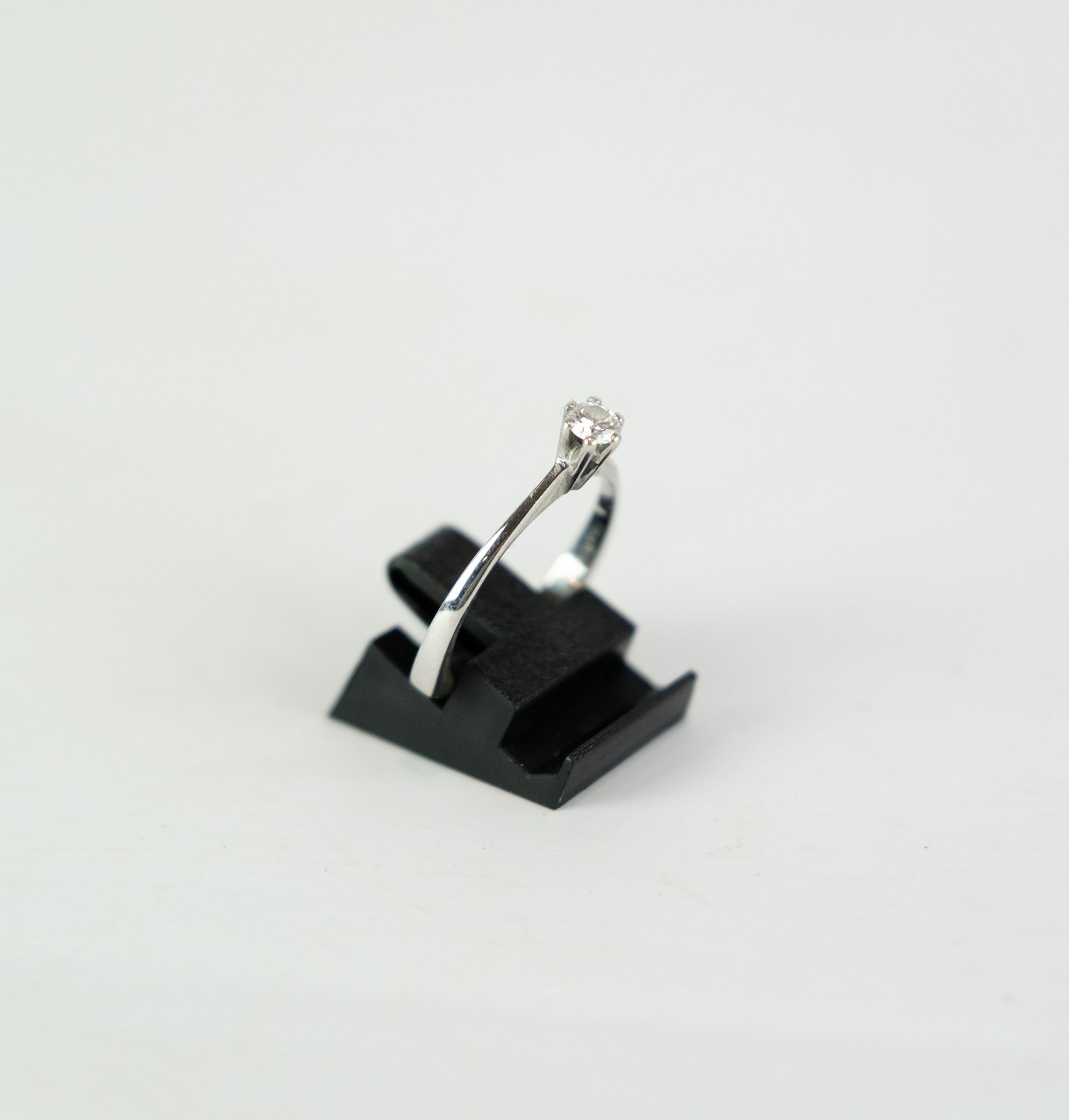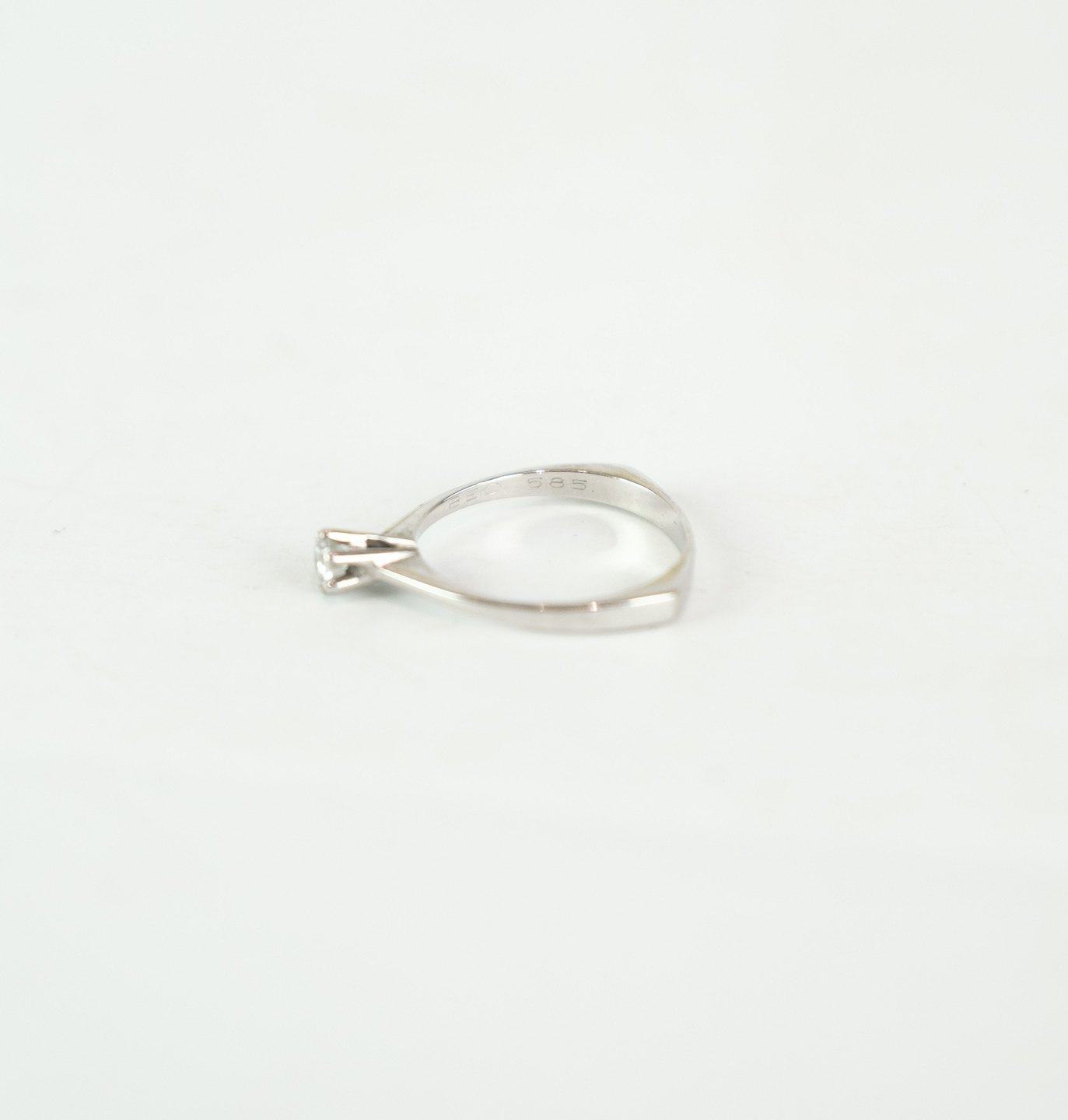Prinsesse / solitaire ring af hvidguld af 14 karat guld, stemplet "BEC" 585 med en 0,25 karat diamant.