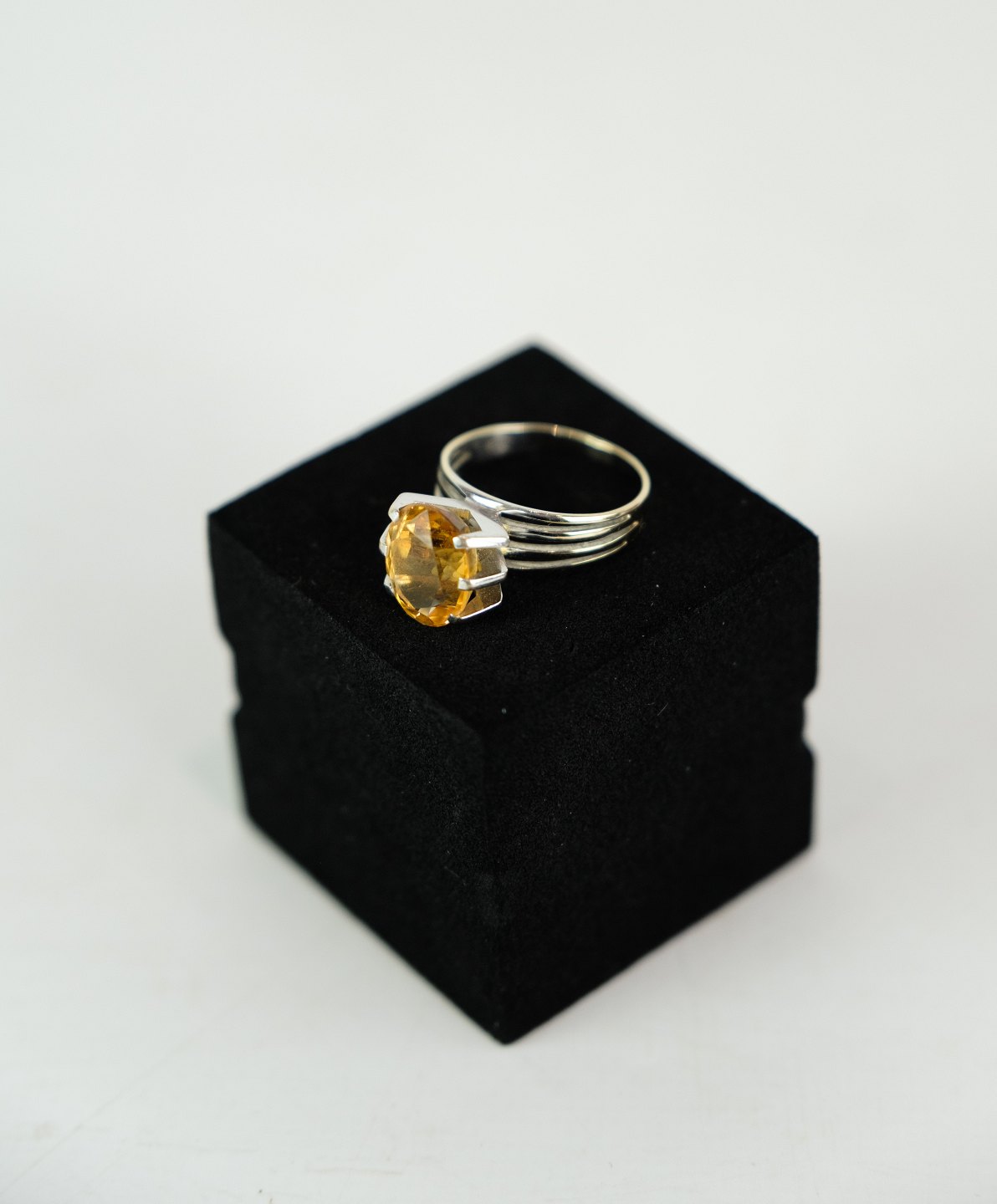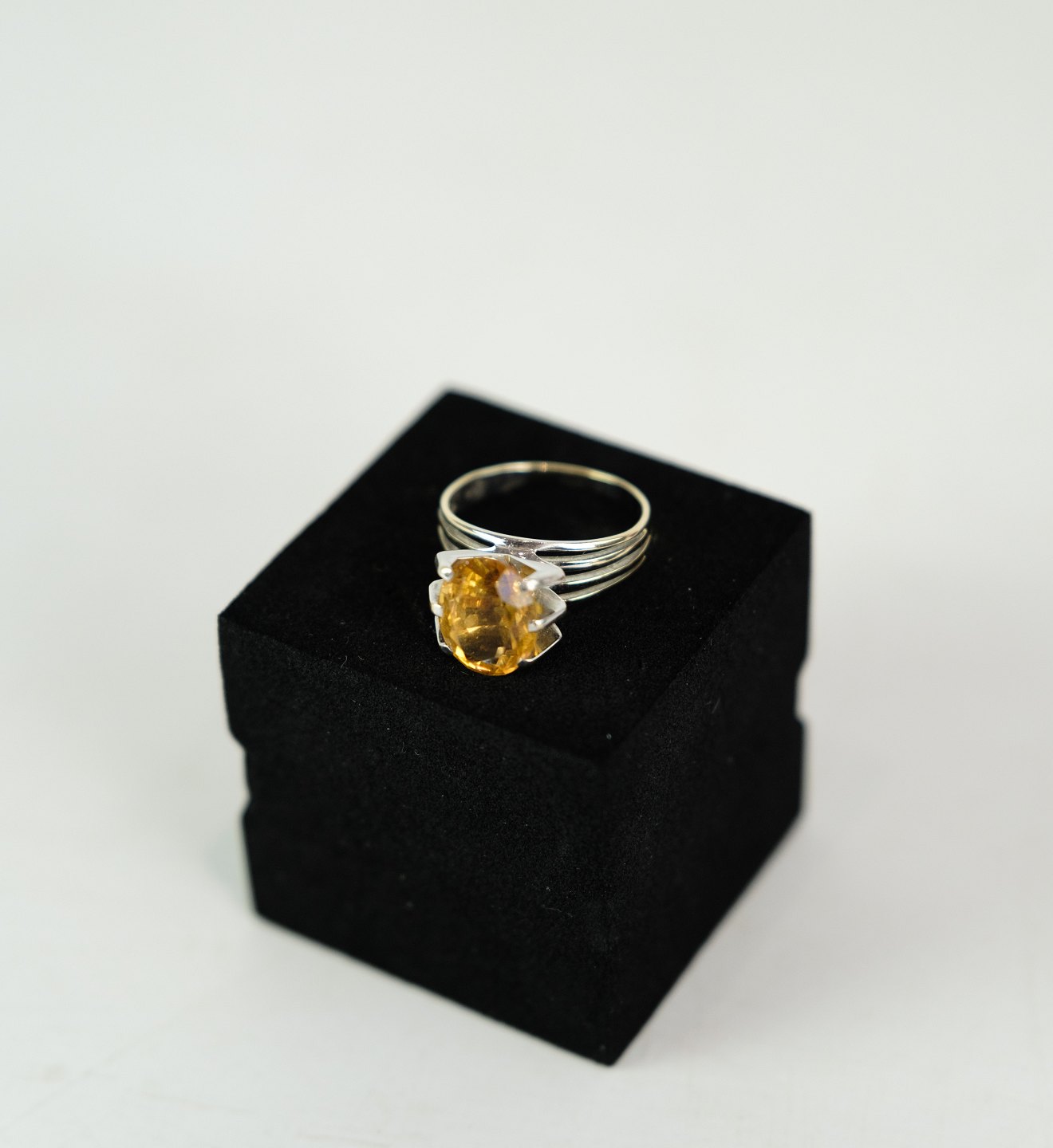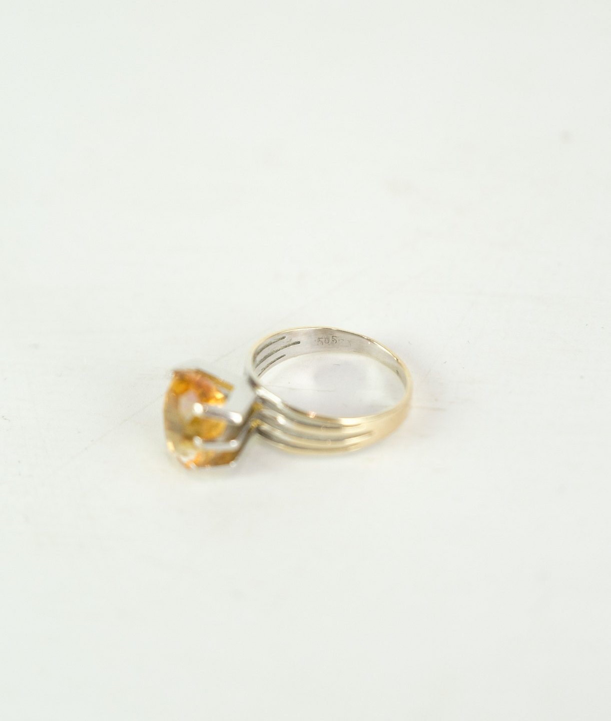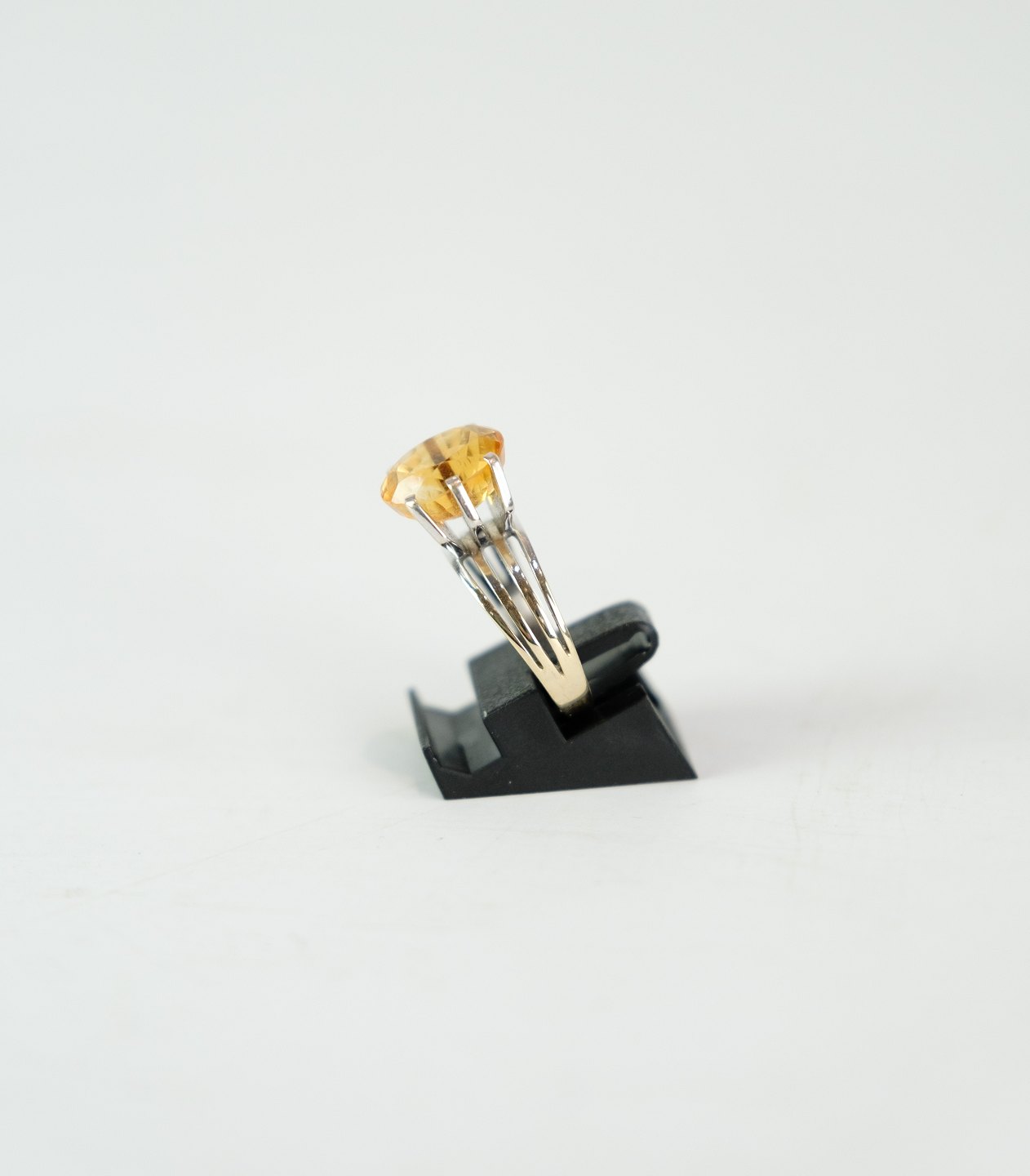 Ring i 14 karat guld, stemplet 585 med en stor oval citrin med orange farve i indfatning af 6 greb.