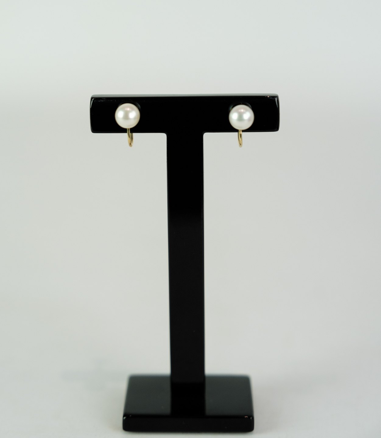 Kulturperle øreringe med skruelås i 14 karat, stemplet 585. Perlen har en flot cream hvid farve.
