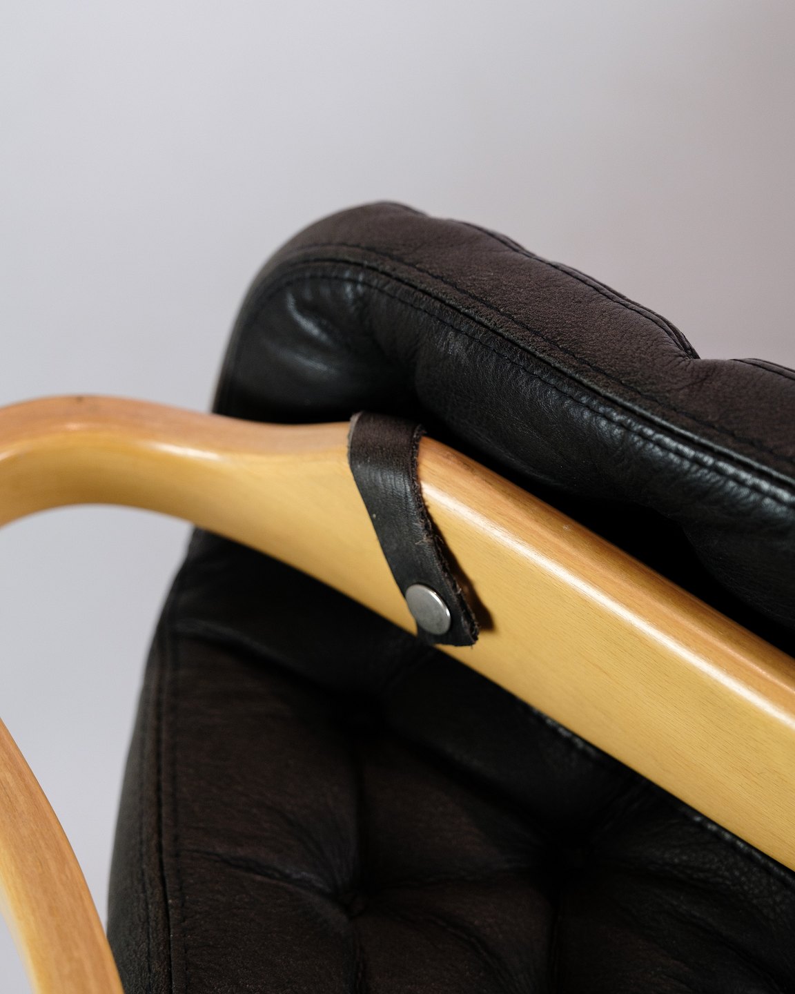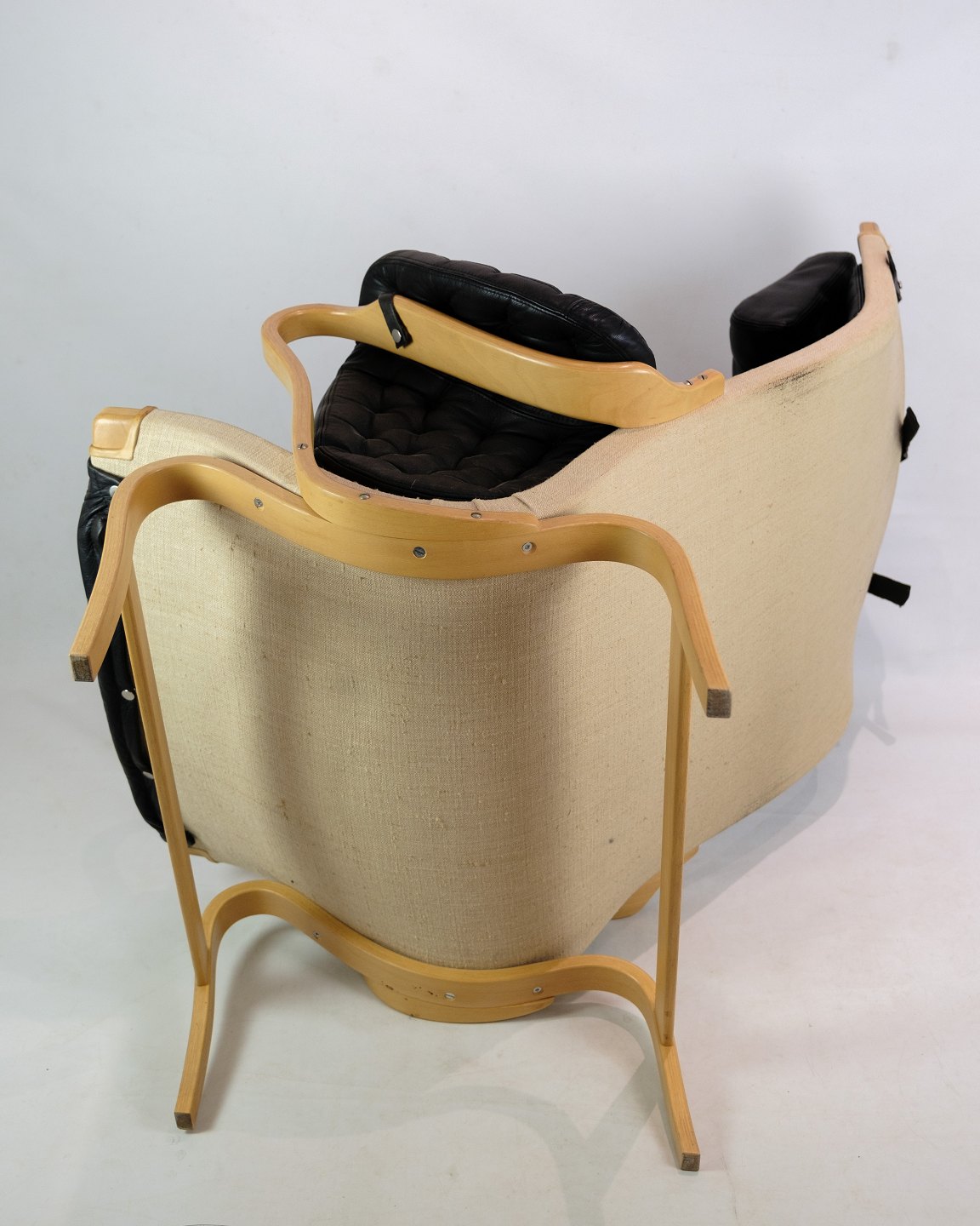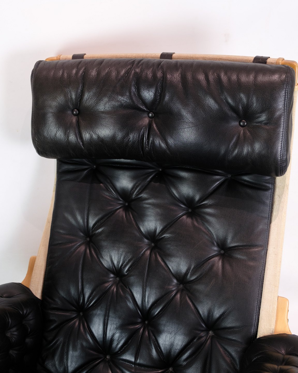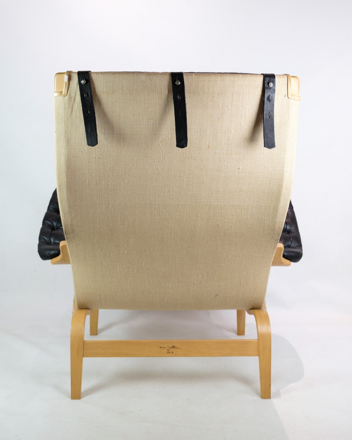 Armchair, Pernilla 69, beech, canvas and black leather, Bruno Mattsson