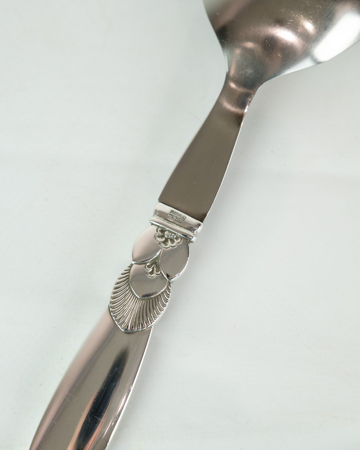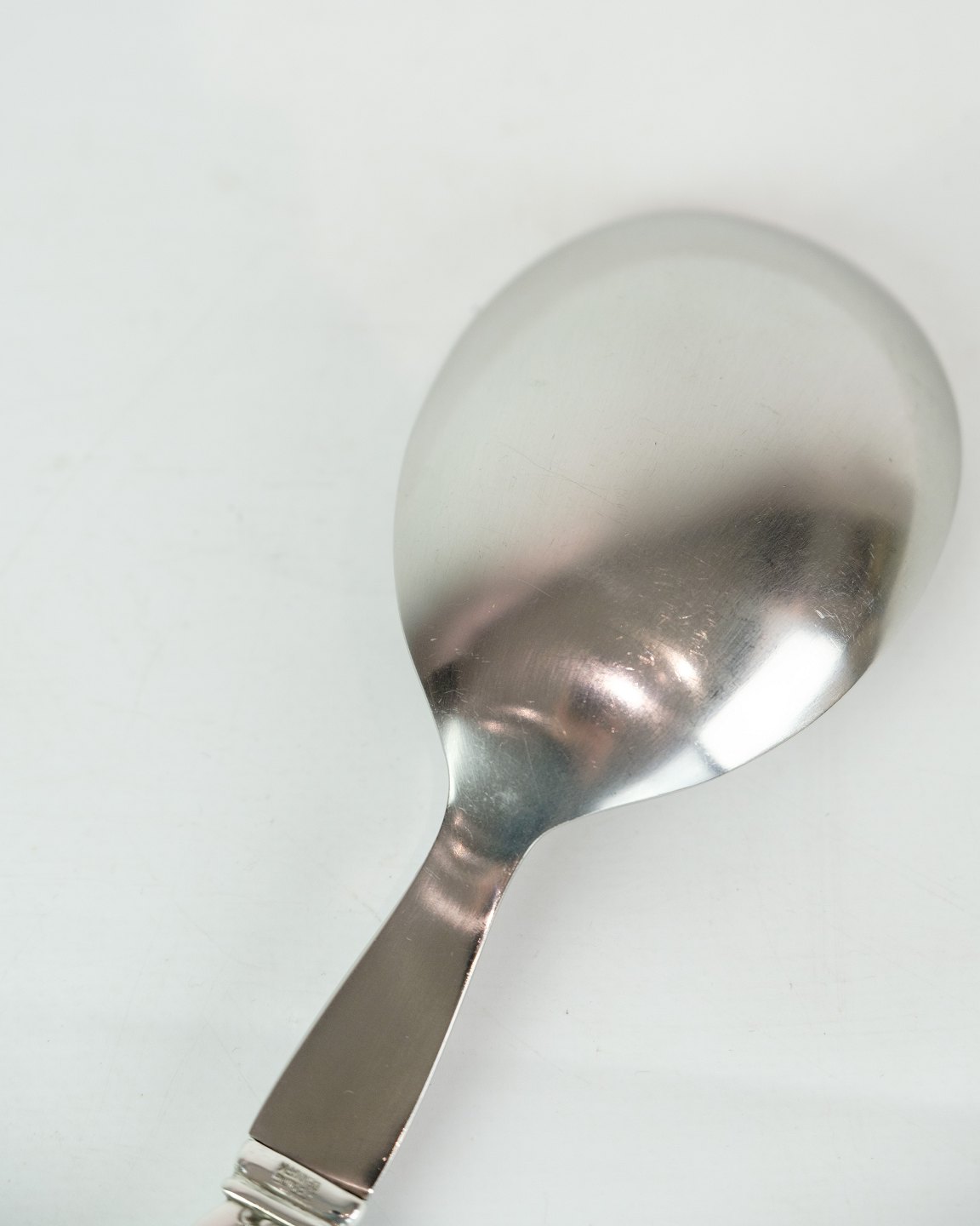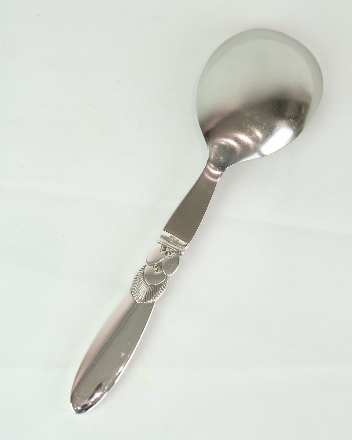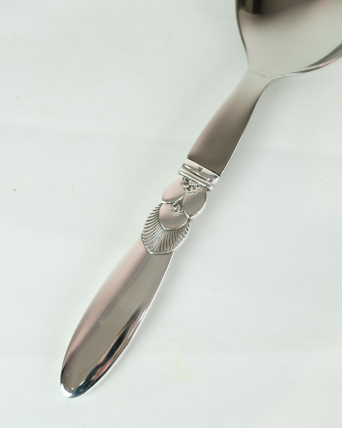 Potato spoon in patterned cactus made by George Jensen in sterling silver.