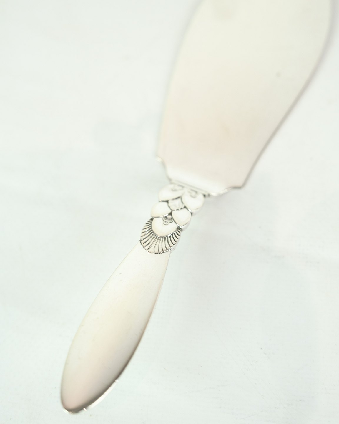 This large Georg Jensen cactus silver serving spade is an elegant and stylish addition to your dining room table. With its unique cactus design and the famous Georg Jensen stamp, this spade will be a conversation piece at any dinner party. Make your next dining event extra special with this beautiful silver cutlery