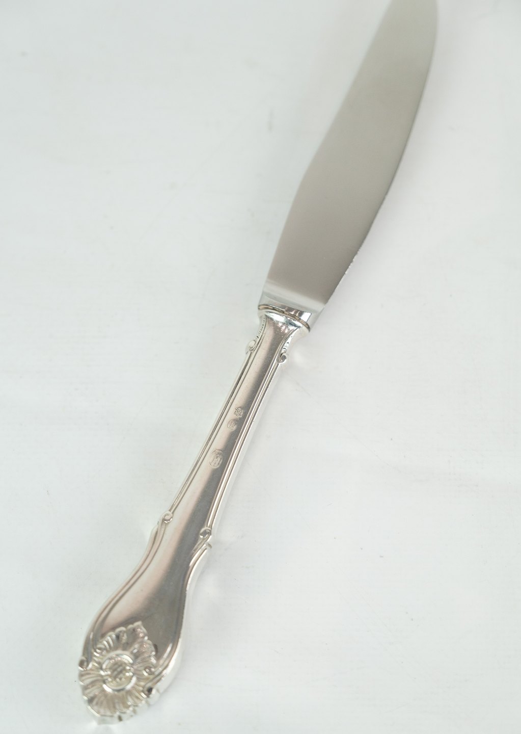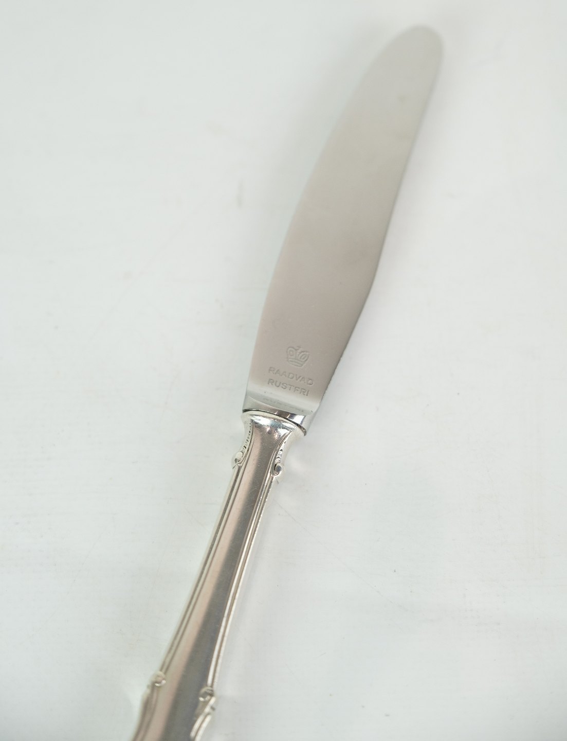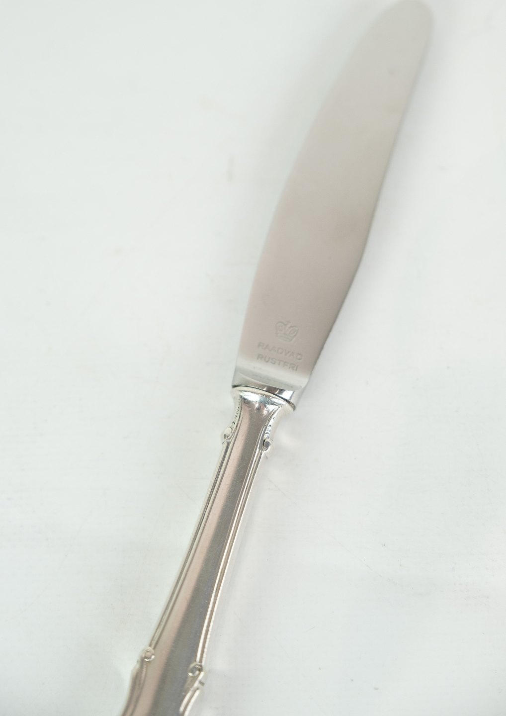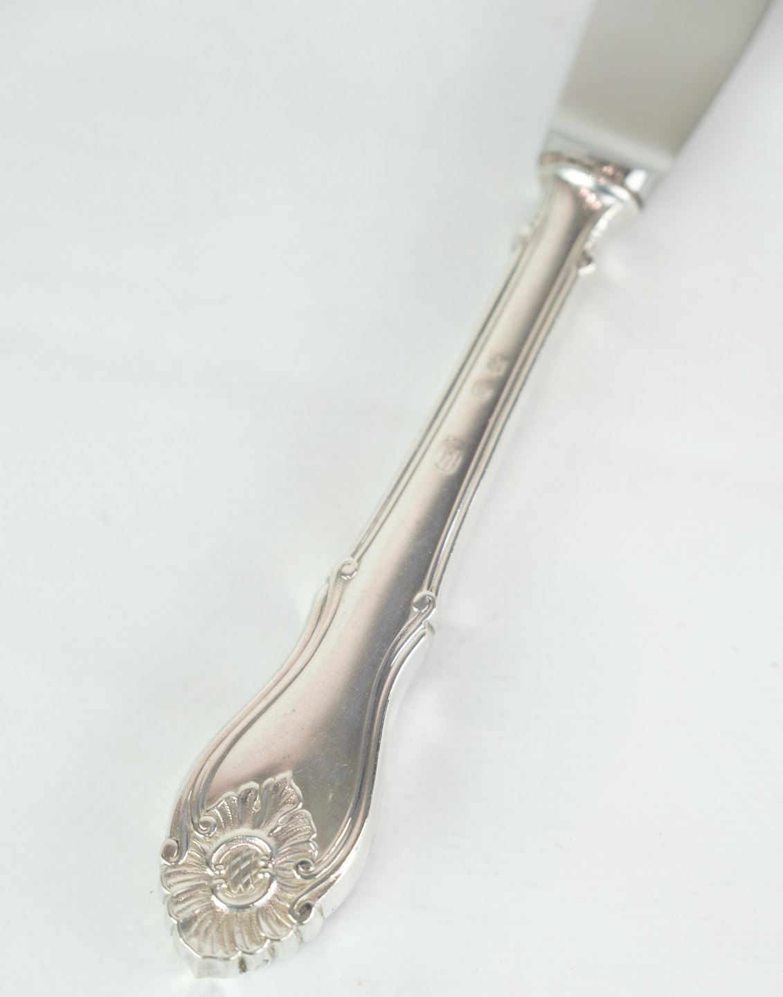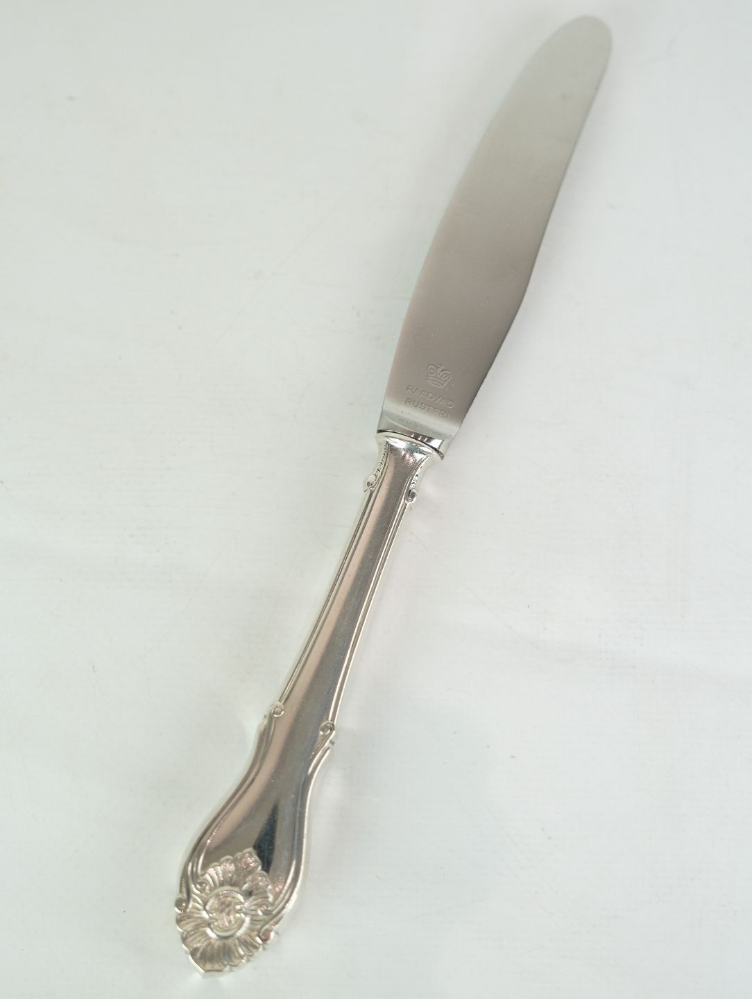 Middagsknive med saksisk mønstret lavet i sølv 830 sterling.
