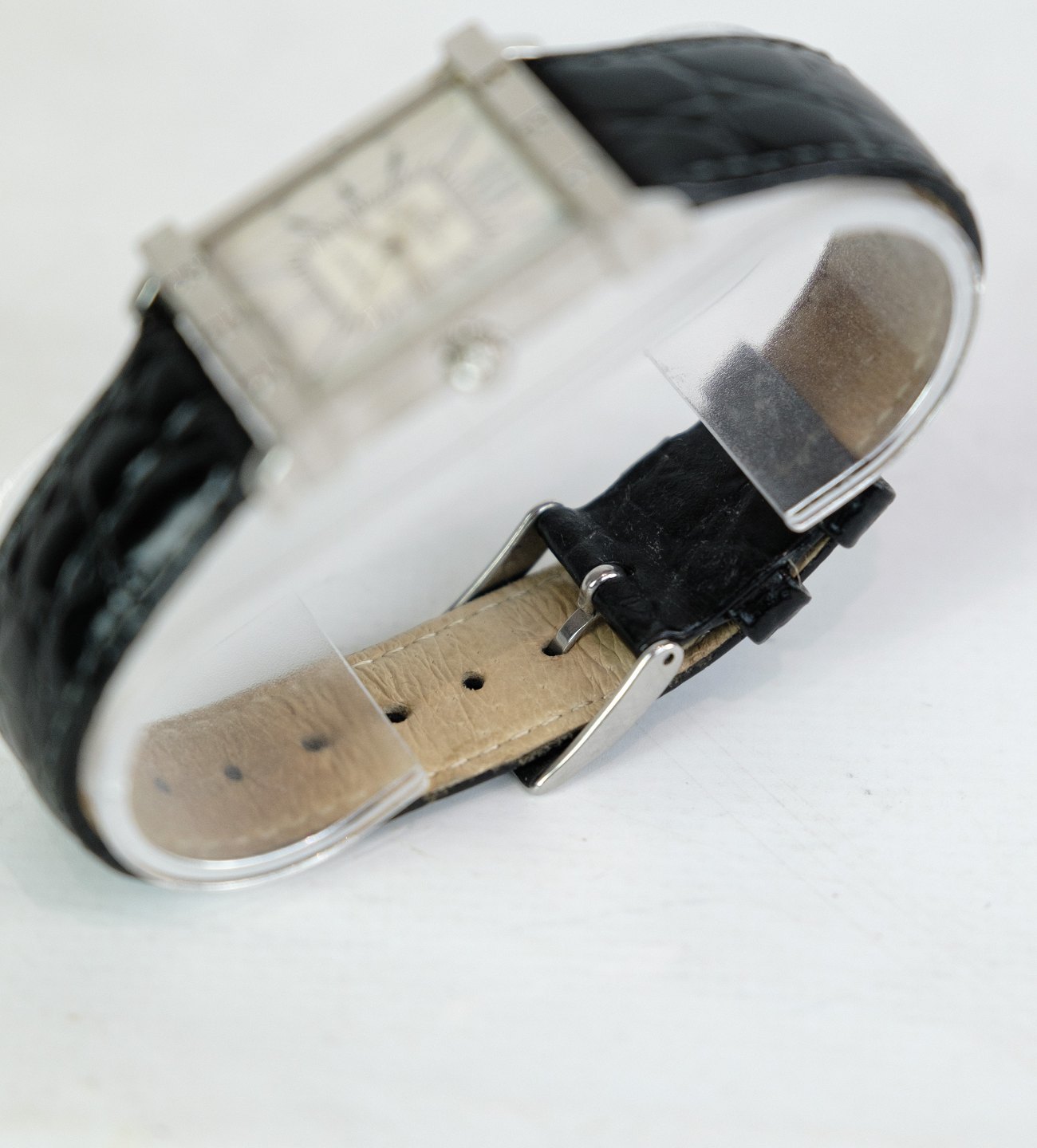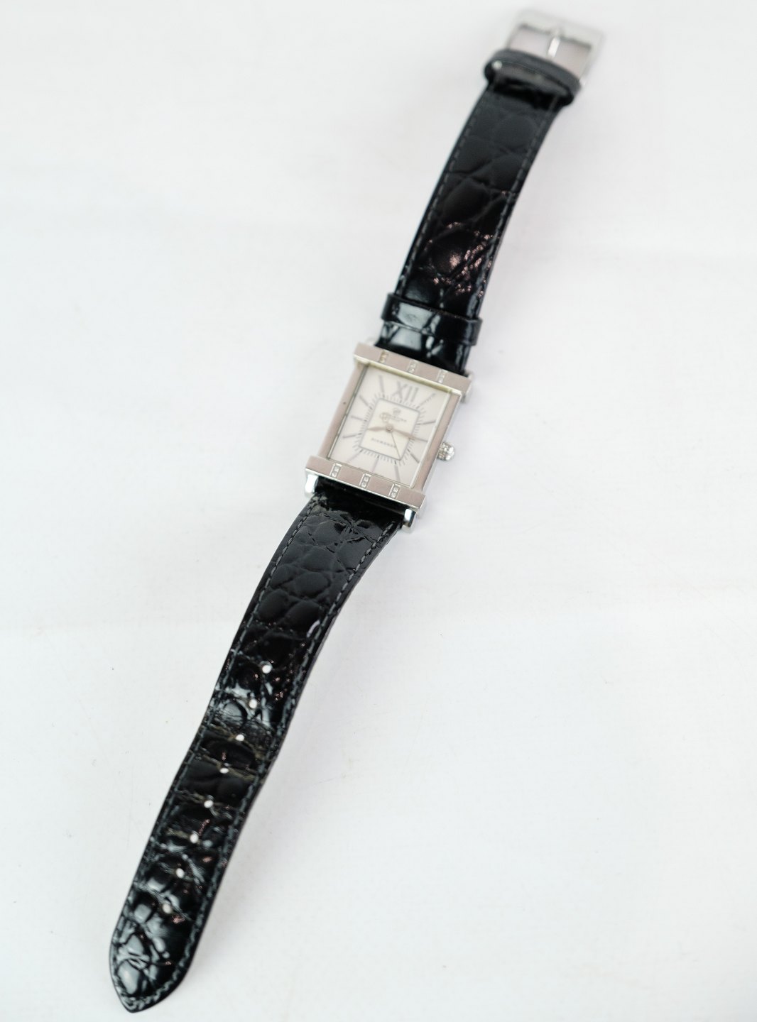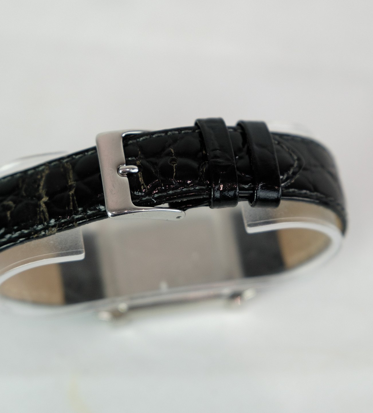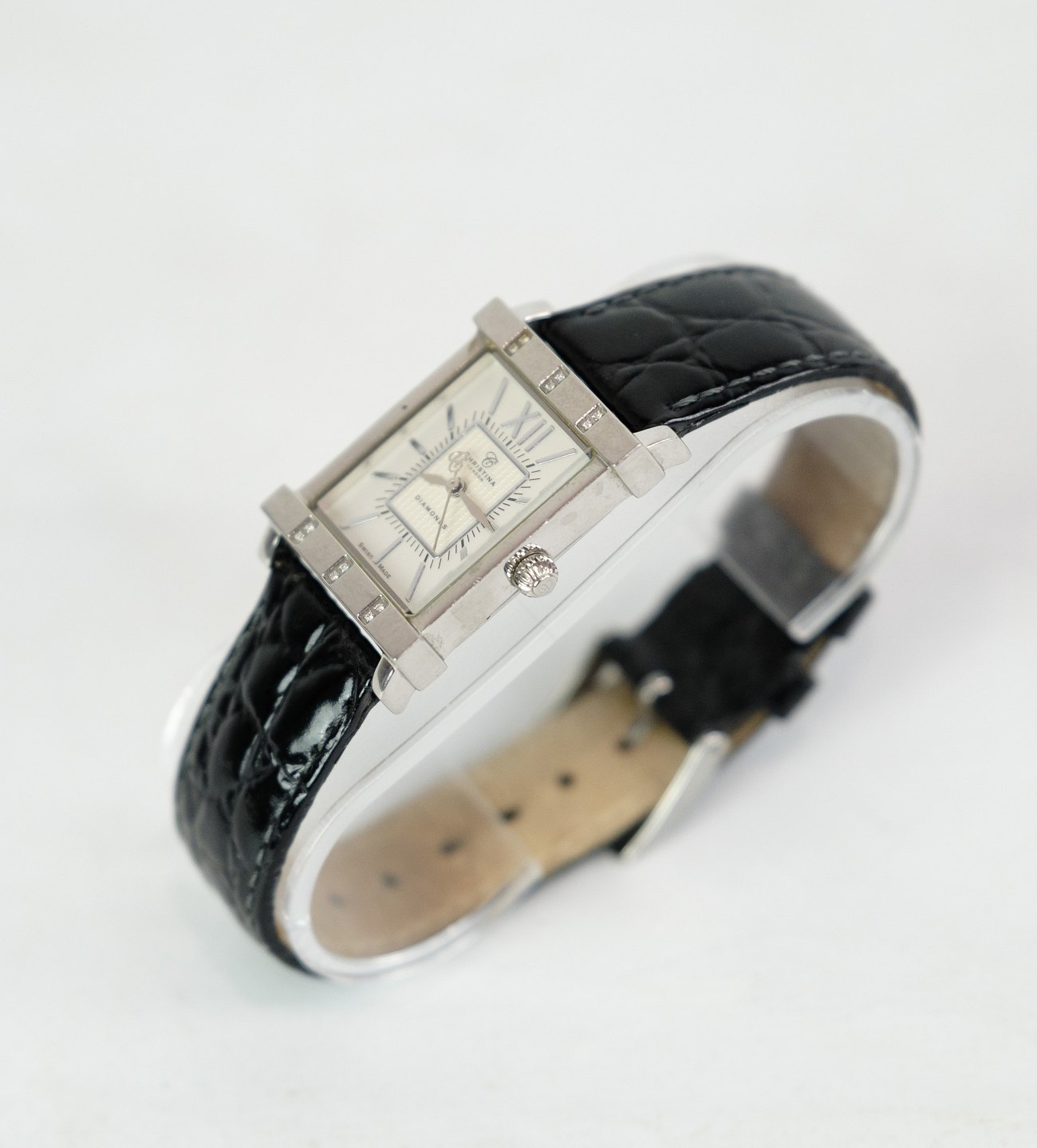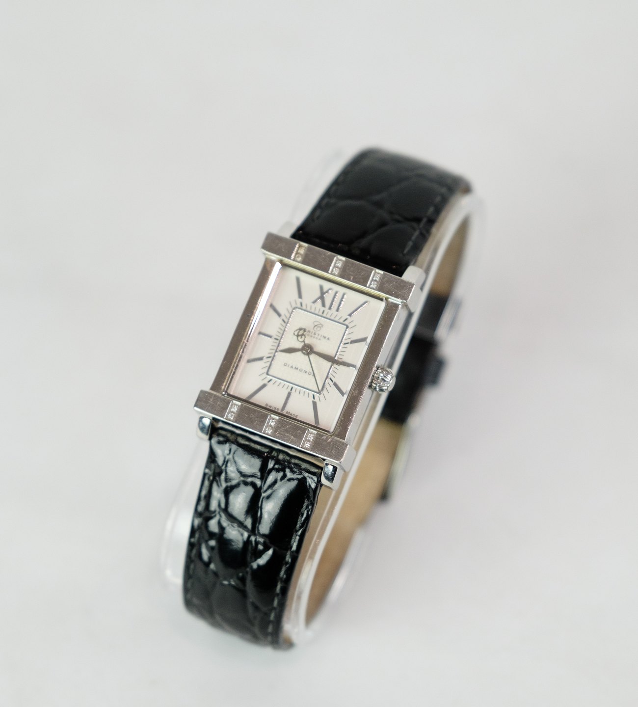 Christina London women's watch black crocodile leather strap with white dial with 0.03 carat diamonds.