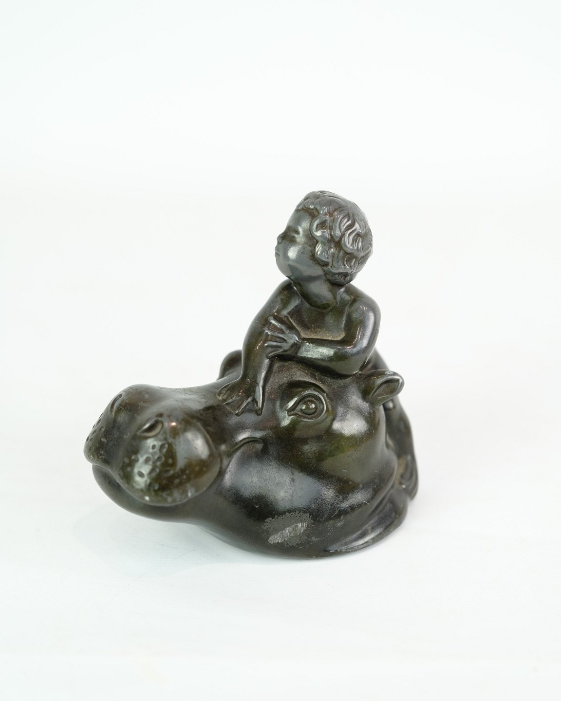 SoldFigure, designed by Just Andersen of Discometal no. D1616 motif of a sea boy on a hippopotamus. In good used condition.