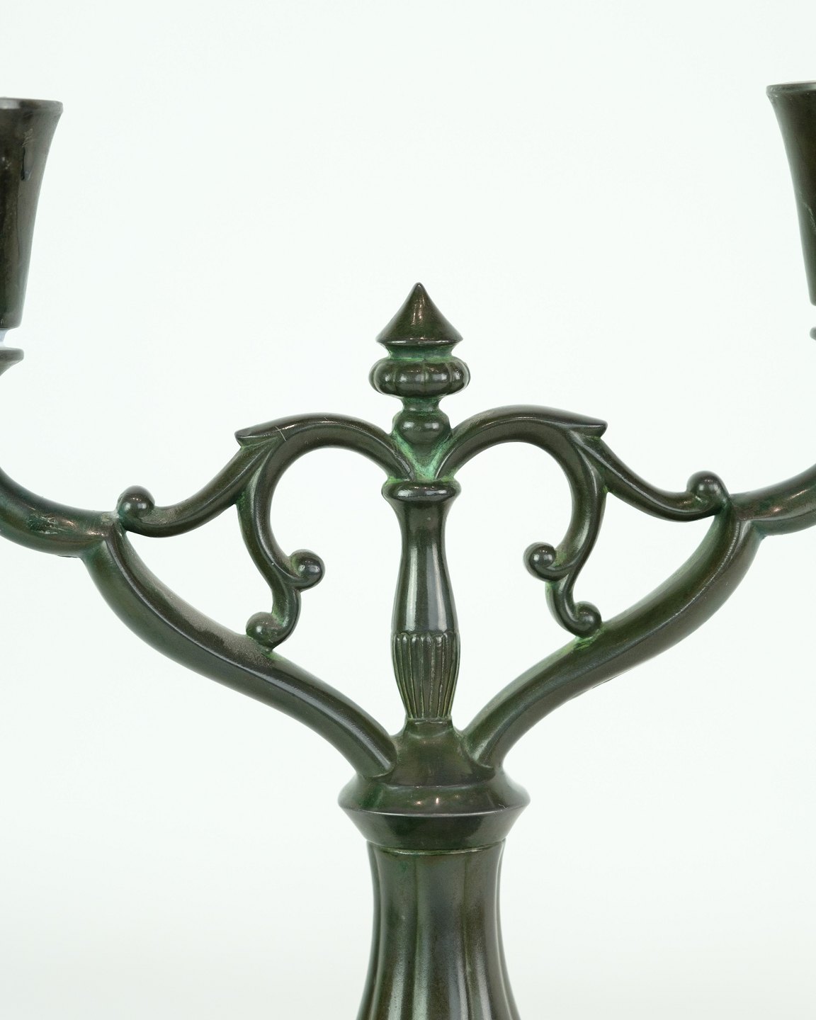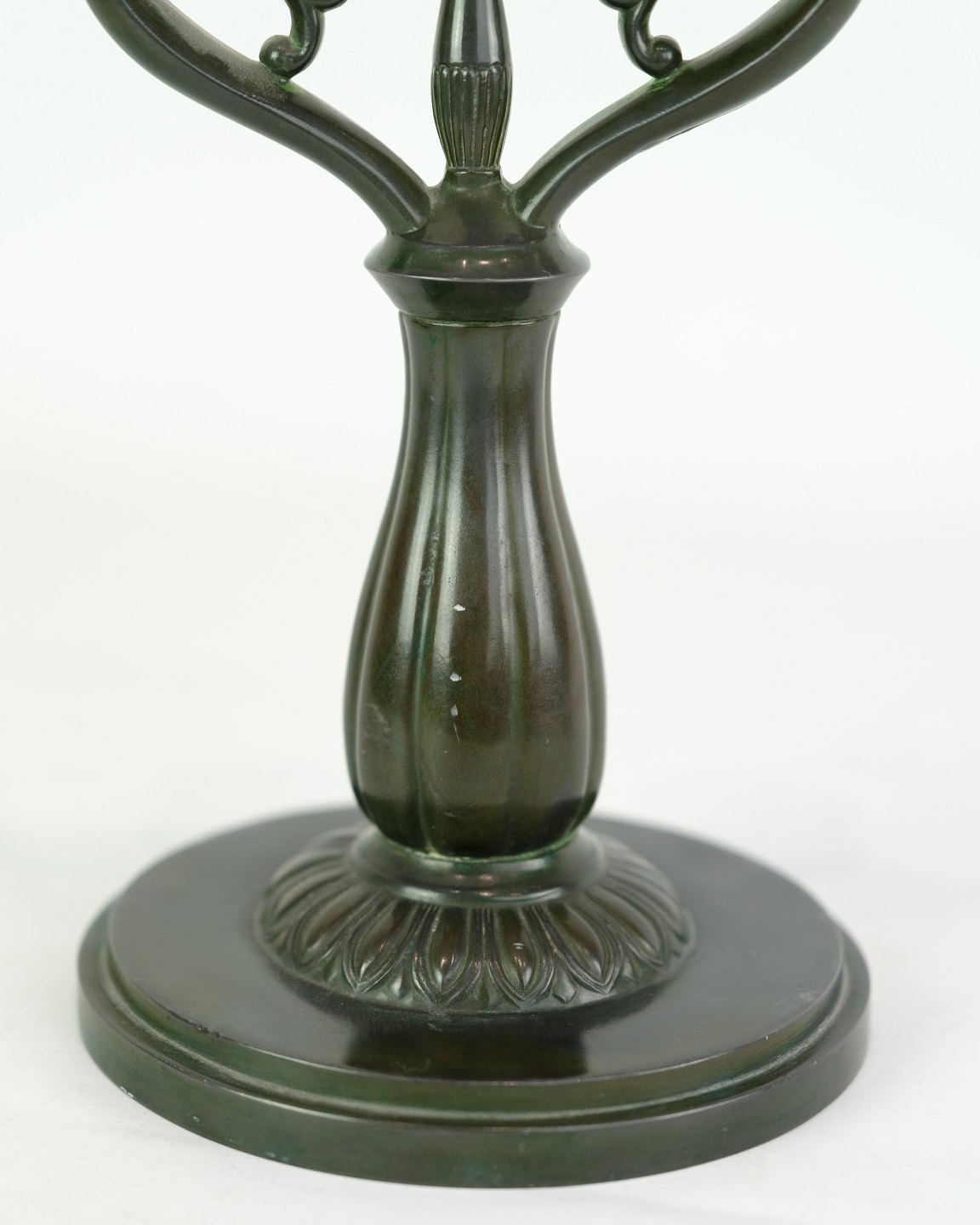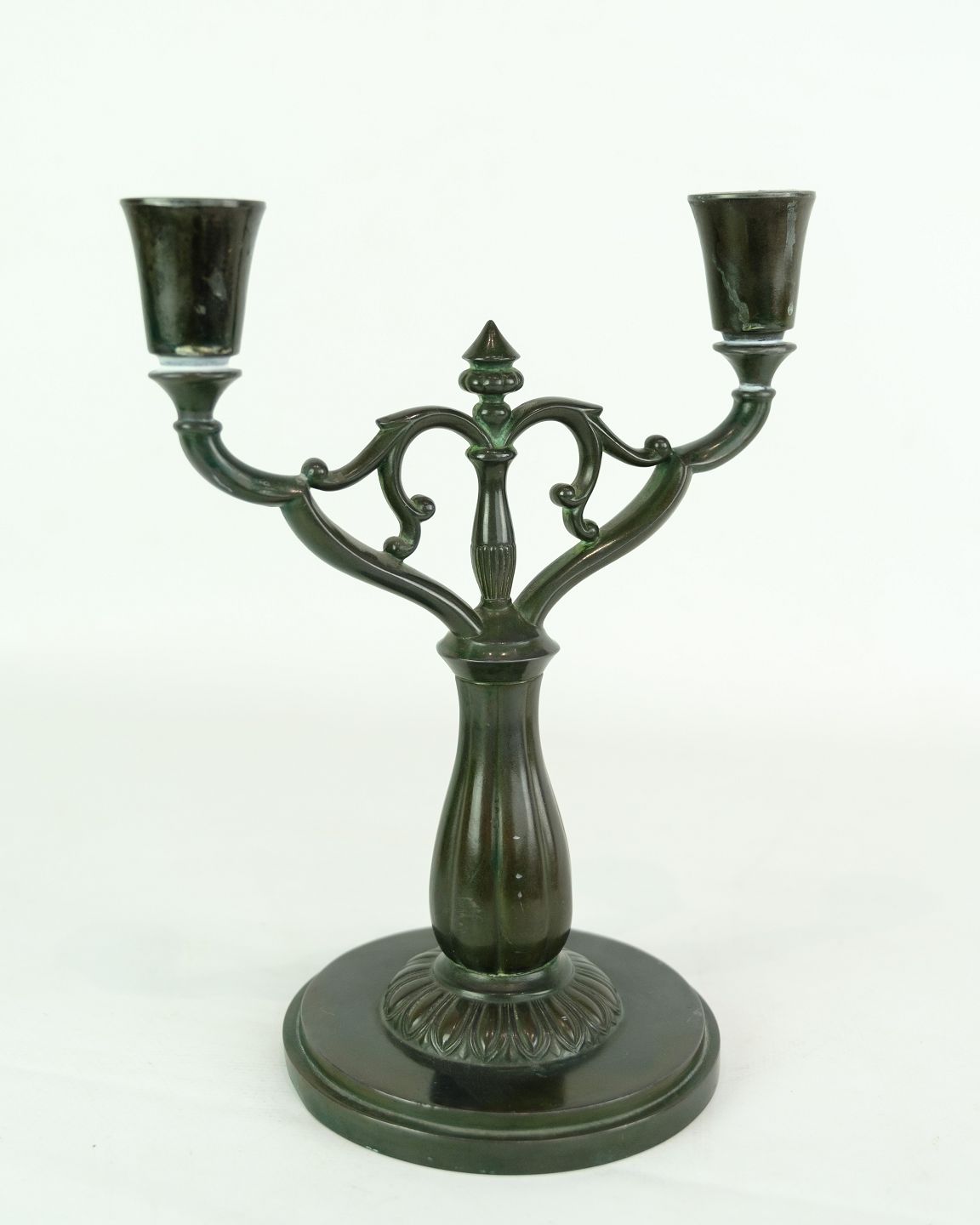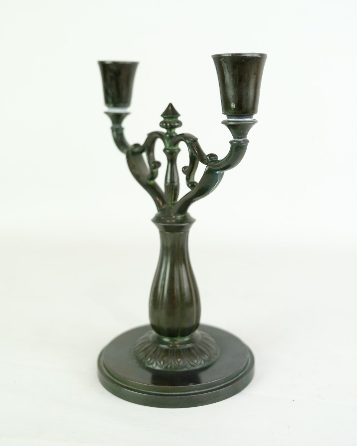 Lysestage af Just Andersen, 2 armet i diskometal med fine dekoration, samt stemlet. Står i meget fin stand.