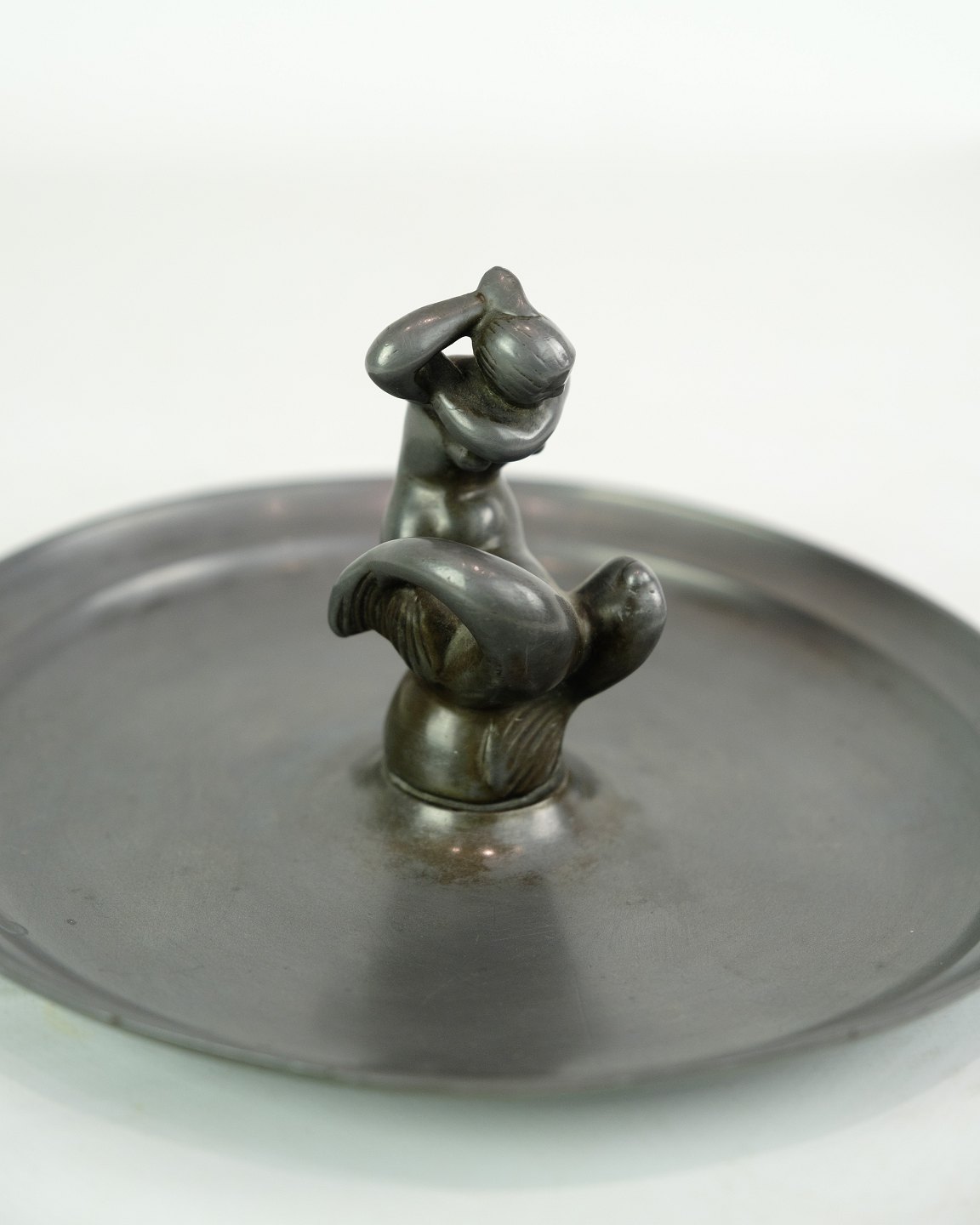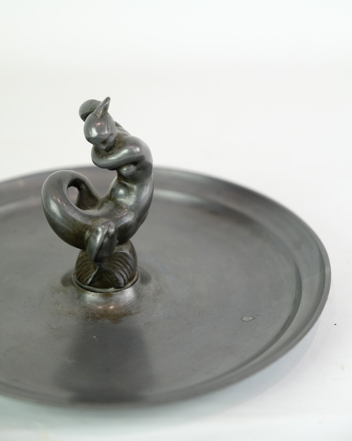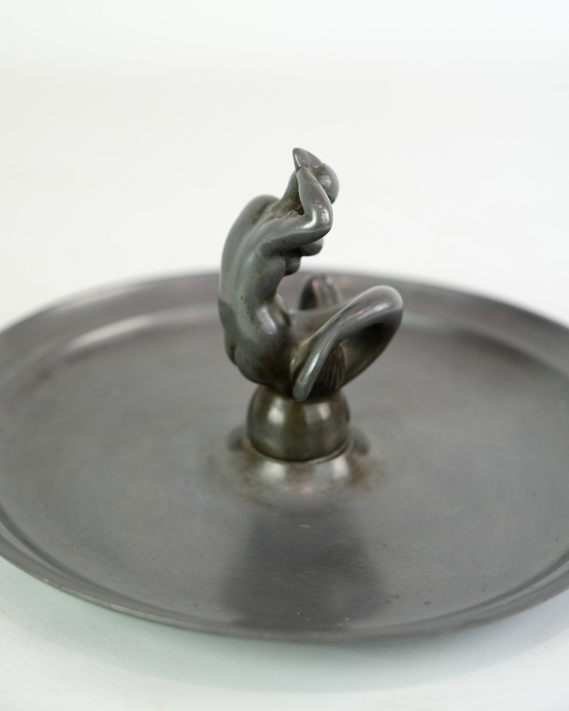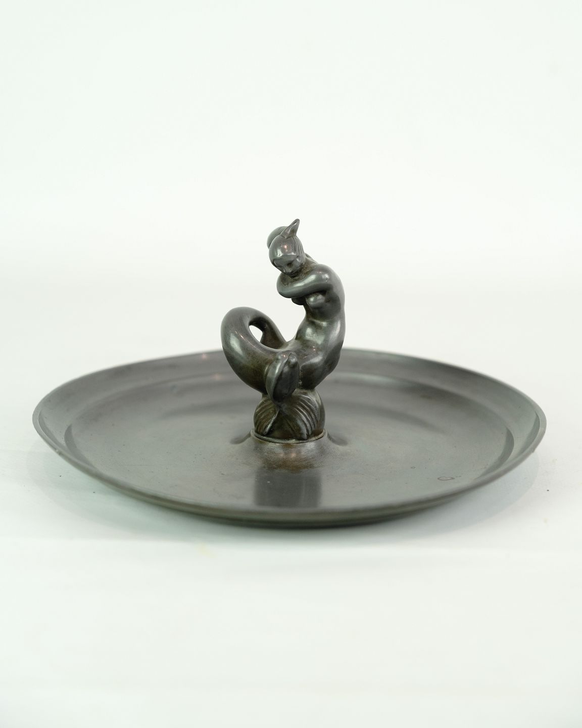 Fad, designet af Just Andersen med motiv af havfruefigur i disco metal fra 1930'erne.. Ofte brugt som nøglefad til skrivebordet eller indgangen.