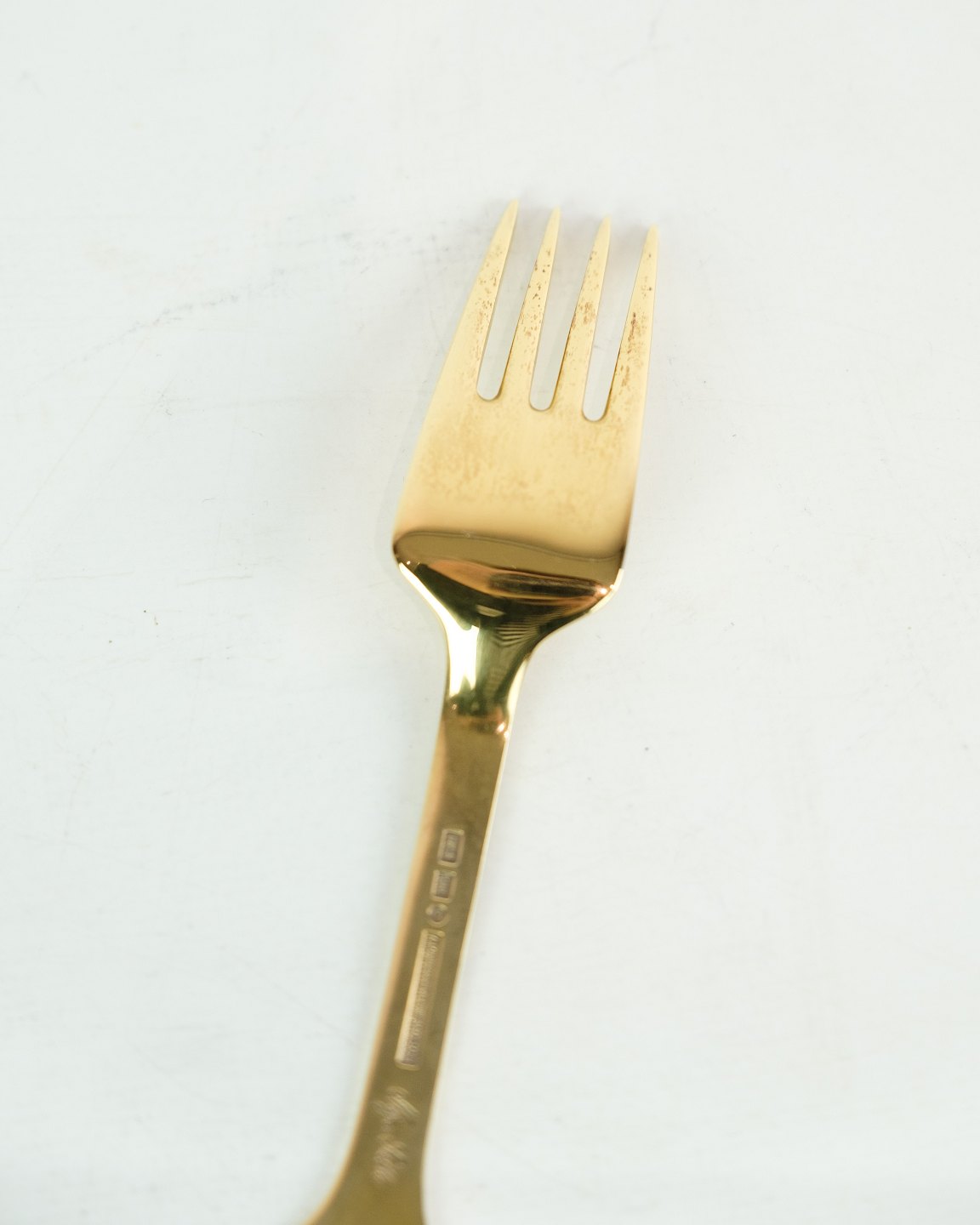 Anton Michelsen julegaffel i 1985 forgyldt sterling sølv er en smuk og eksklusiv gaffel designet af den anerkendte danske maler Naja Salto. Gaffelen er fremstillet af sterling sølv, der er forgyldt med guld for at give det et elegant udseende. Det unikke motiv på gaffelen er Fuglenege, der er inspireret af de skønne danske naturscenerier og skaber en fantastisk kontrast til den glitrende guldoverflade. Gaffelen er et værdifuldt og unikt stykke dansk kunsthåndværk, der vil være en smuk tilføjelse til enhver samling af julegodter.