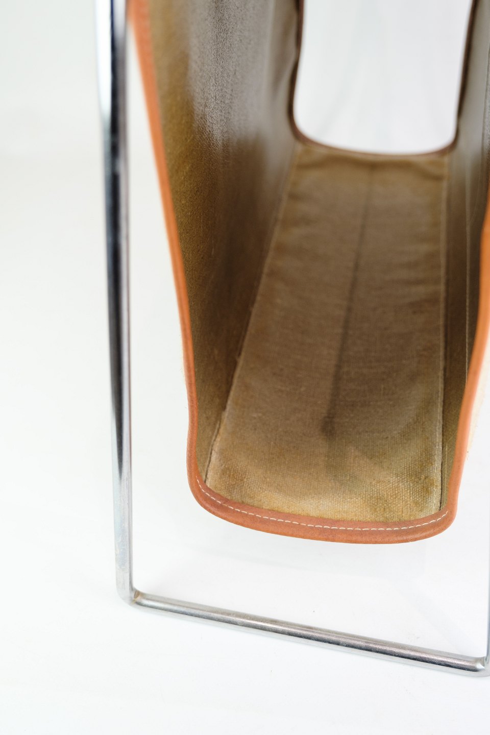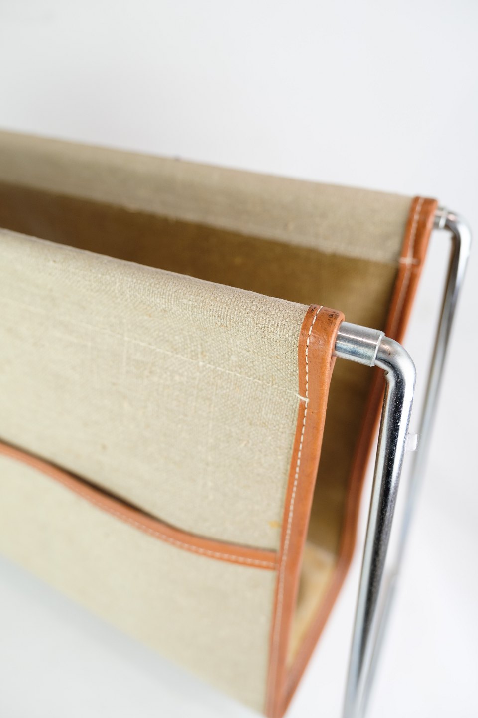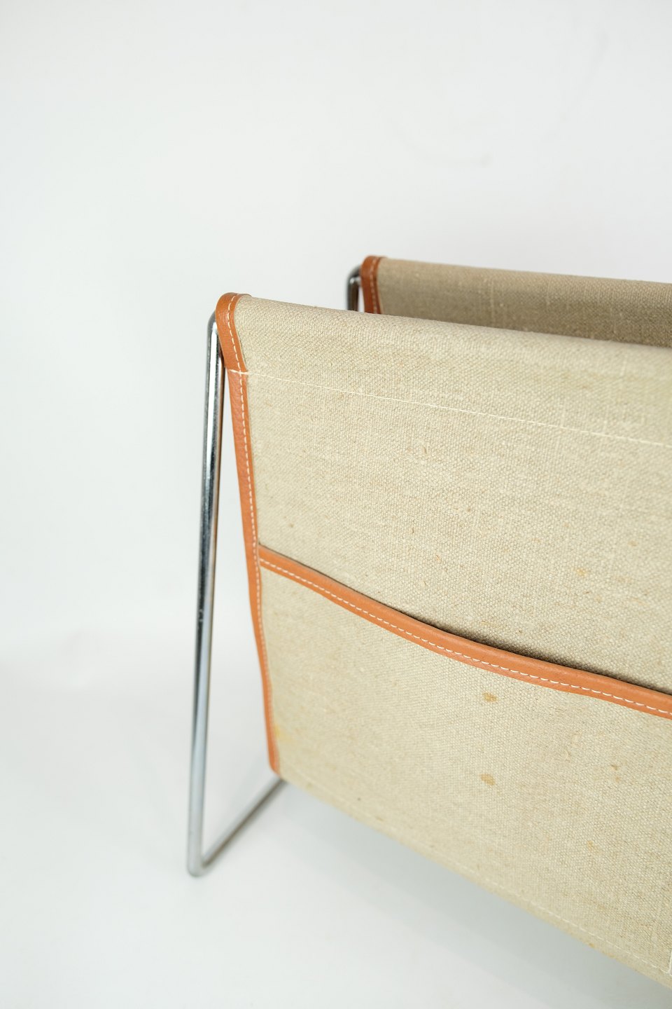 SoldNewspaper holder, designed by Verner Panton (1926-1998) made of steel and canvas with two pockets from around the 1970s. The canvas newspaper holder is a stylish and practical solution for storing newspapers and magazines. It is made of strong and durable canvas, which gives a modern and unique touch to your home.