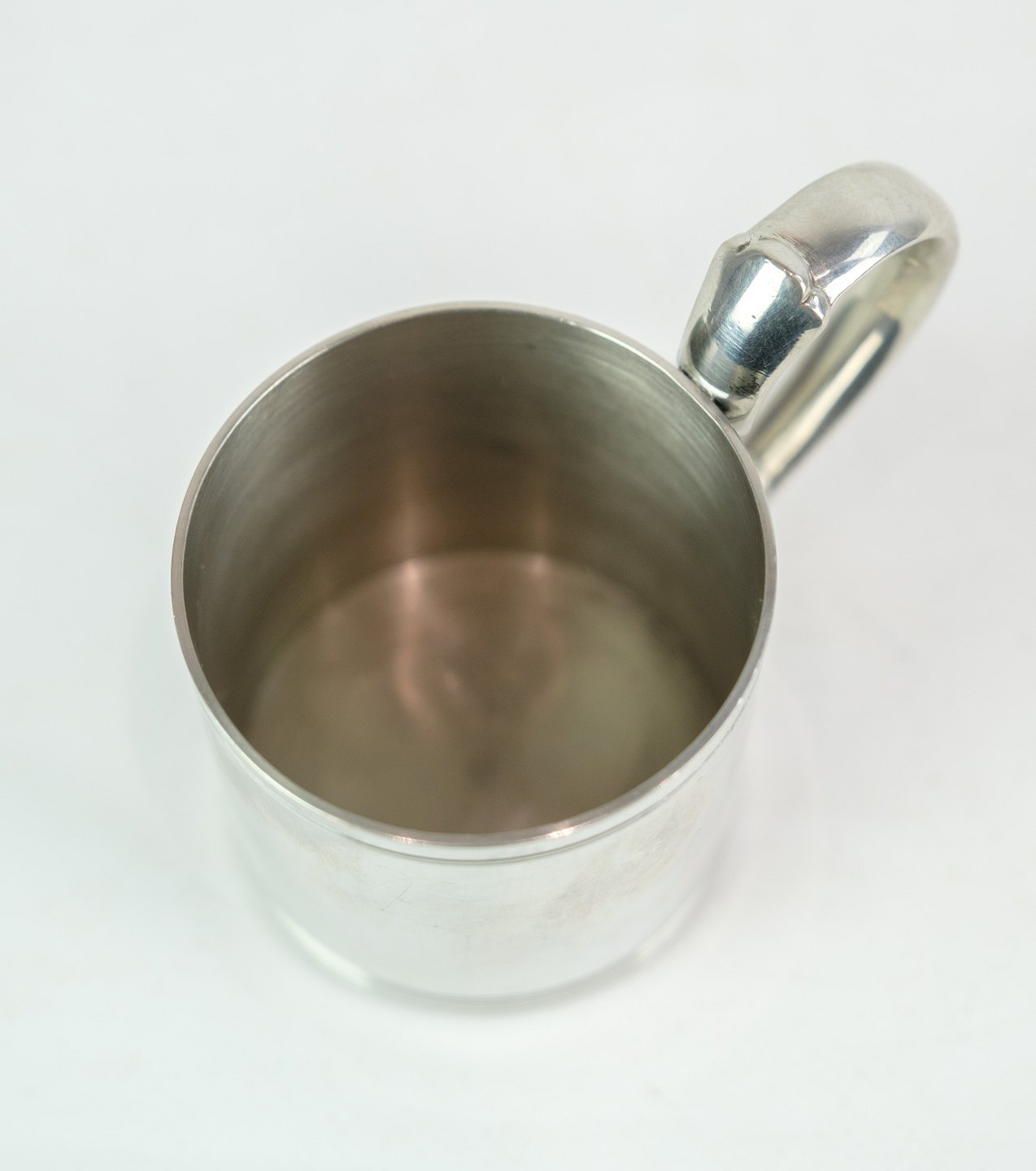 Just Andersen børnekop i tin med modelnummer 289. Dette er en unik og holdbar kop, der er designet specielt til børns behov. Kopens tinmateriale gør den praktisk og let at rengøre, mens det attraktive design vil glæde børns øjne. En perfekt gave til enhver ung og modig kaffe- eller teentusiast