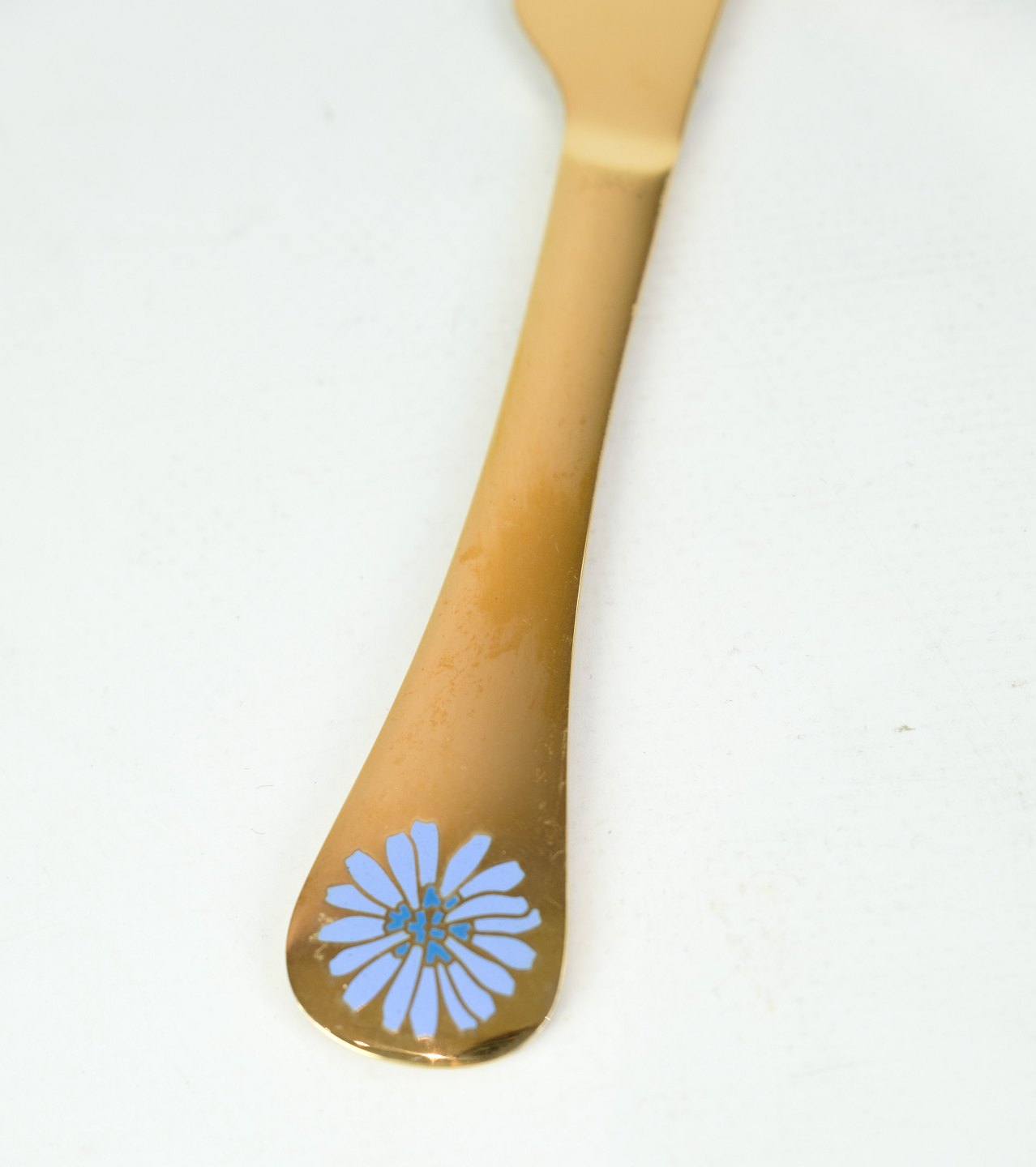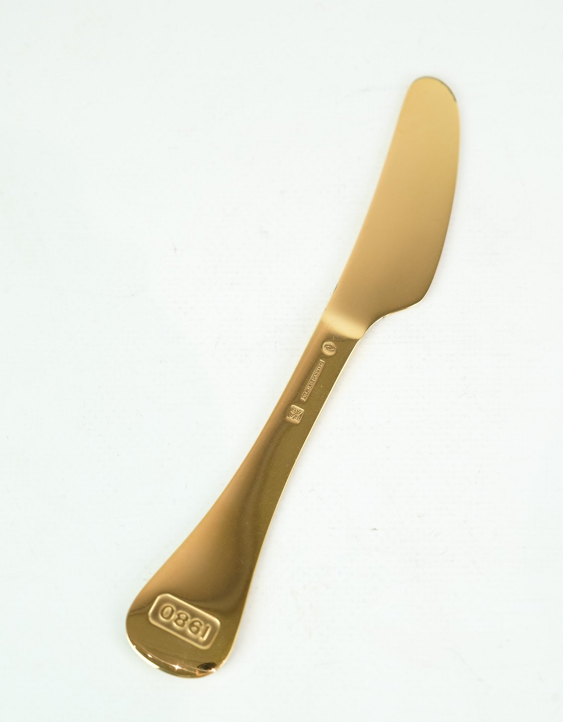 Georg Jensen Annual Knife 1980 Gilt Silver "Chickory" is a beautiful and elegant knife that is part of Georg Jensen's Annual Spoon series. The knife has a gilded silver blade with a unique pattern inspired by the chicory plant (Cichorium intybus). This gives the knife a sophisticated and natural look that will be a beautiful addition to any table. With its fine quality and detailed finish, the Georg Jensen Year Knife 1980 Gilt Silver "Chicory" is a luxurious choice that will be enjoyed and admired by all who see it.
