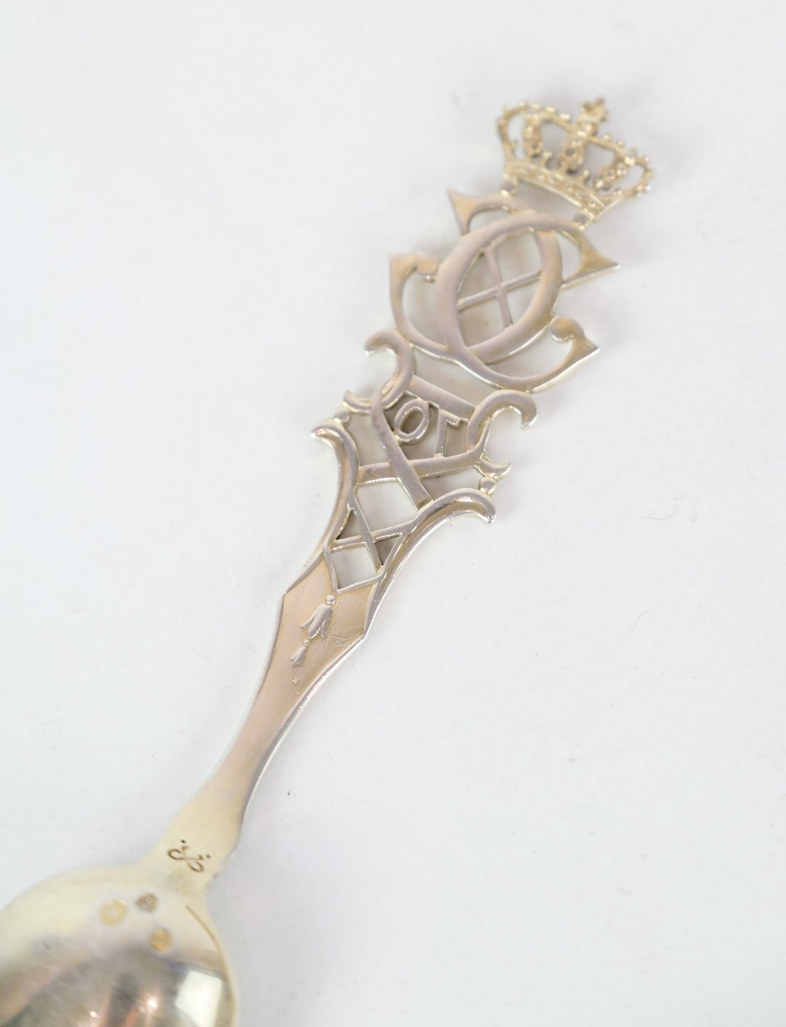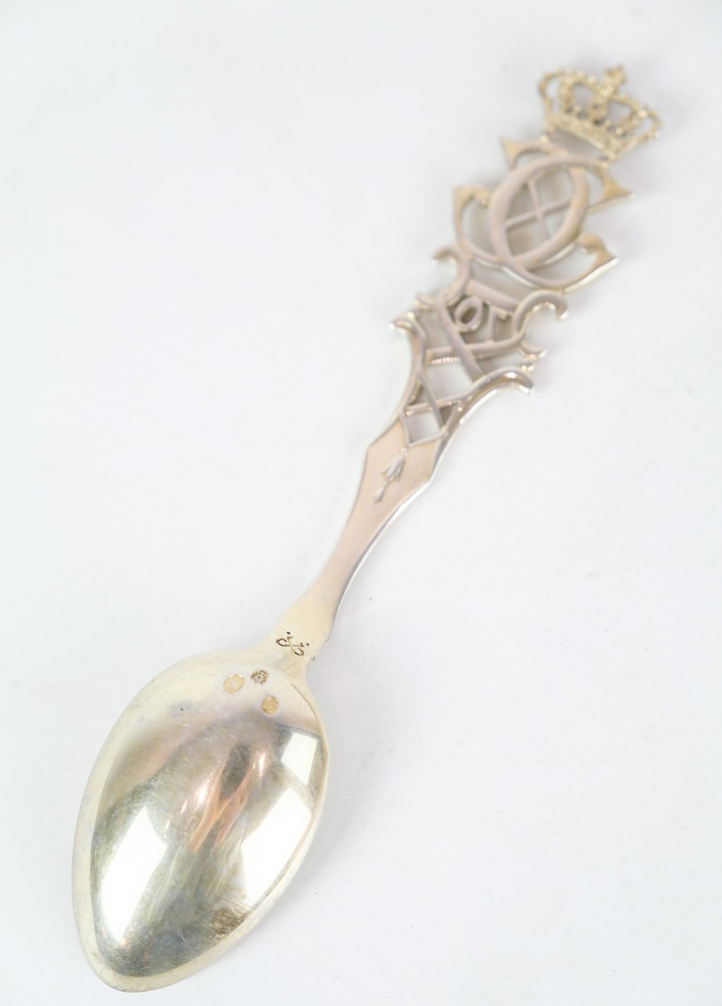 Jubilæumsske af A. Michelsen i forgyldt sølv, designet af Jens Ingwersen i anledning af Christian X 70's Fødselsdag, 1940