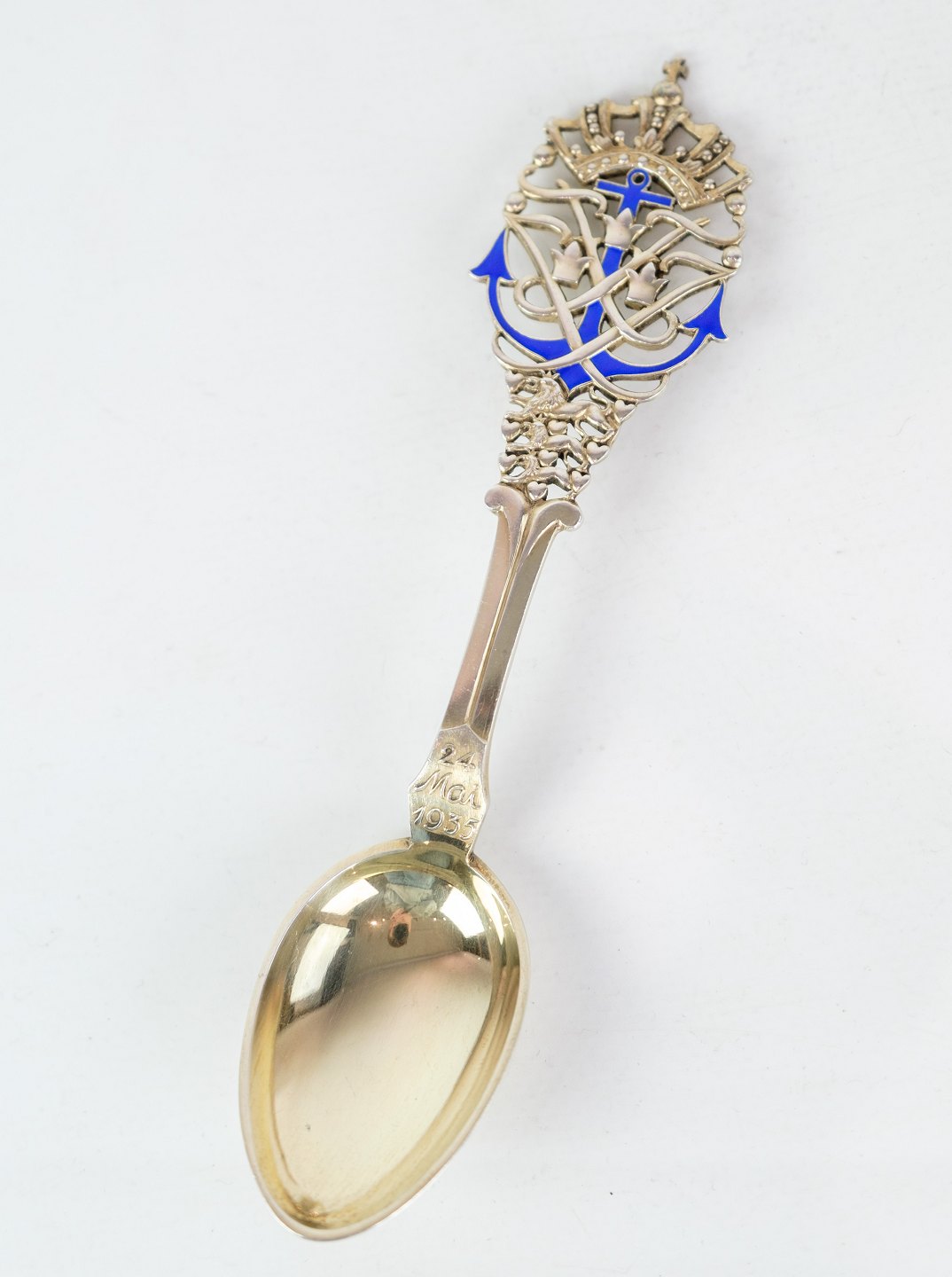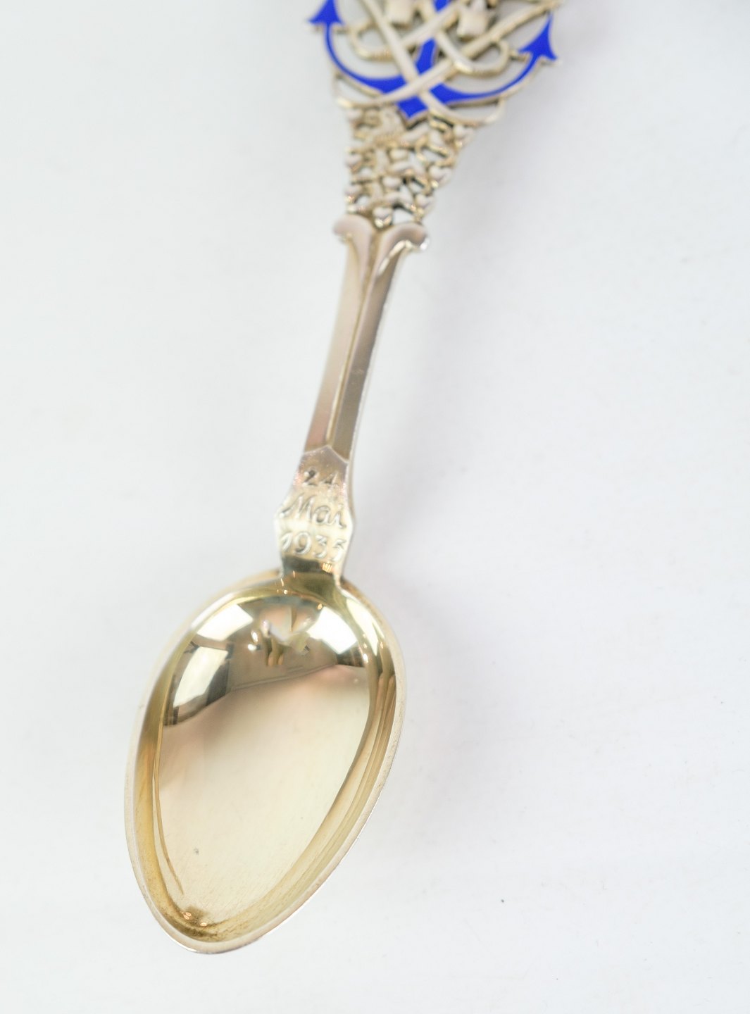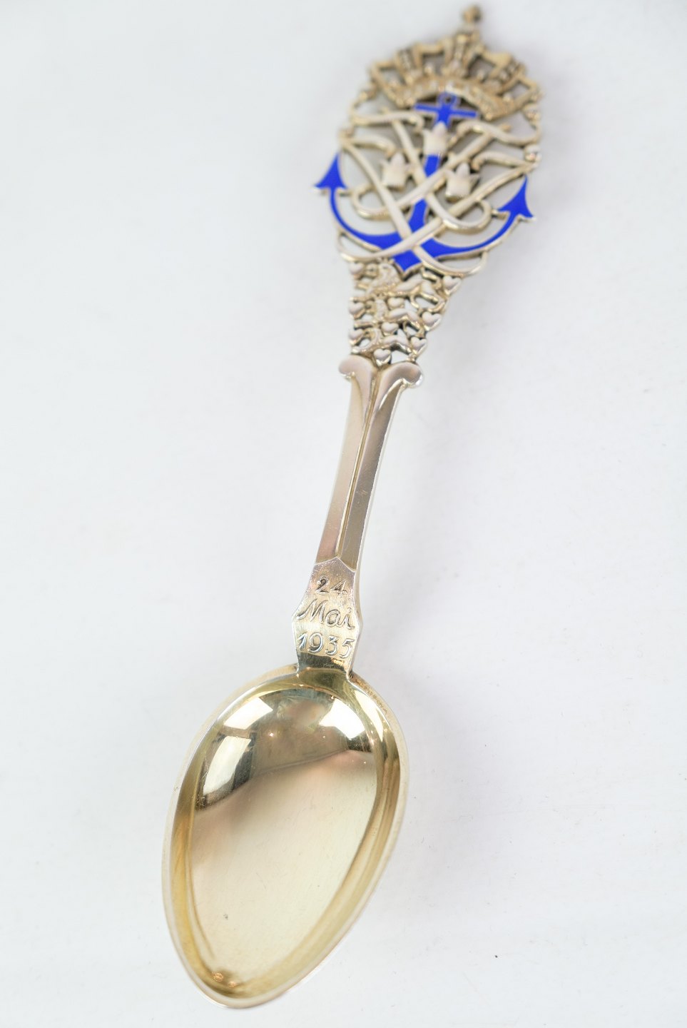 Jubilæumsske fra A. Michelsen i sølv forgyldt i anledning af Kronprins Frederik og kronprinsesse Ingrids bryllup d. 24 Maj 1935.