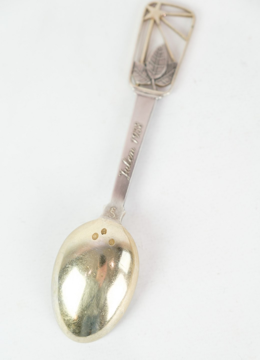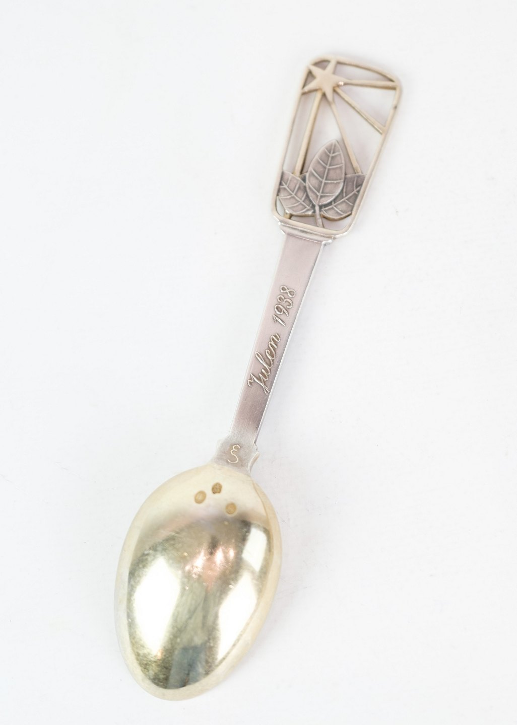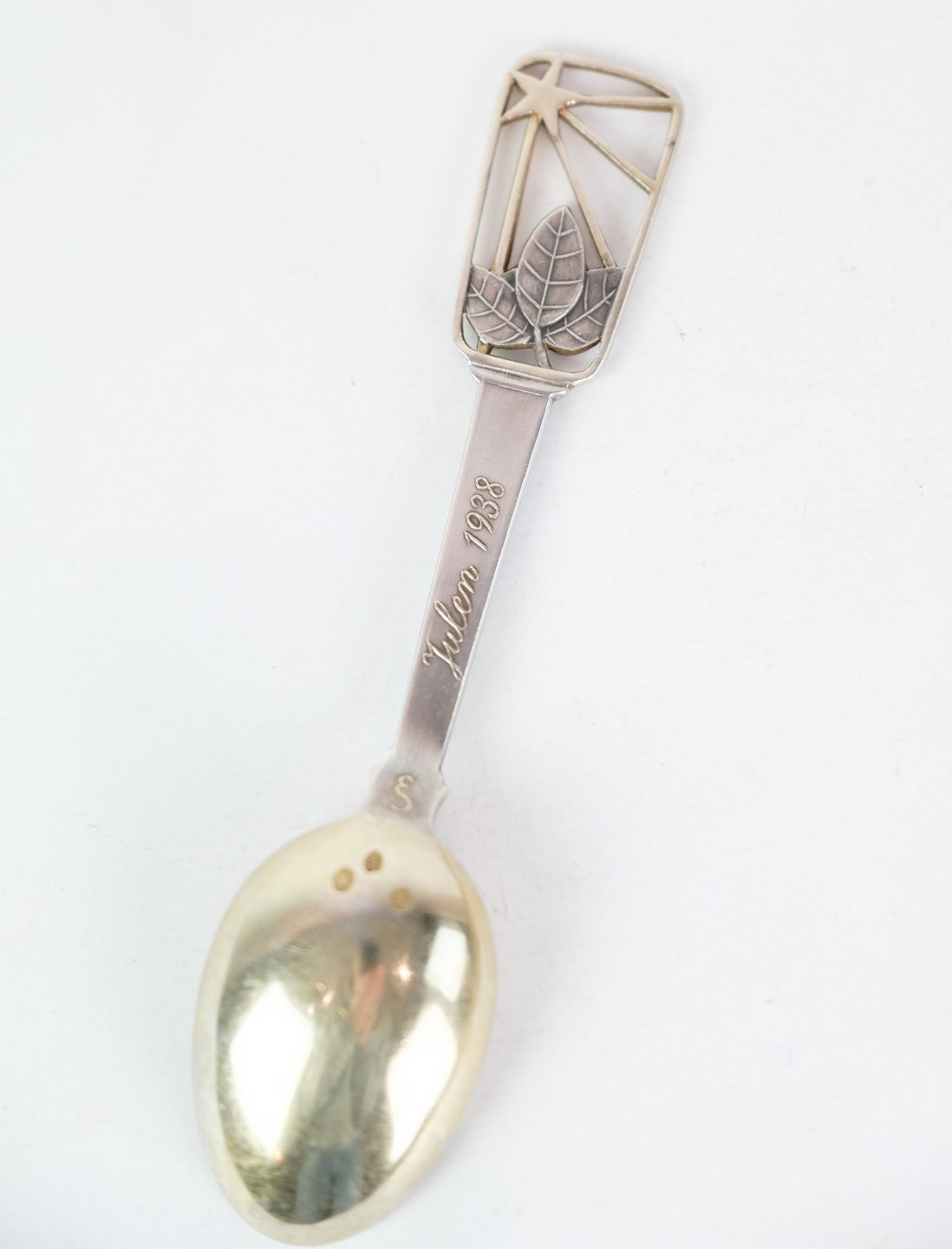 Mindeske fra julen 1938 med smuk dekorativt mønster af tretårnet sølv. Står i fin stand.