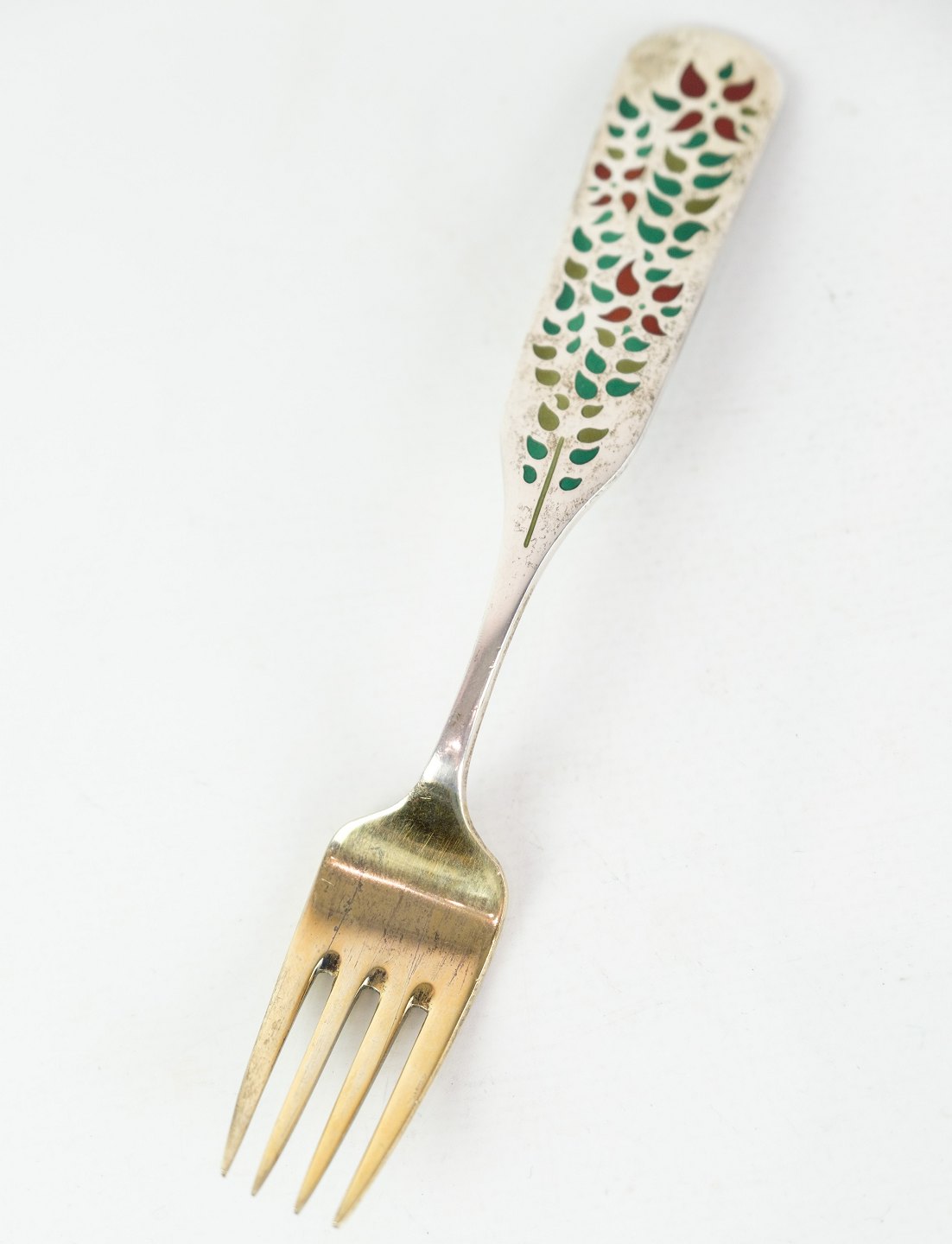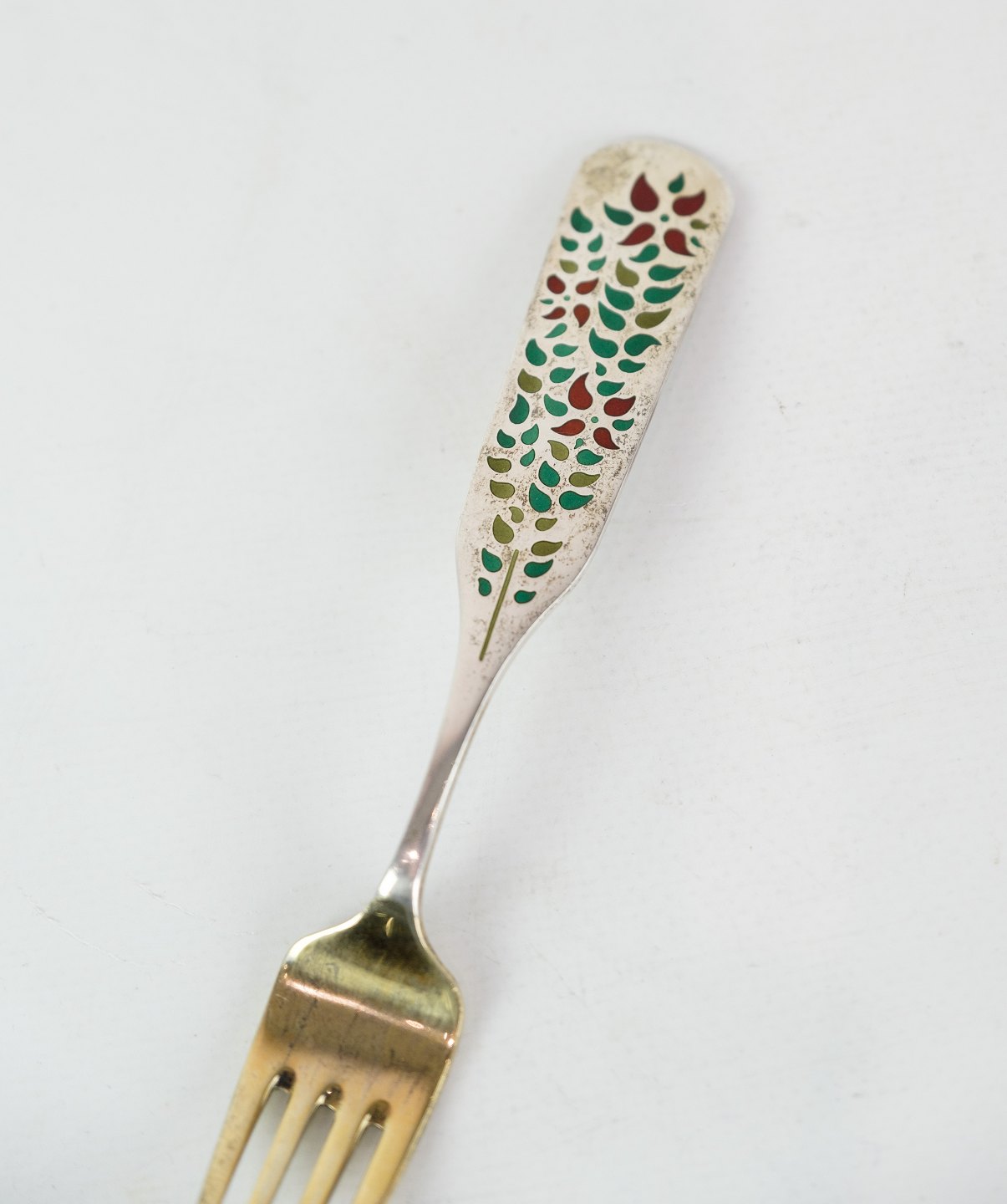 Anton Michelsen gilded sterling silver Christmas fork from 1955 is a beautiful and exclusive piece of silverware, designed by Palle Pio. The fork is made of high quality sterling silver and is gold plated to give it a shiny finish. The elegant design with the fine details make this Christmas fork a must-have for your Christmas table collection. Use it to eat the Christmas meal with style and elegance, or let it be part of your Christmas decoration. Whatever you choose, the 1955 Anton Michelsen Gilt Sterling Silver Christmas Fork will be a valuable and unique addition to your home.