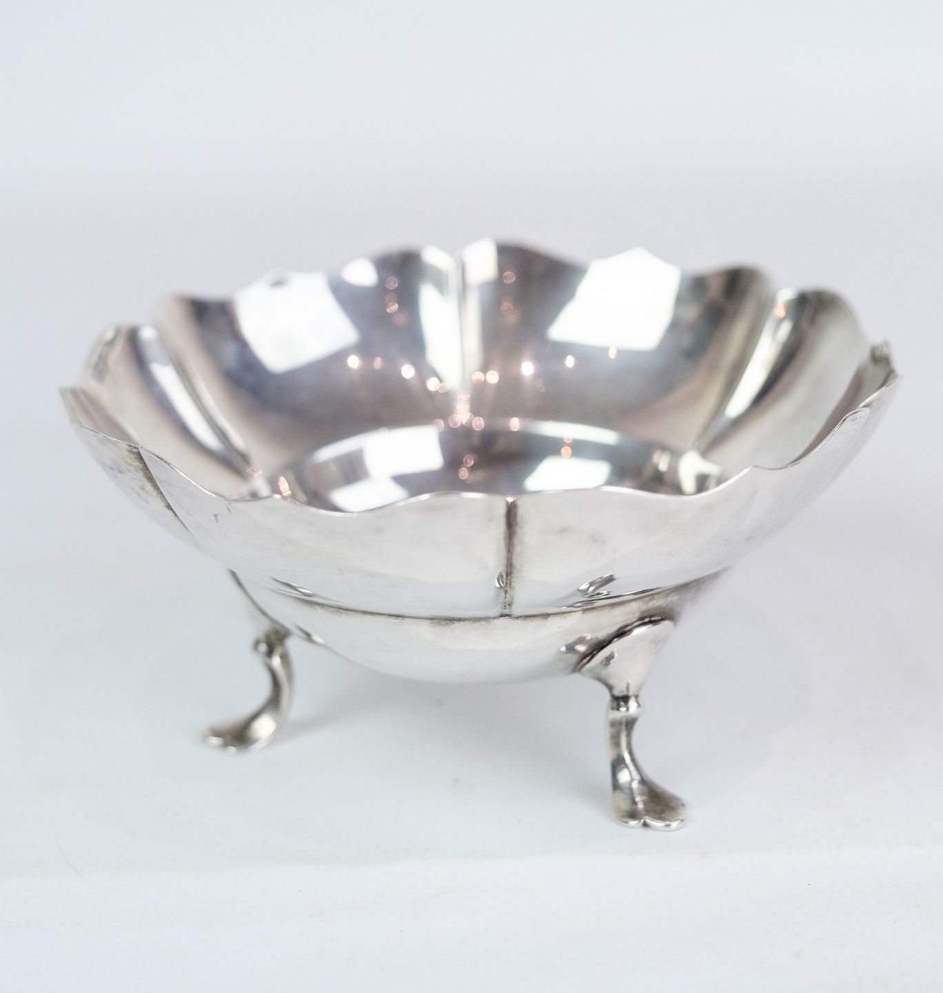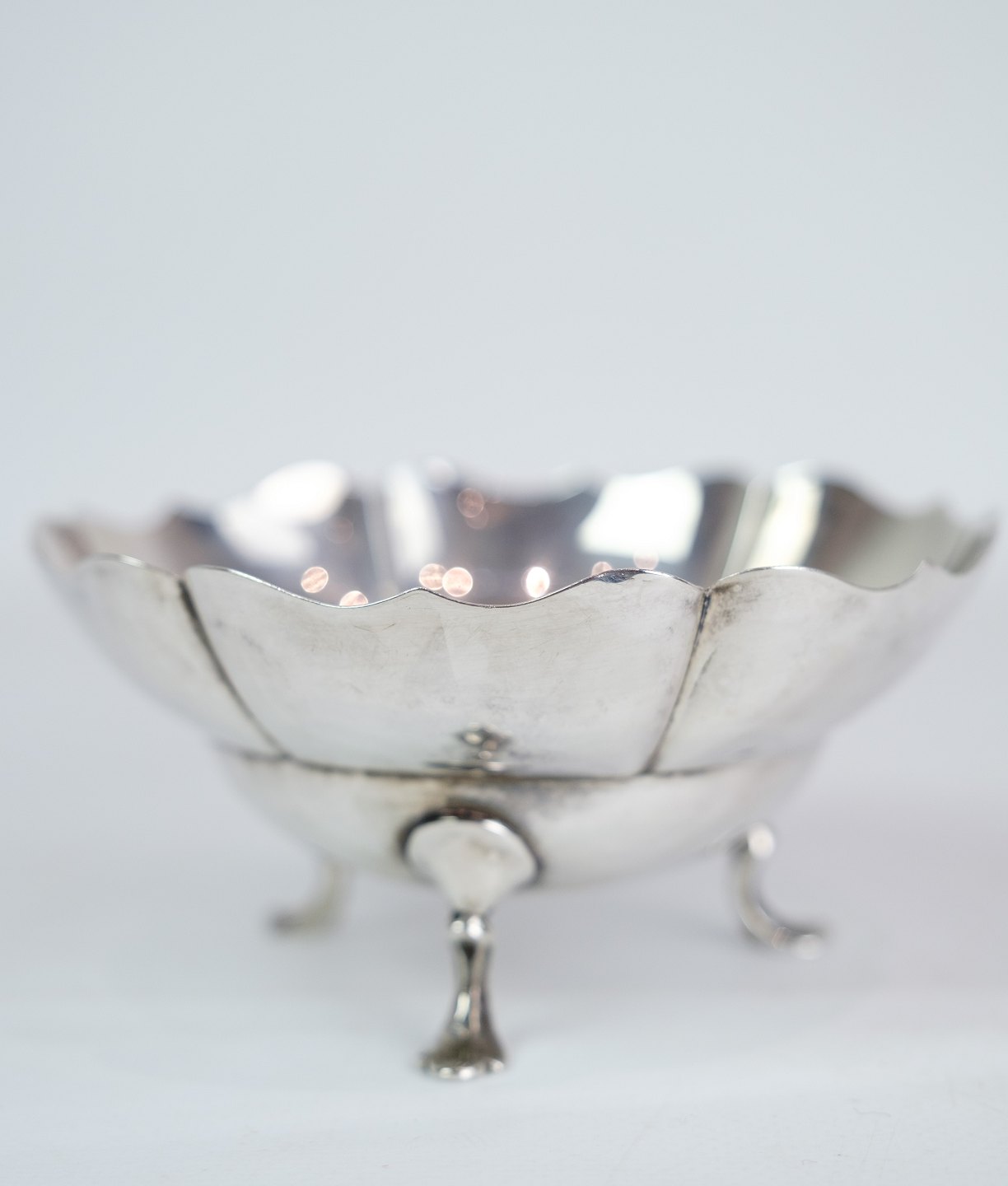 Lille skål på 3 føder af tretårnet sølv fra 1915. Stemplet A.D