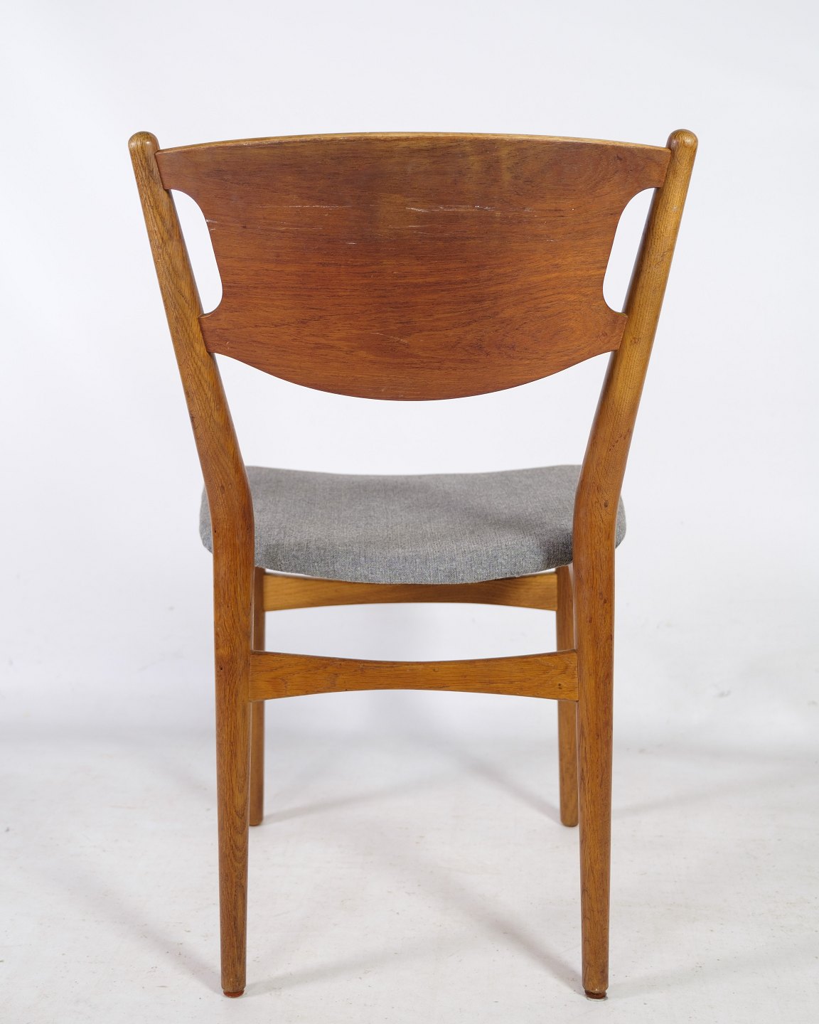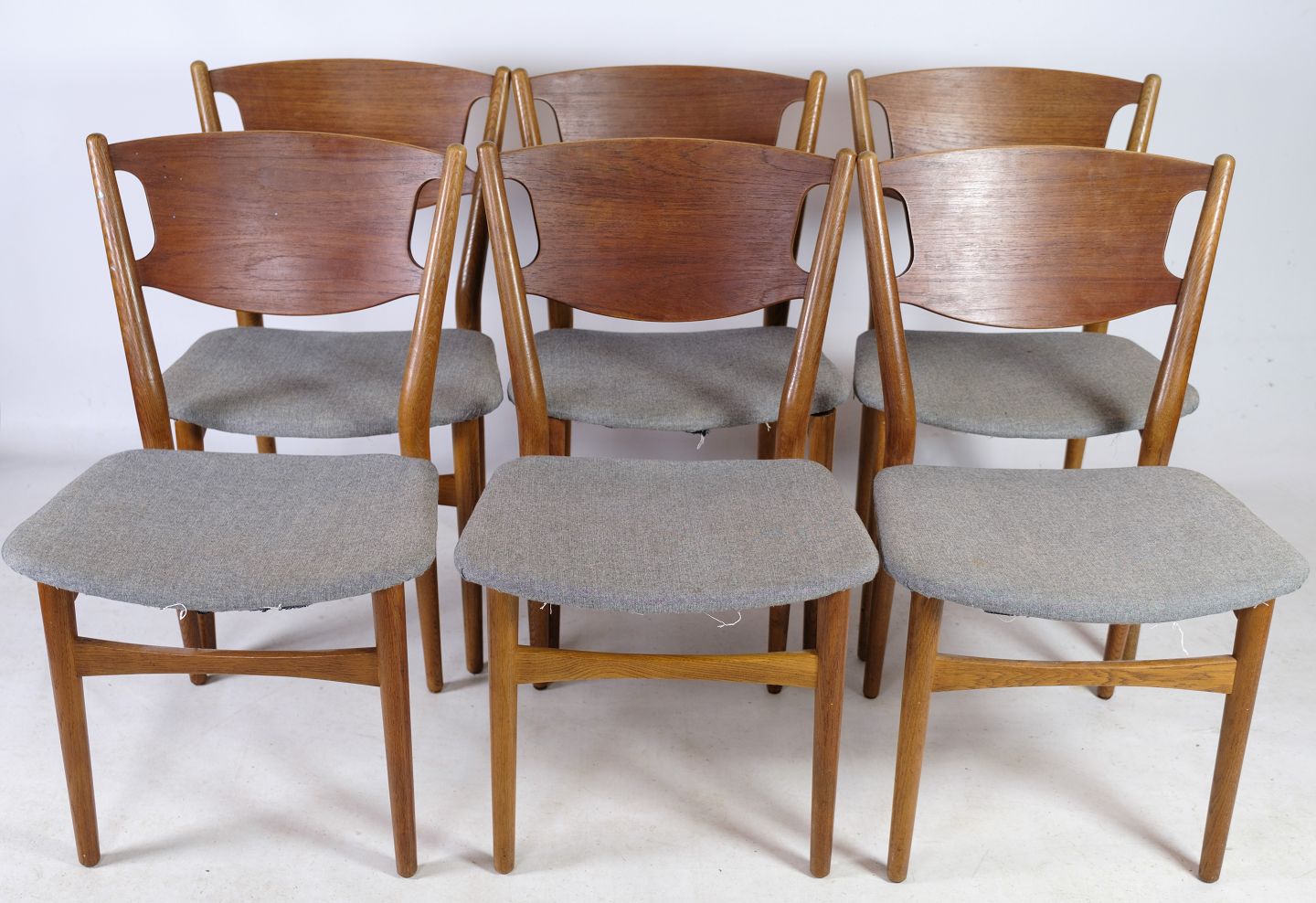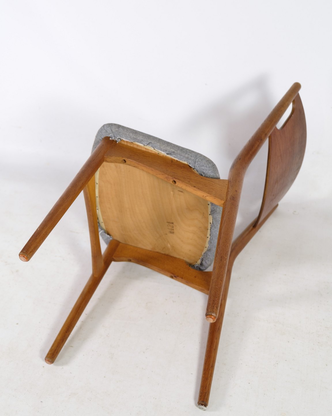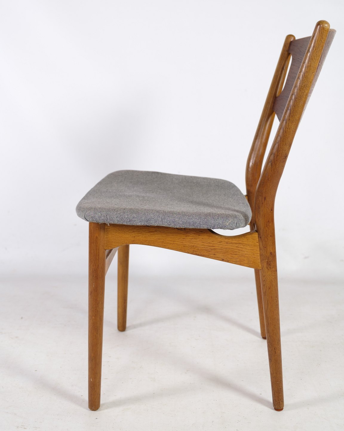 42A stolesættet er en moderne designklassiker fra midten af århundredet fra Sibast Furniture. Designet i 1953, stolene har et smukt udformet egetræsstel og et komfortabelt teak ryglæn. Sættet kommer med seks stole, der er betrukket med et stilrent gråt stof, der perfekt komplementerer træets varme toner. Disse stole er ikke kun æstetisk tiltalende, men også utrolig komfortable, hvilket gør dem perfekte til både formelle og uformelle omgivelser. De rene linjer og det tidløse design af 42A stolesættet sikrer, at de vil fortsætte med at være et eftertragtet møbel i de kommende år.