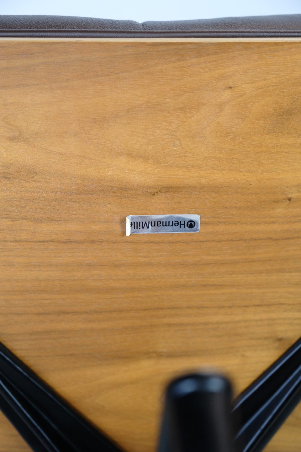 Charles Eames Lounge chair, brunt læder, lys valnød, Herman Miller, 2007