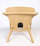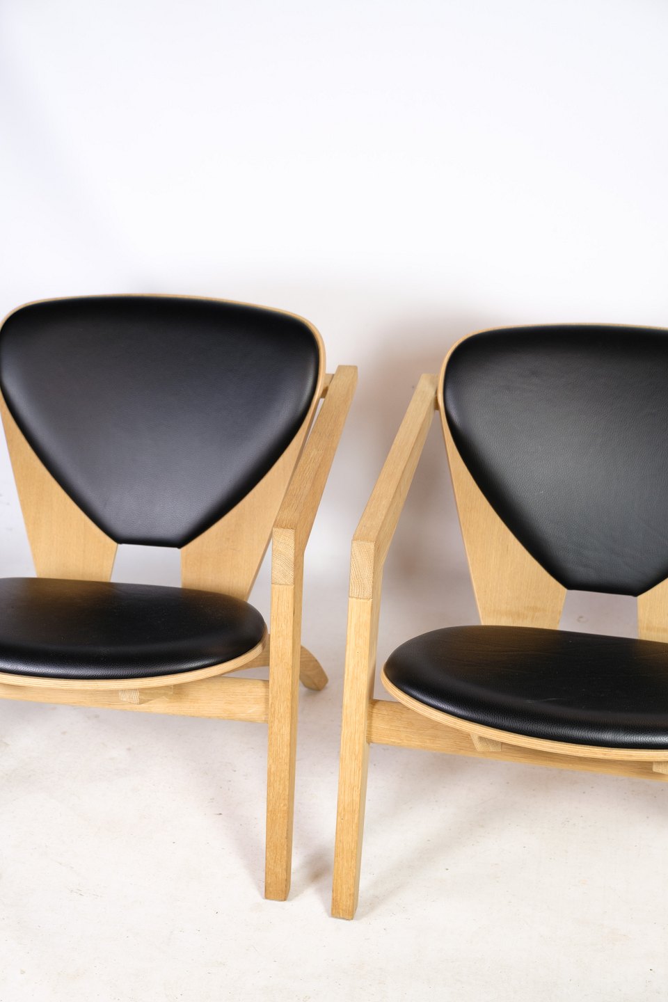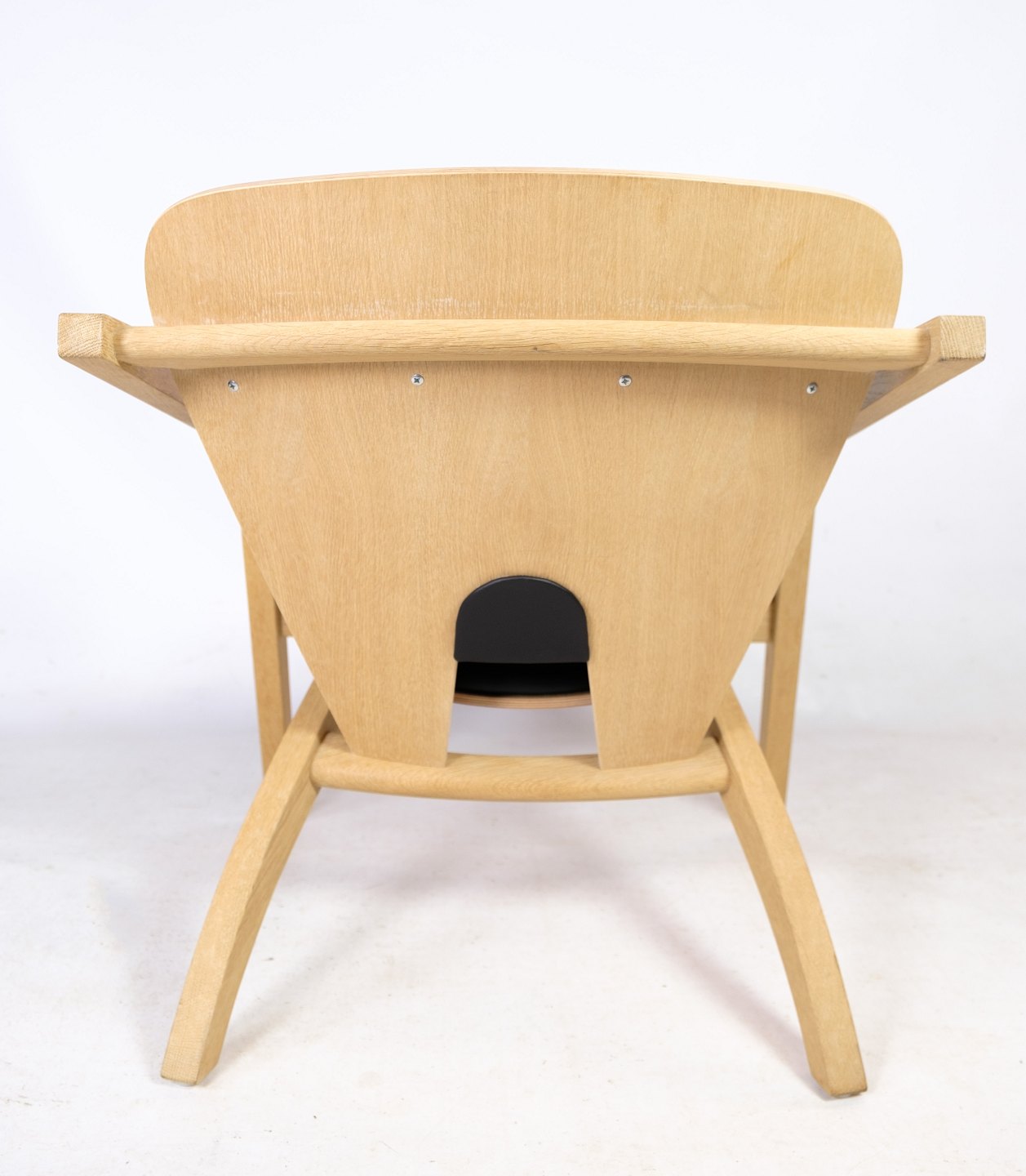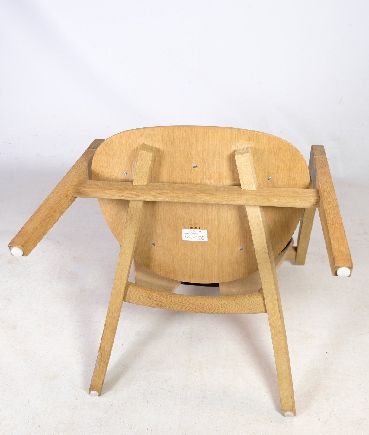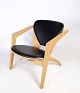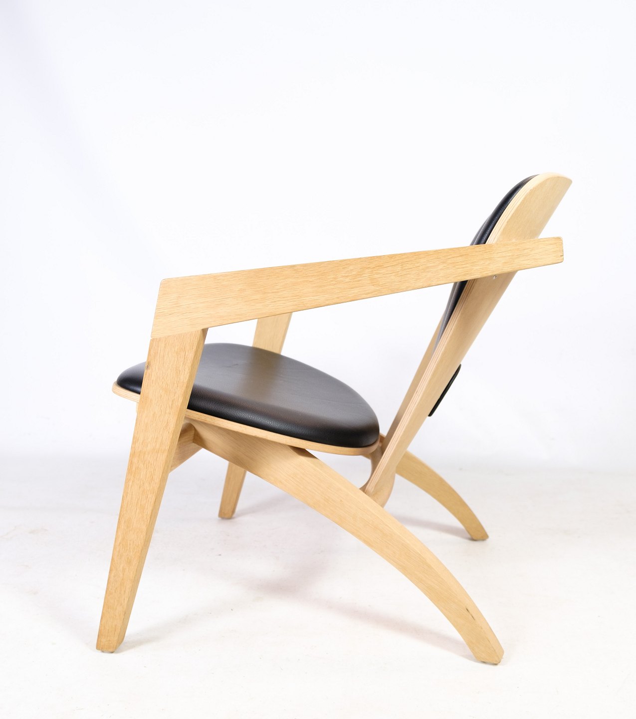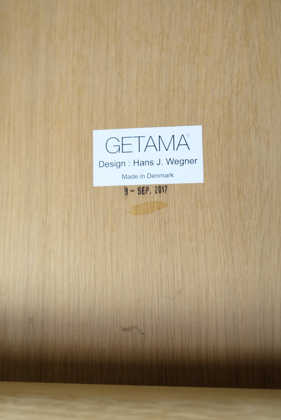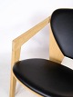 One of Wegner's designs is the GE 460 armchair, which was created in 1977. The chair is made of soap treated oak wood and has a seat and backrest upholstered in black leather, which gives it an exclusive and elegant feel. The chair is produced and branded by Getama, a recognized Danish furniture production company.