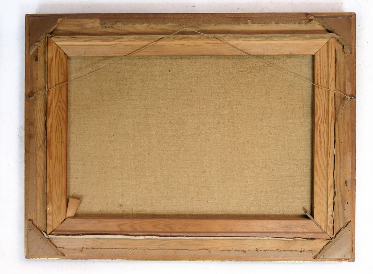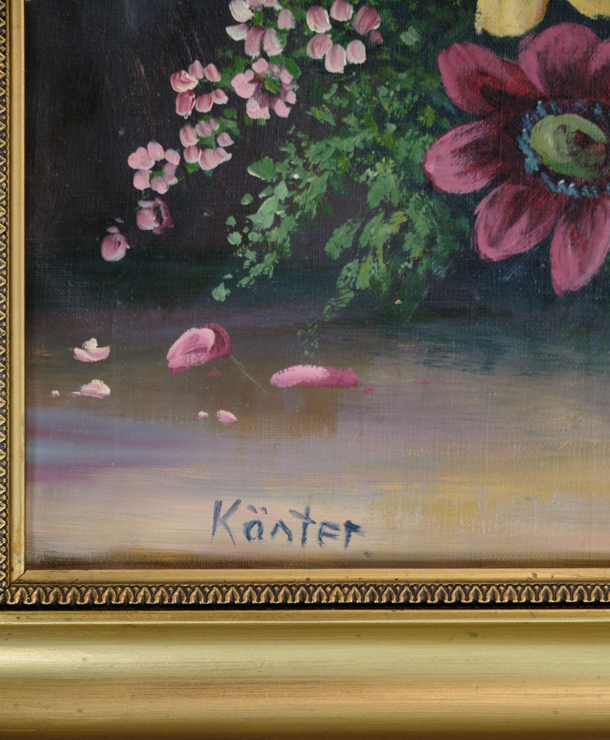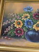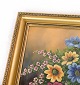 Painting on the canvas in a gold frame of floral motifs in yellow and blue colors from around the 1930s