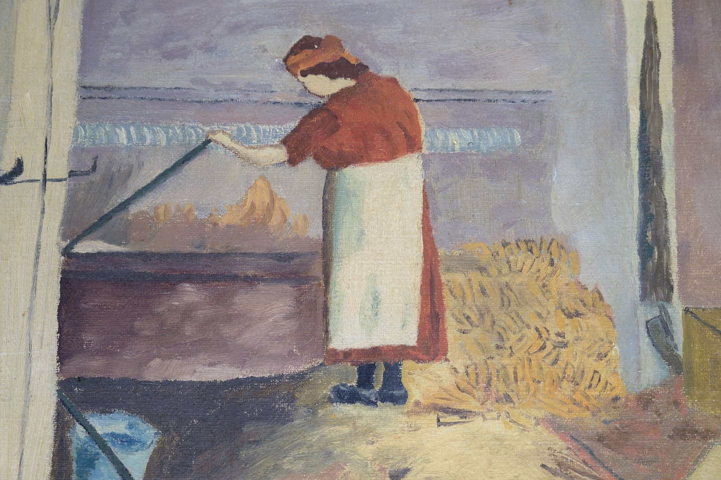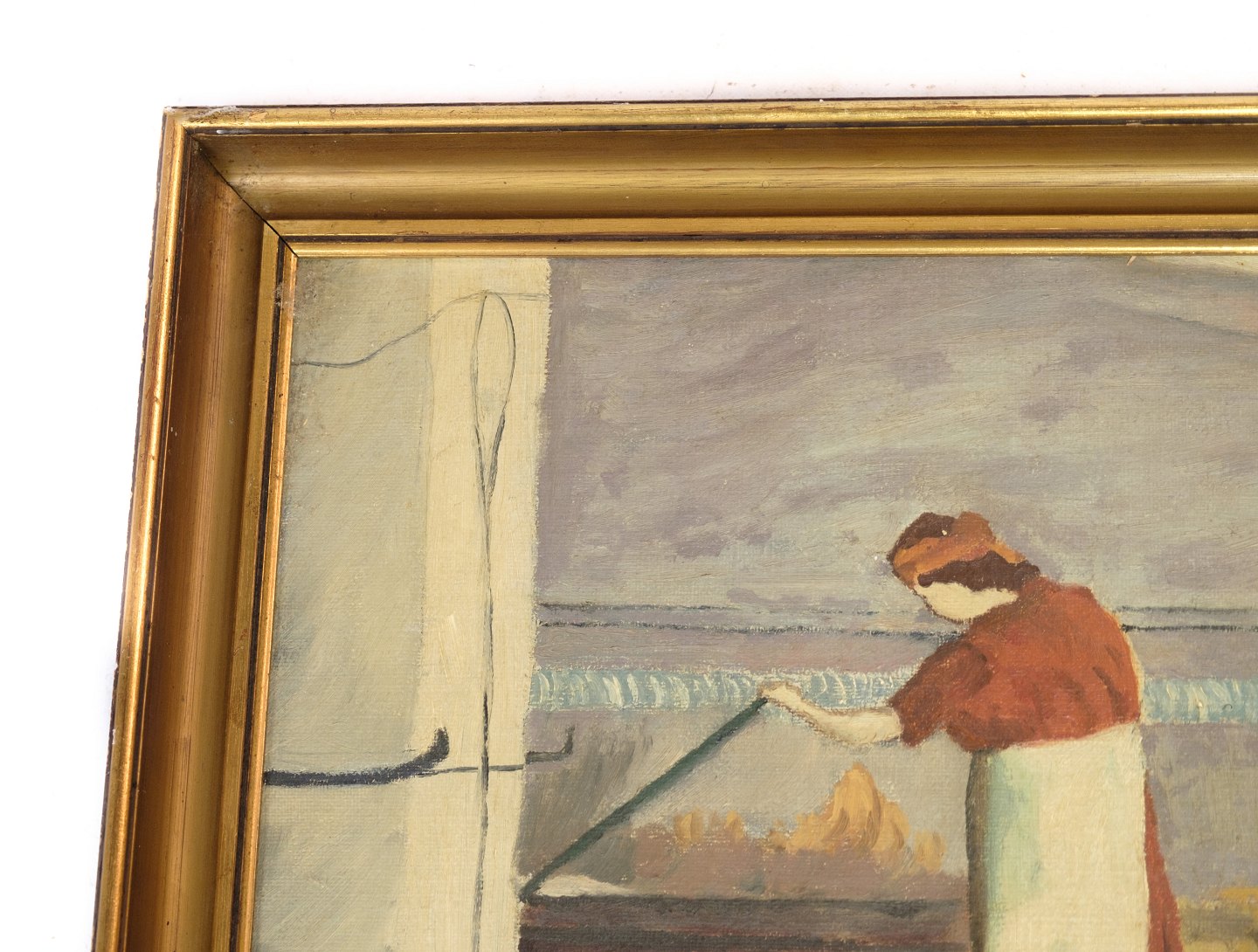 Maleri på lærredet i guldramme med motiv af bondekone fra omkring 1930'erne