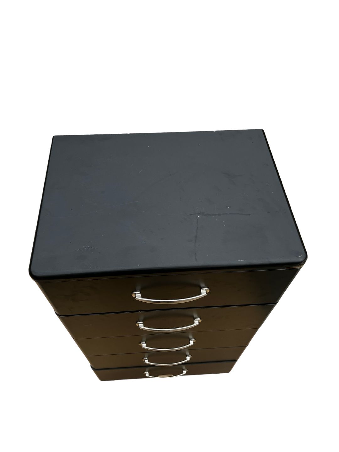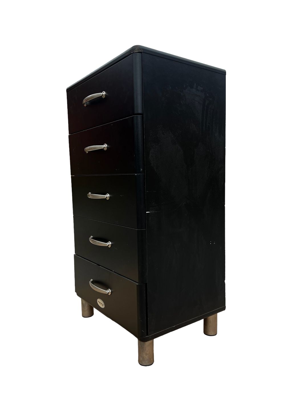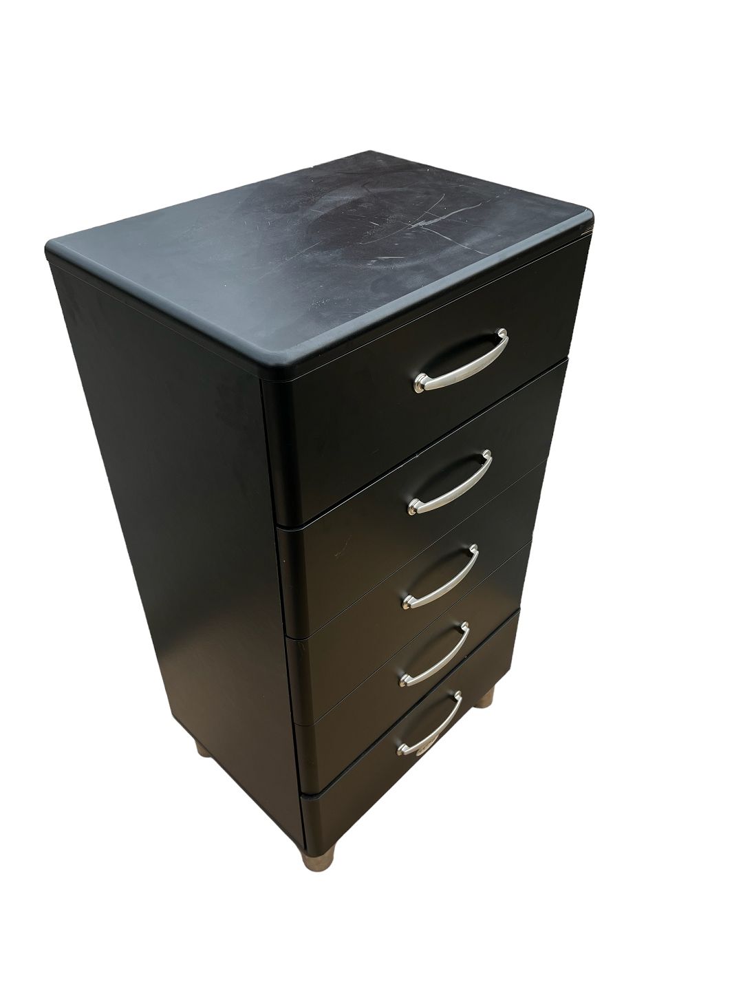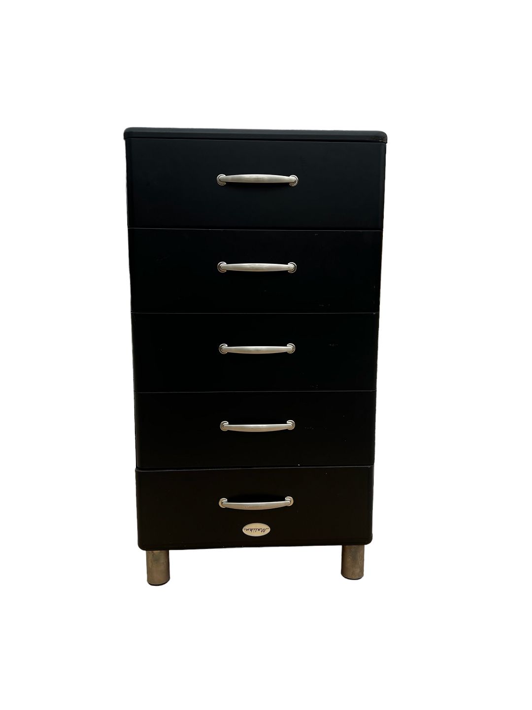 This black metal chest of drawers from around the 1980s exudes a modern aesthetic with its simple and streamlined design. With metal handles and legs, it adds a subtle industrial touch to the room.